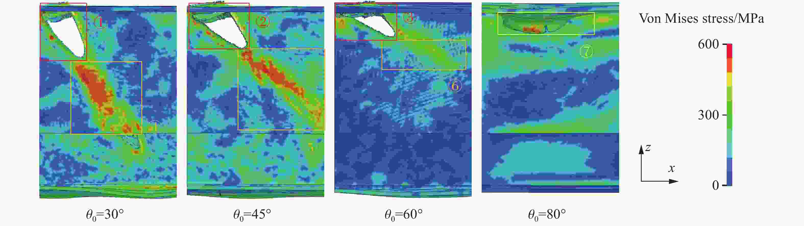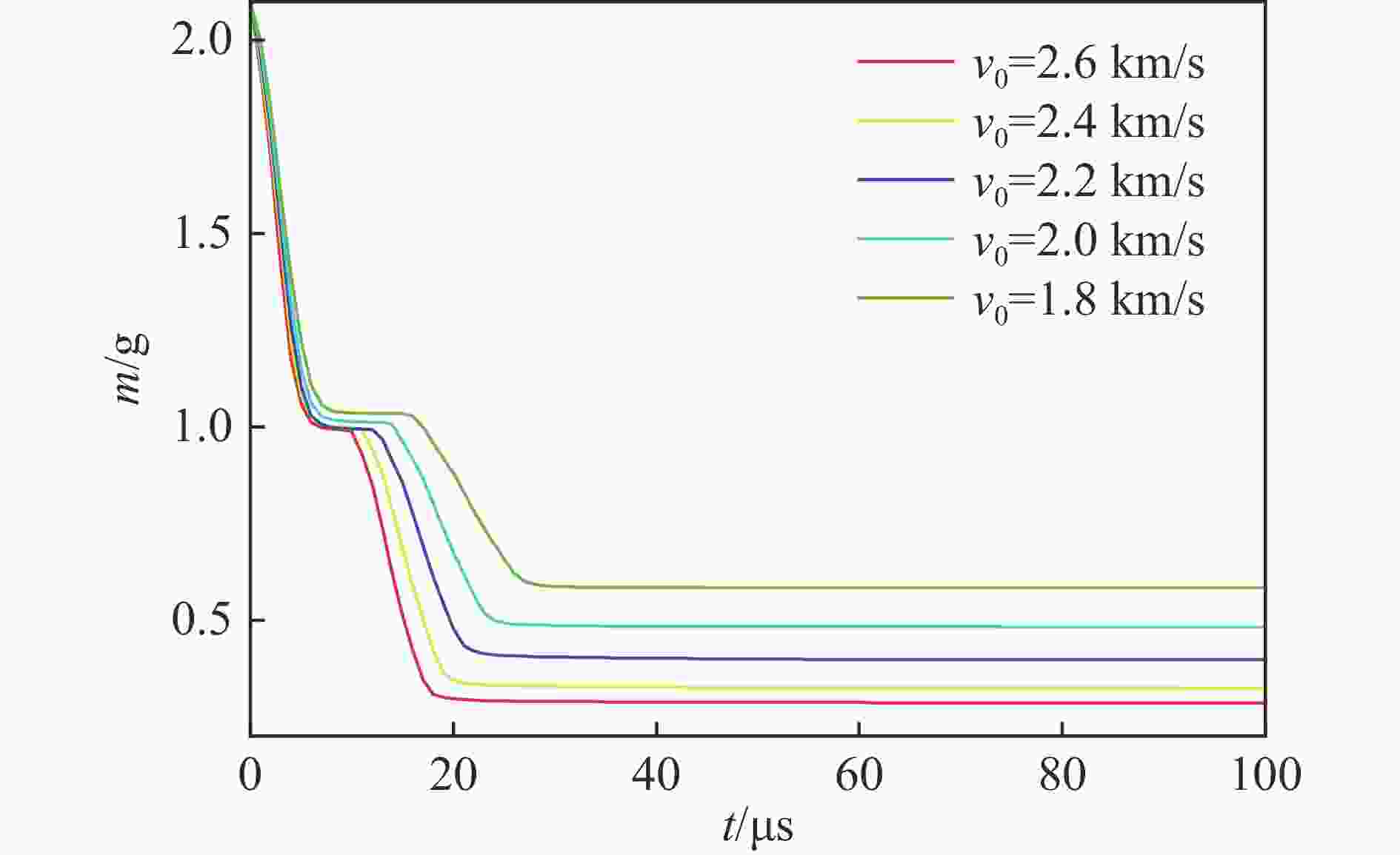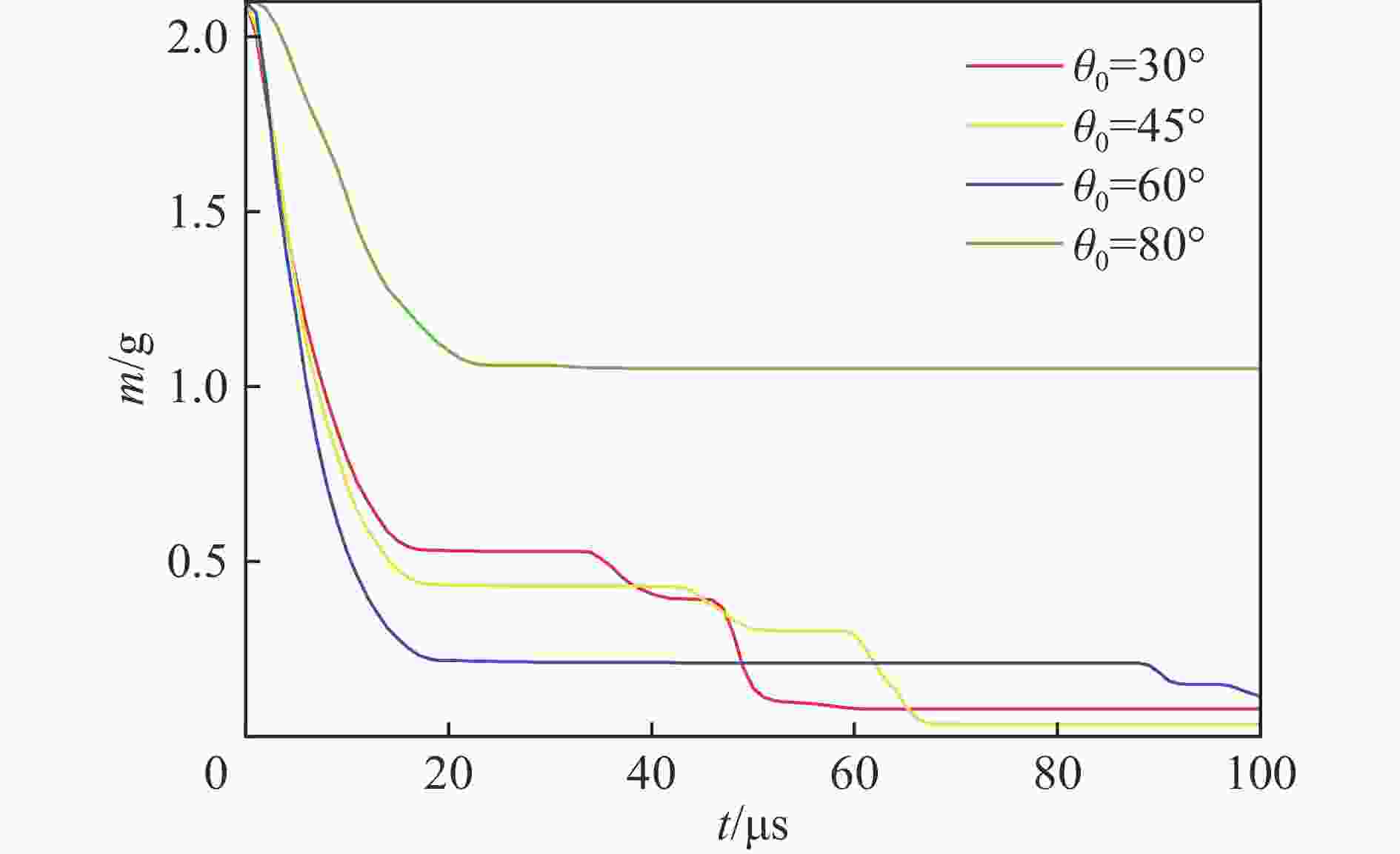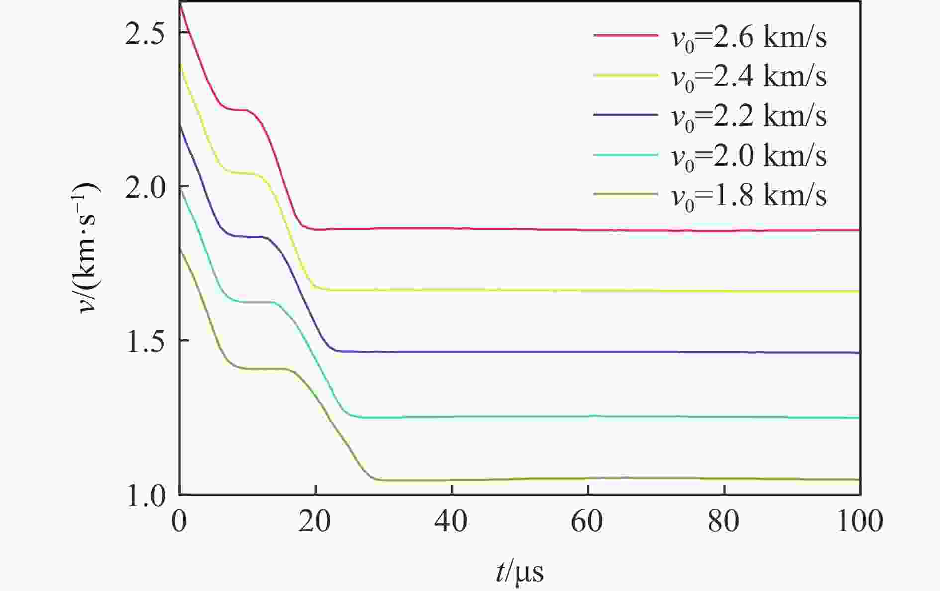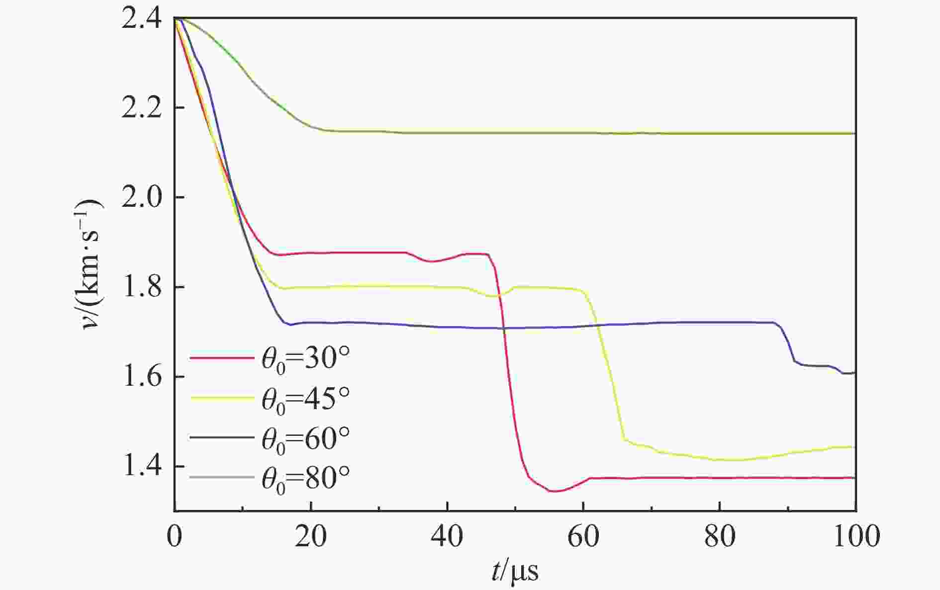 材料 ρ/(kg·m−3) E/GPa ν σy /GPa ET /GPa cS /(m·s−1) SS Γ 10钢 7850 207.0 0.30 1.05 20 OT-4钛 4550 115.0 0.30 5350 1.340 1.97 7075 铝2810 71.7 0.33 5120 1.028 1.23 表 2 各速度下临界跳飞角拟合曲线的参数