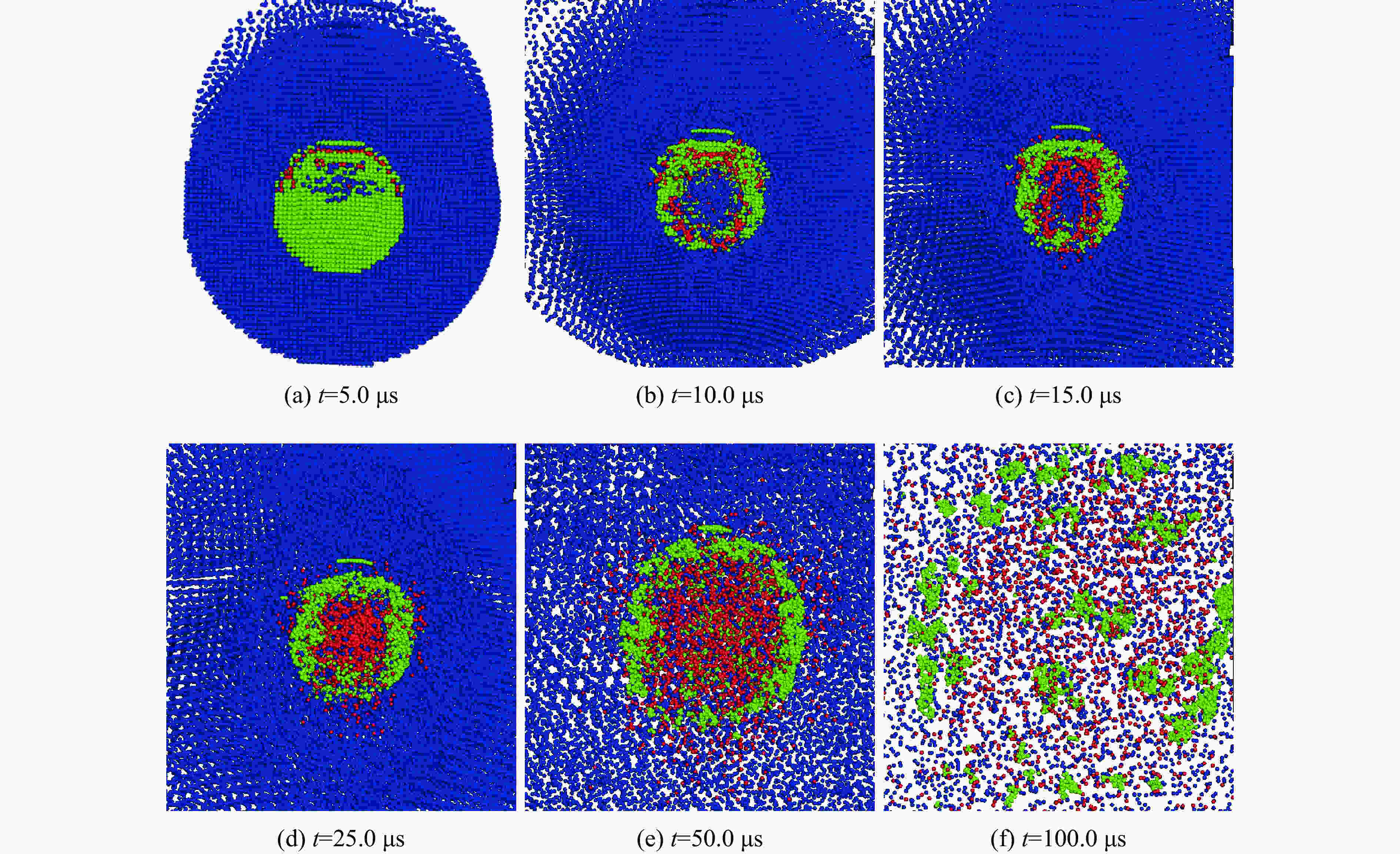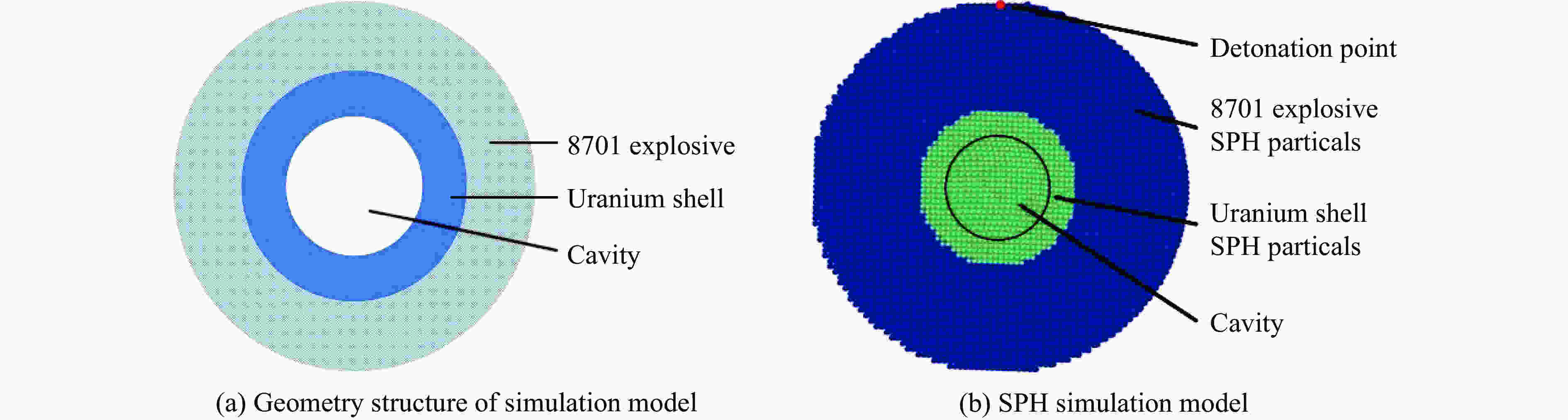 摘要: 针对铀材料在爆炸载荷作用下形成放射性气溶胶的过程,采用光滑粒子流体动力学方法开展了数值模拟和实验研究。通过将颗粒动力学和SPH方法结合,建立了炸药爆轰作用于铀金属壳的数值模拟模型,以铀材料比内能为气溶胶转化判据,获得了铀材料转化为气溶胶的物理过程,得到了在相同爆炸当量下,不同质量铀材料的气溶胶转化效率,并与实验结果进行了对比分析。结果显示,铀材料在爆炸载荷作用下,当其比内能达到1.9 MJ/kg时,即可认为完全转变为气溶胶,对于本文中的爆炸装置结构形式,当炸药质量为铀材料质量的6倍时,转化率超过90%。实验验证了数值模拟结果,表明该方法能够对铀材料的气溶胶转化过程进行准确描述。