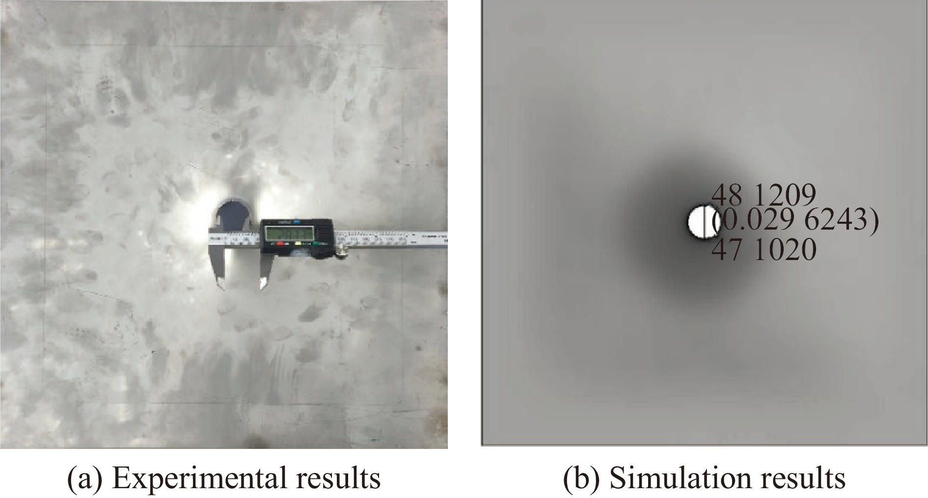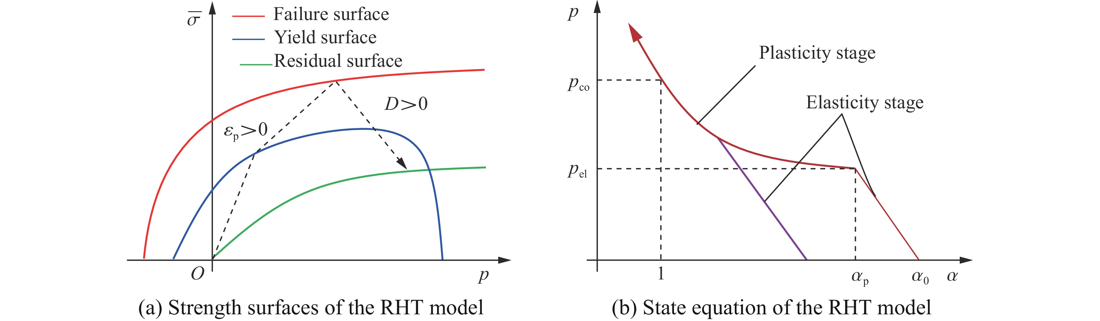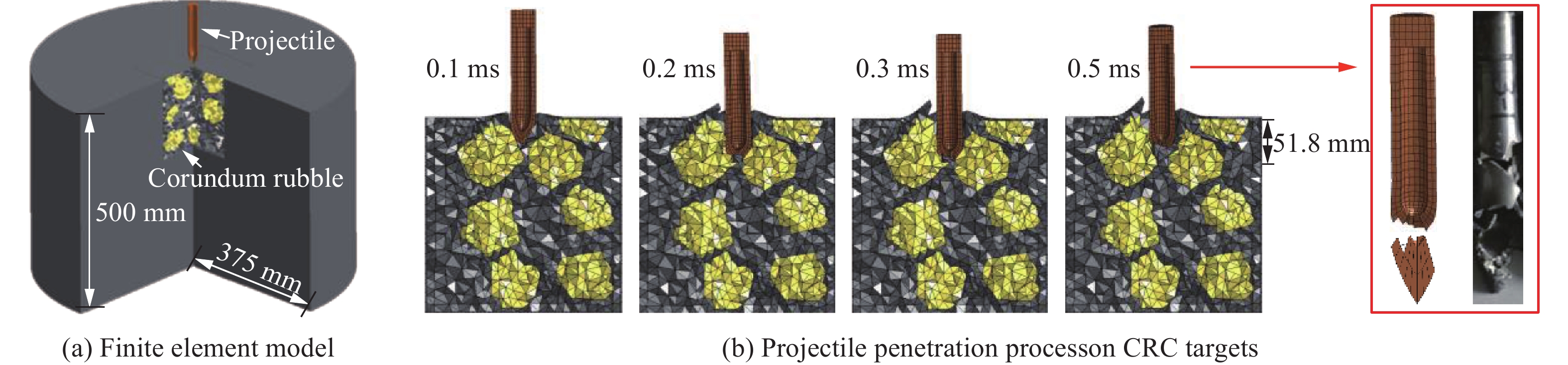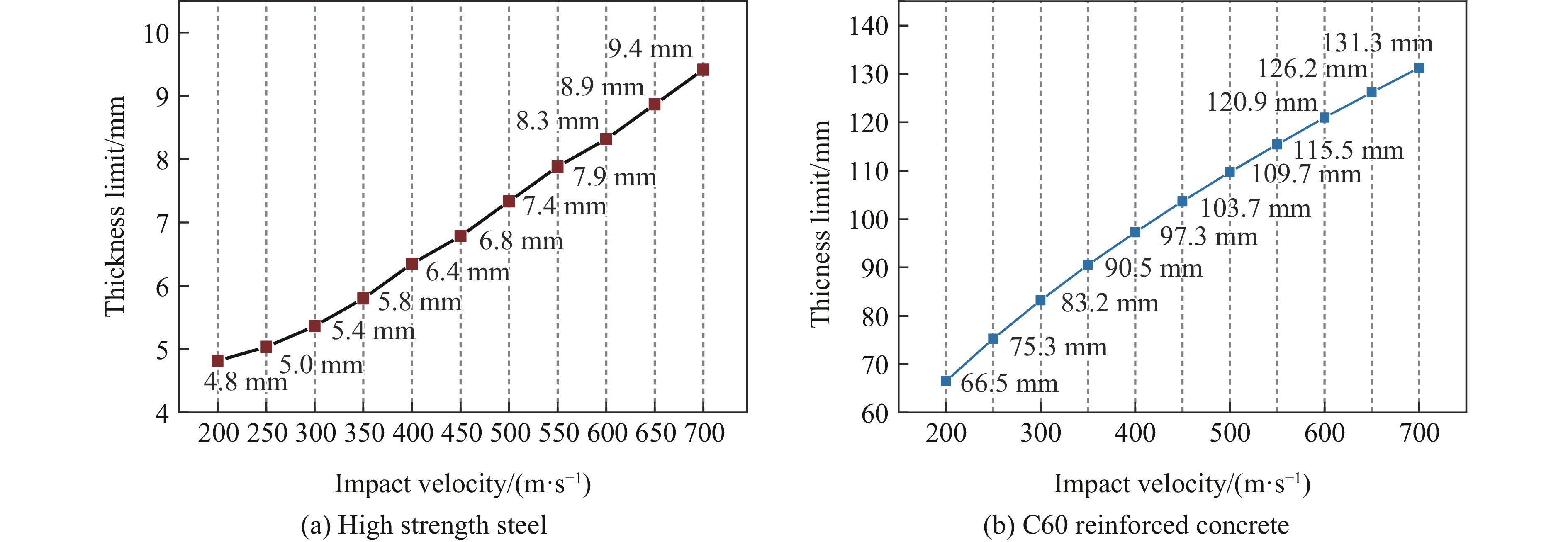 由于侵彻花岗岩试验存在原料获取难度大、费用高的问题,现开展钢筋混凝土与花岗岩靶标等效性研究。本文使用量纲分析与修正补偿法,以剩余速度作为等效前提,获得等效厚度计算方法。依据现有试验研究,使用LS-DYNA软件,结合数值模拟方法,建立弹体中速侵彻靶标的数值模型,以弹体尺寸、速度和靶标厚度为变量设计典型工况,数据拟合得到花岗岩靶体与钢筋混凝土靶体的具体等效设计公式。研究表明:建立的数值仿真模型能够较为准确地模拟出弹体侵彻花岗岩与钢筋混凝土靶体过程中弹体的剩余速度以及靶体的破坏特征;在弹体侵彻过程中,花岗岩靶体相较钢筋混凝土靶体,压实区与隧道区直径更小,裂纹更细、更长、扩展速度更快,靶面上裂纹面积更大,容易形成较大的剥落弹坑;在相同侵彻条件下,花岗岩与等效厚度钢筋混凝土靶体的破坏特征相近,破坏区域均可划分为5个部分;基于量纲分析与补偿修正法获得了弹体在侵彻钢筋混凝土与花岗岩时的无量纲剩余速度函数表达式以及钢筋混凝土与花岗岩靶体的等效厚度公式;拟合得到花岗岩与钢筋混凝土等效靶厚系数为1.69966,并使用等效靶厚系数对靶厚等效设计公式进行验证,原型靶体与模型靶体弹体剩余速度误差不超过5%。研究结果可为弹体中速侵彻岩石靶板的等效设计提供参考。