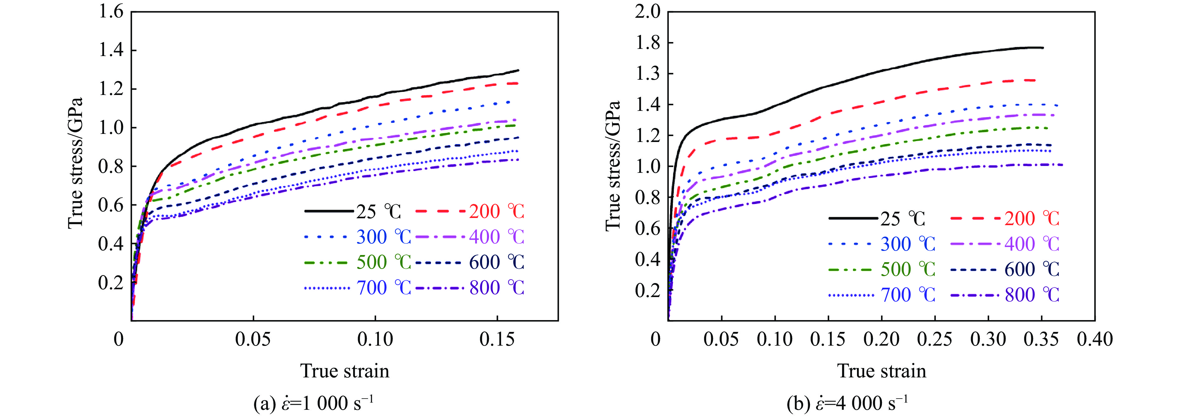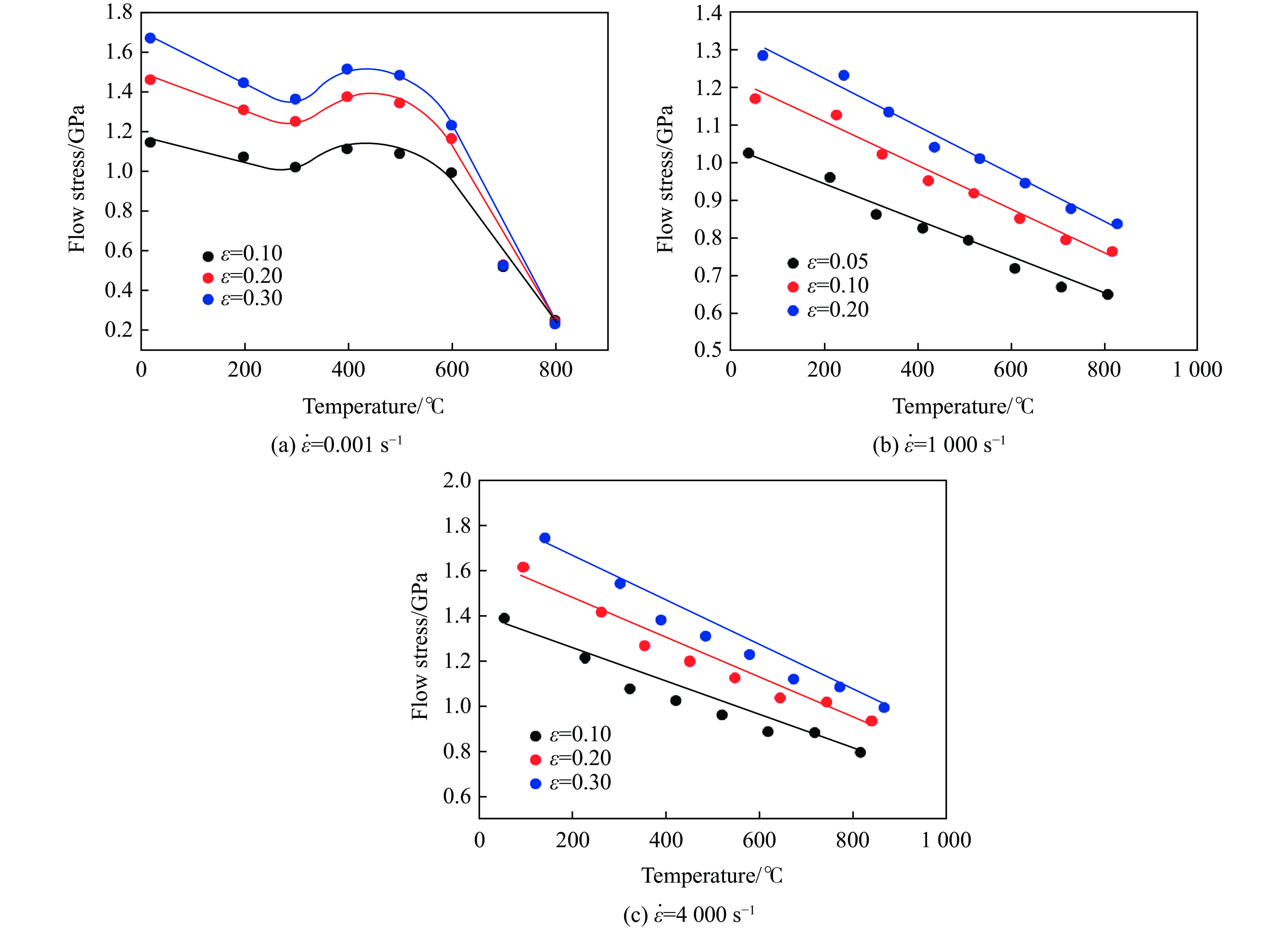 为了进一步探索间隙C原子对CoCrNi基中熵合金的应变率效应和温度效应的影响,系统地研究了由面心立方(face-centered cubic,FCC)基体和三级层级沉淀微观结构组成的CoCrNiSi0.3C0.048中熵合金在宽温域、宽应变率范围内的压缩力学行为、微结构演化过程以及变形机理。结果表明,该合金在400 ℃下变形时,其真应力-真应变曲线呈现出明显的“锯齿流变”现象,而且随着应变的增大,锯齿的振幅逐渐减小,直至消失。此外,其准静态下流动应力随温度的变化曲线上出现了反常应力峰(第三型应变时效现象),在高应变率下,第三型应变时效引起的反常应力峰消失。通过微观结构的表征分析,推测其准静态下出现第三型应变时效现象主要是由于间隙C原子的存在,在塑性变形的不断进行和发展过程中,产生了一系列由致密位错胞、微带、层错、位错簇和变形孪晶等组成的类似于非均质结构的混合结构。这些混合结构加剧了间隙原子与移动位错之间的相互作用,进而钉扎位错,出现动态应变时效现象。在动态情况下并未出现第三型应变时效的原因可能是溶质原子的运动相较于位错的运动速度较慢,无法及时钉扎位错。另外,大量的纳米级SiC沉淀的析出弱化了动态加载下间隙原子的“钉扎”作用。