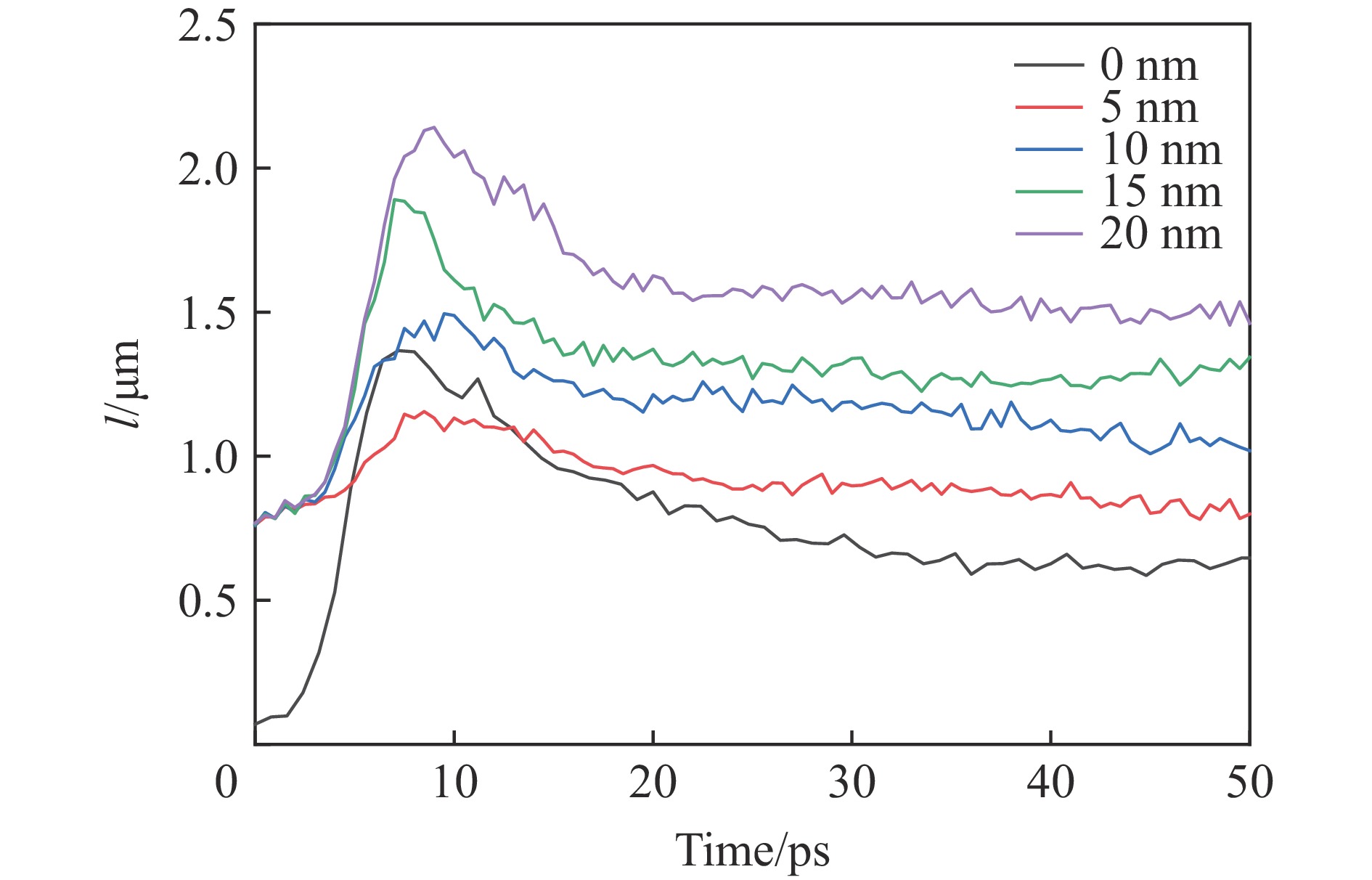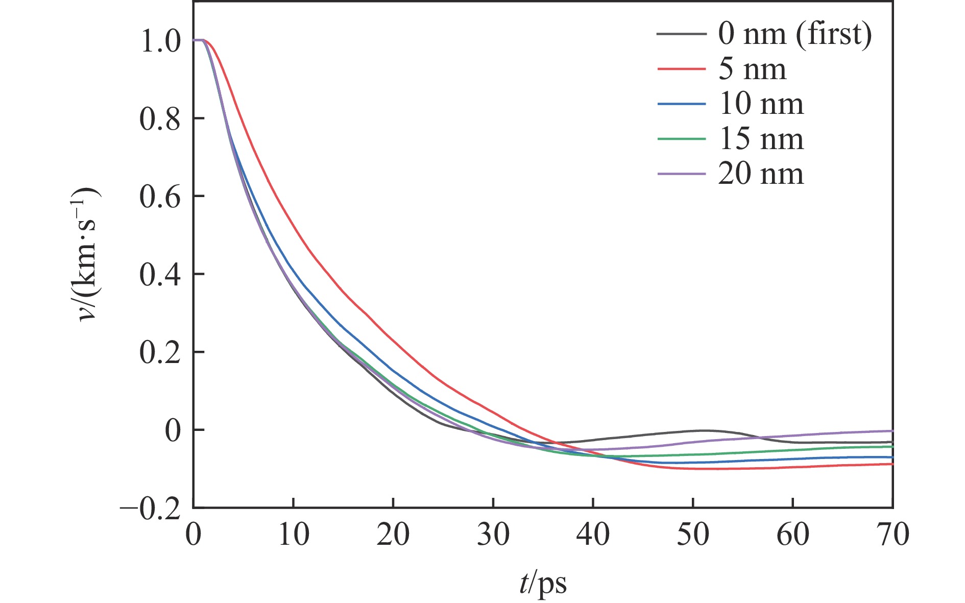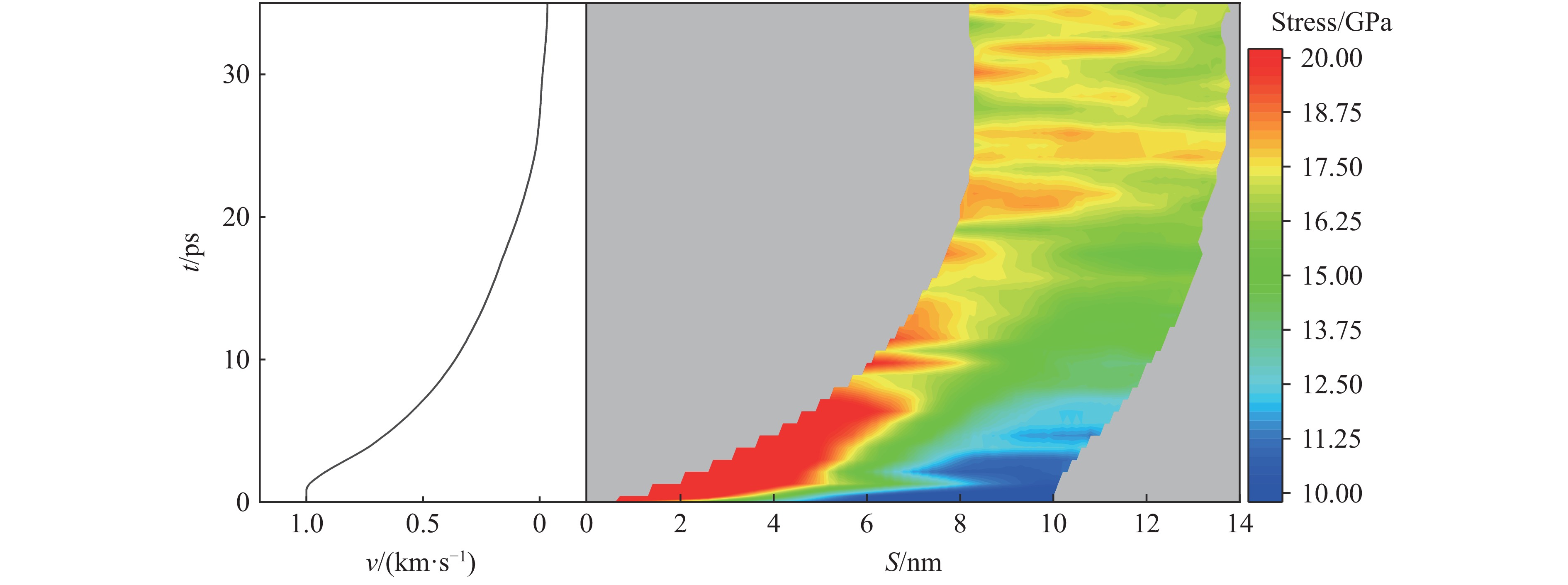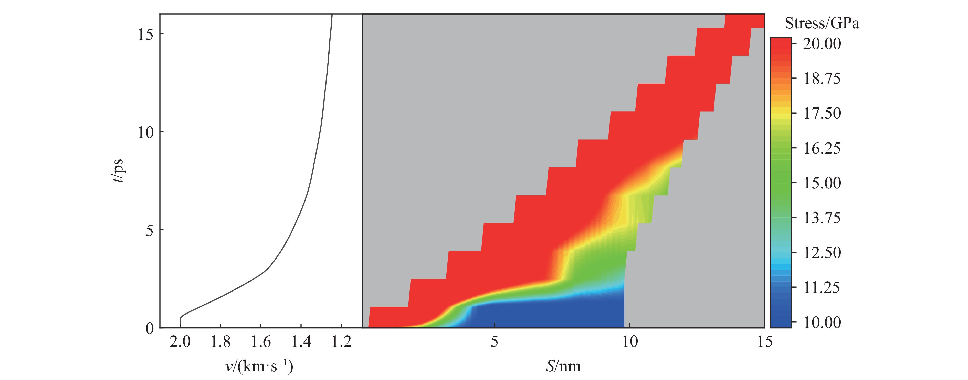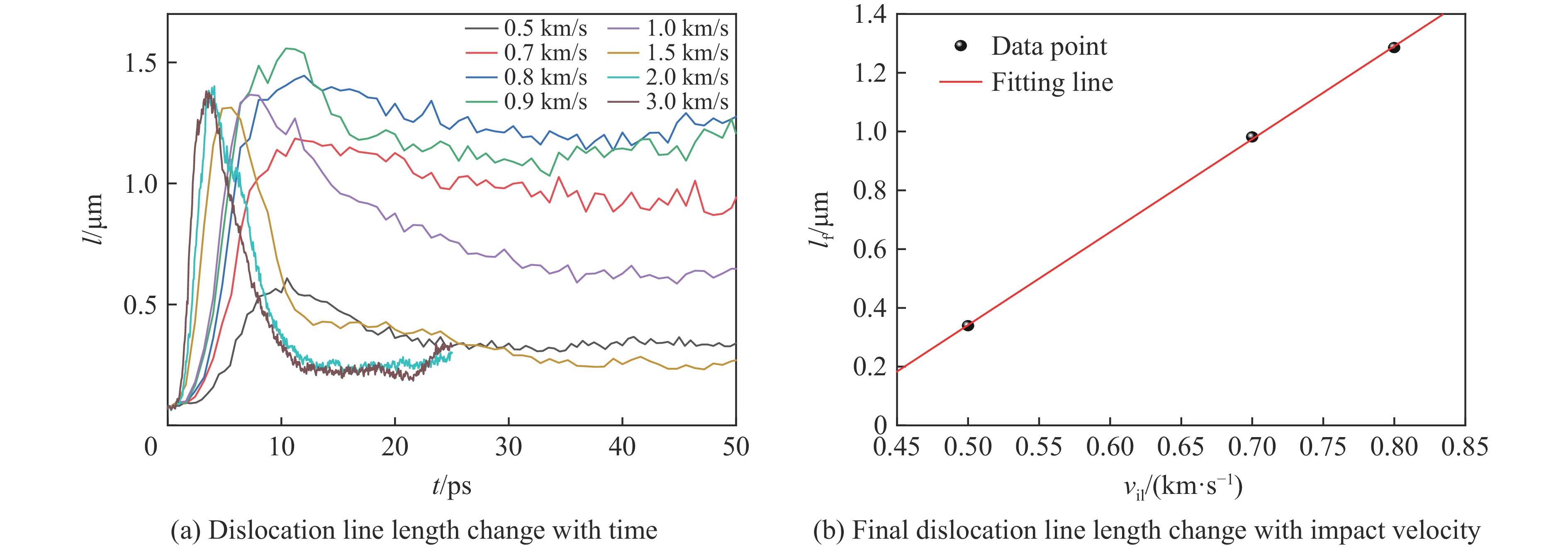 为了揭示高熵合金(high-entropy alloy, HEA)在冲击载荷下的相结构演变、位错分布、能量吸收及冲击累积效应的变化规律,通过分子动力学模拟,系统探讨了Al0.3CoCrFeNi 高熵合金板在受单次及二次冲击载荷下的动态响应行为。结果显示,首次冲击下,Al0.3CoCrFeNi高熵合金板的塑性区域相结构演变和能量吸收方式具有显著的冲击速度依赖性。随着冲击速度的提高,面心立方相结构的比例呈现三阶段下降趋势,而无序化结构则相应增加。在低速(0.5~1.0 km/s)冲击下,能量主要通过位错网络进行吸收;在中速(1.0~2.0 km/s)冲击下,位错与无序化原子共同吸收能量;在高速(2.0~3.0 km/s)冲击下,无序化原子主导吸收能量。位错线长度在刚性球0.5~0.8 km/s的冲击速度范围内,随冲击速度的提高呈线性增大,而在更高的速度冲击下,因HEA板厚度限制,位错线长度呈下降趋势。应力分析表明,冲击速度提高时,最大应力与塑性区域边界应力随着冲击速度的提高表现出非线性变化的二次函数关系。二次冲击下,几何特征方面,Al0.3CoCrFeNi 高熵合金板在冲击后形成类梯形的破坏区域,其上坑半径随冲击速度的变化呈现二次函数关系,二次冲击的最小影响区域也与冲击速度呈现二次函数关系;抗冲击性能方面,随着刚性球首次冲击速度的提高,其二次冲击后的剩余速度也随之上升,HEA板材料抵抗冲击性能降低。在距冲击中心10 nm处,HEA板的弹道极限随首次冲击速度的提高而非线性减小,然而,二次冲击速度的提高会使首次冲击的影响减弱。