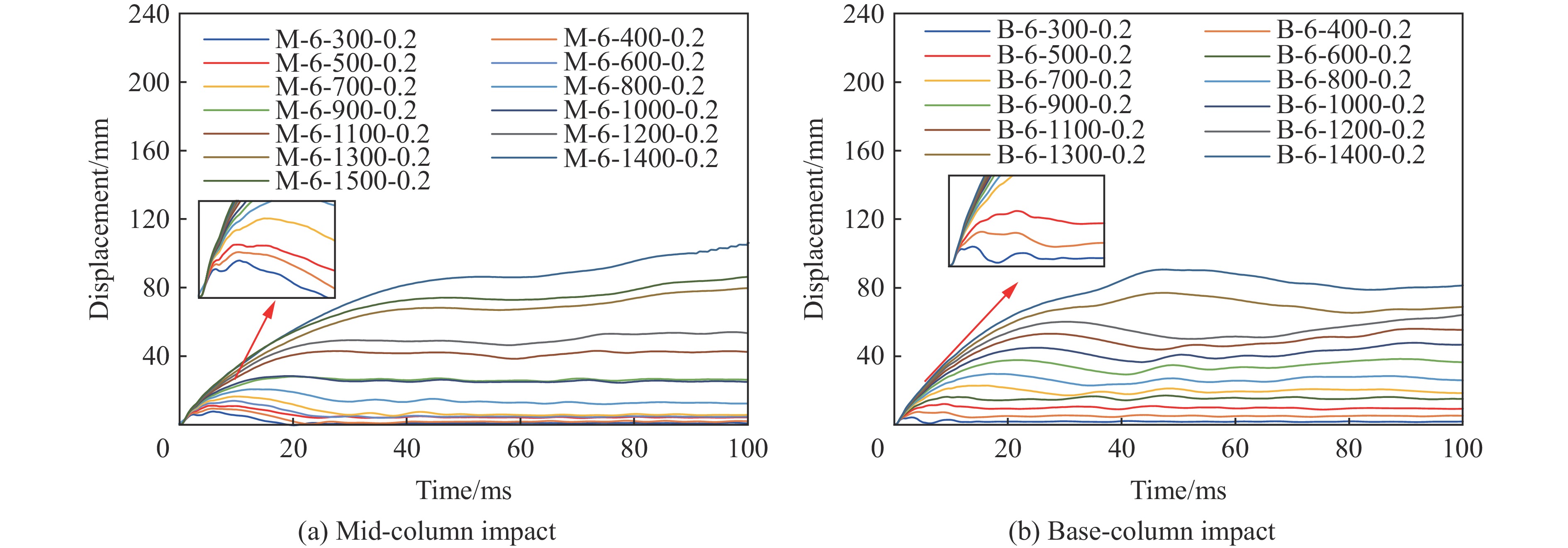 钢筋混凝土(reinforced concrete, RC)棚洞是山区公路和铁路设施抗落石冲击的有效原位防护手段,利用LS-DYNA商用有限元软件开展了落石冲击无垫层、铺设厚砂垫层以及厚砂-发泡聚乙烯泡沫(expandable polyethylene, EPE)复合缓冲垫层的原型框架T梁式RC棚洞损伤破坏评估的精细化数值模拟分析。首先,建立落石冲击沪昆铁路某原型框架T梁式RC棚洞的精细化有限元模型。其次,通过与落锤(石)冲击无垫层、带砂和EPE垫层RC板试验结果对比,充分验证了数值仿真方法的适用性和可靠性。进一步,对比分析了落石冲击下无垫层、铺设砂和砂-EPE复合垫层棚洞的损伤破坏和动态响应。最后,以落石最大侵入深度达到棚洞顶板与垫层总厚度作为棚洞失效破坏阈值,给出了棚洞失效破坏对应的落石质量与临界冲击速度关系式,实现棚洞防护性能的快速评估。结果表明:(1) 无垫层棚洞的损伤破坏集中于顶板冲击区域,铺设砂垫层以及砂-EPE复合垫层可平均分别降低落石冲击力峰值92.8%和91.6%;(2) 落石冲击速度较小时,砂-EPE复合垫层的缓冲耗能效果优于砂垫层,冲击速度增大后,复合垫层的防护效果不及砂垫层,顶板承受的冲击力和冲击能量较铺设砂垫层分别增大了89.3%和37.8%;(3) 棚洞失效破坏对应的落石临界冲击速度随落石质量增大呈幂函数衰减规律,铺设垫层可使临界冲击速度提高52%~155%,显著提升棚洞的防护性能。