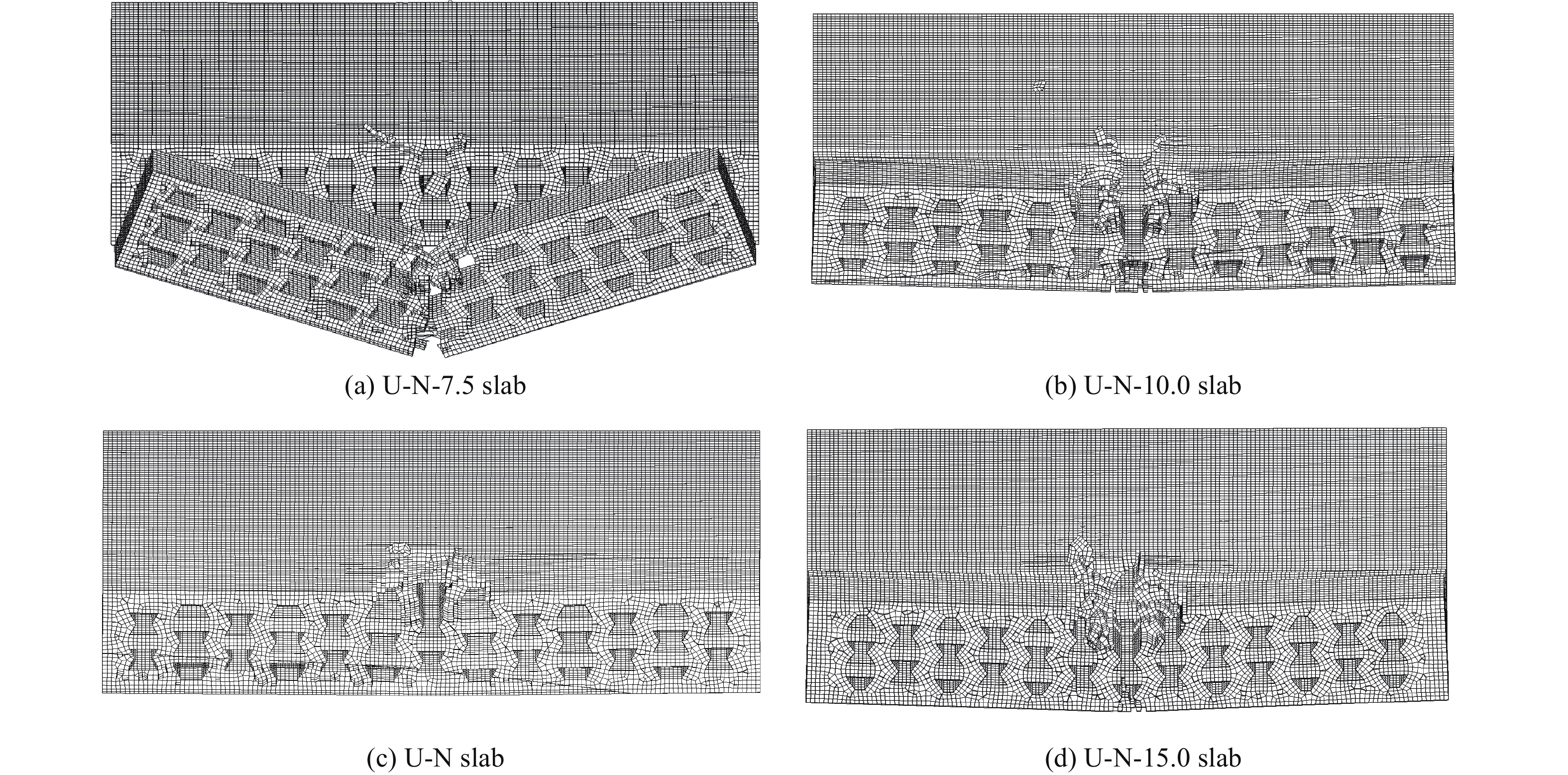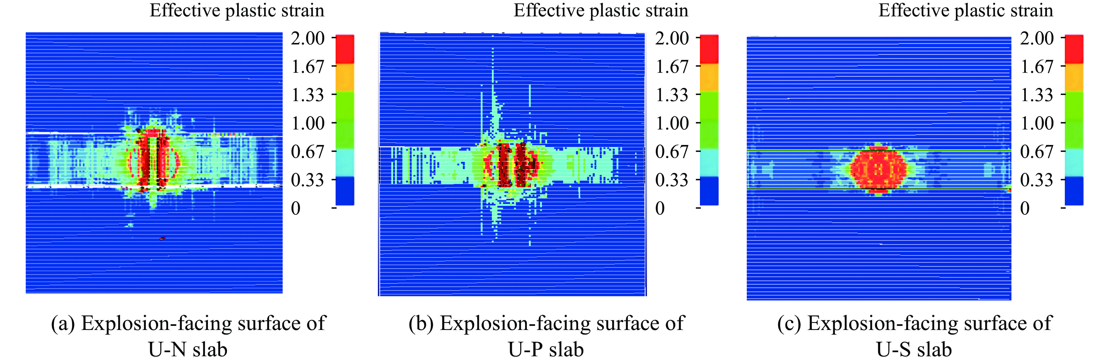 为提升防爆墙的抗爆性能,将负泊松比结构与超高韧性水泥基复合材料(ultra-high toughness cementitious composites, UHTCC)结合,并通过爆炸试验与数值模拟相结合的方法,研究分析负泊松比靶板的抗爆性能,证明UHTCC负泊松比靶板的抗爆性能优越性。首先,利用混凝土3D打印技术实现负泊松比结构建造,并通过靶板接触爆炸试验结果验证有限元模型的可靠性。在此基础上,利用该有限元模型模拟分析了靶板材料、结构、胞元内凹角及实心层厚度占比等因素对接触爆炸下结构破坏形态与能量消耗的影响。结果表明:(1)具有高韧性的UHTCC靶板抗爆性能显著优于混凝土靶板;(2)3种结构中,负泊松比结构板吸能能力最强,实心板更能保持结构的完整性;(3)当负泊松比胞元内凹角为61°时抗爆性能最优,过小或过大均降低结构抗爆性;(4)负泊松比结构厚度占靶板总厚度过大时抗爆性能弱,结构破坏严重,可上下层同时或仅背爆面增加实心层厚度,在有效削弱爆炸冲击波、吸收能量的同时,提高结构完整性。研究验证了负泊松比UHTCC板抗爆性能优越性,并为基于负泊松比结构的防爆墙设计提供了理论依据。