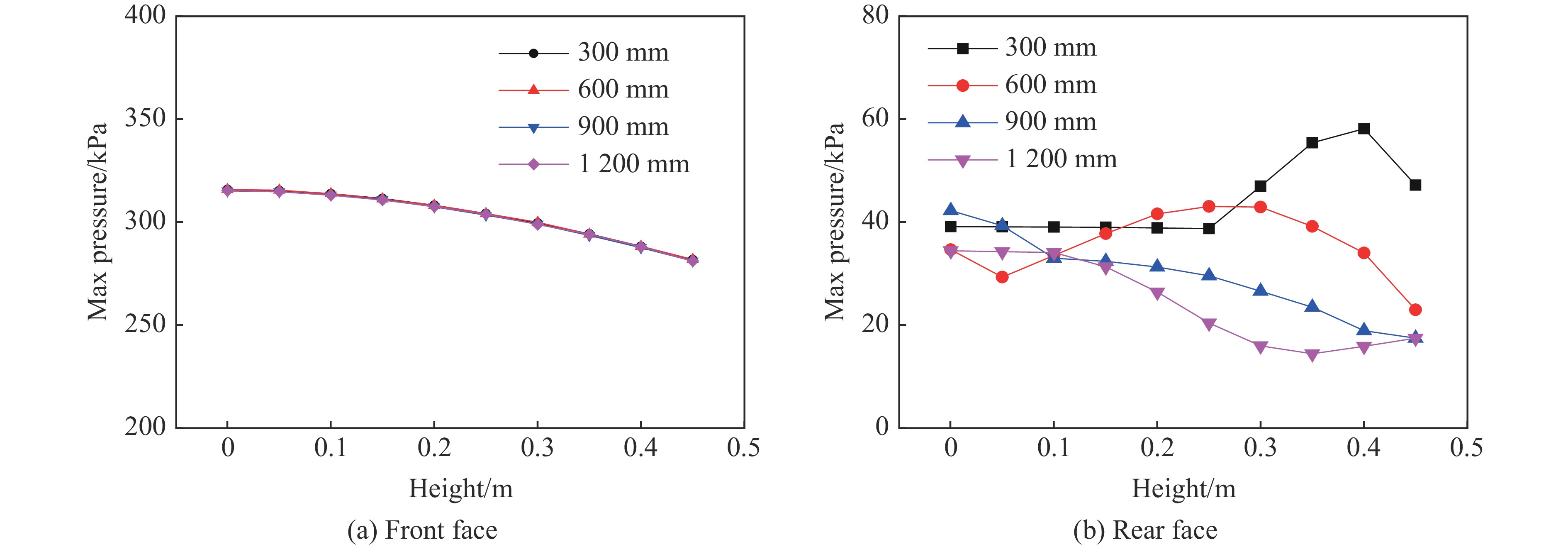 为深入研究触地爆下建筑表面冲击波载荷分布规律,首先开展了实验室环境下精细缩比实验,获取了球形炸药触地爆下缩比建筑模型表面测点冲击波压力时间曲线,得到了不同工况下冲击波特征参数分布规律;随后发展了冲击波传播数值模拟方法,并使用缩比实验数据对模拟方法进行校核,通过数值方法重点对建筑背爆面载荷分布及冲击波历程进行分析;最后发展了基于冲击波时程分析和叠加法则的理论分析方法,得到了建筑背爆面载荷分布的量化分析模型,并利用模拟结果进行验证。研究结果表明触地爆下建筑迎爆面最大冲击波载荷位于建筑底部,整体载荷分布较均匀;建筑背爆面载荷主要集中在顶角两侧及中轴线区域,由顶边和侧边绕射冲击波叠加形成,最大超压出现在不同绕射冲击波交汇位置,其位置和大小受建筑尺寸和爆心距影响。