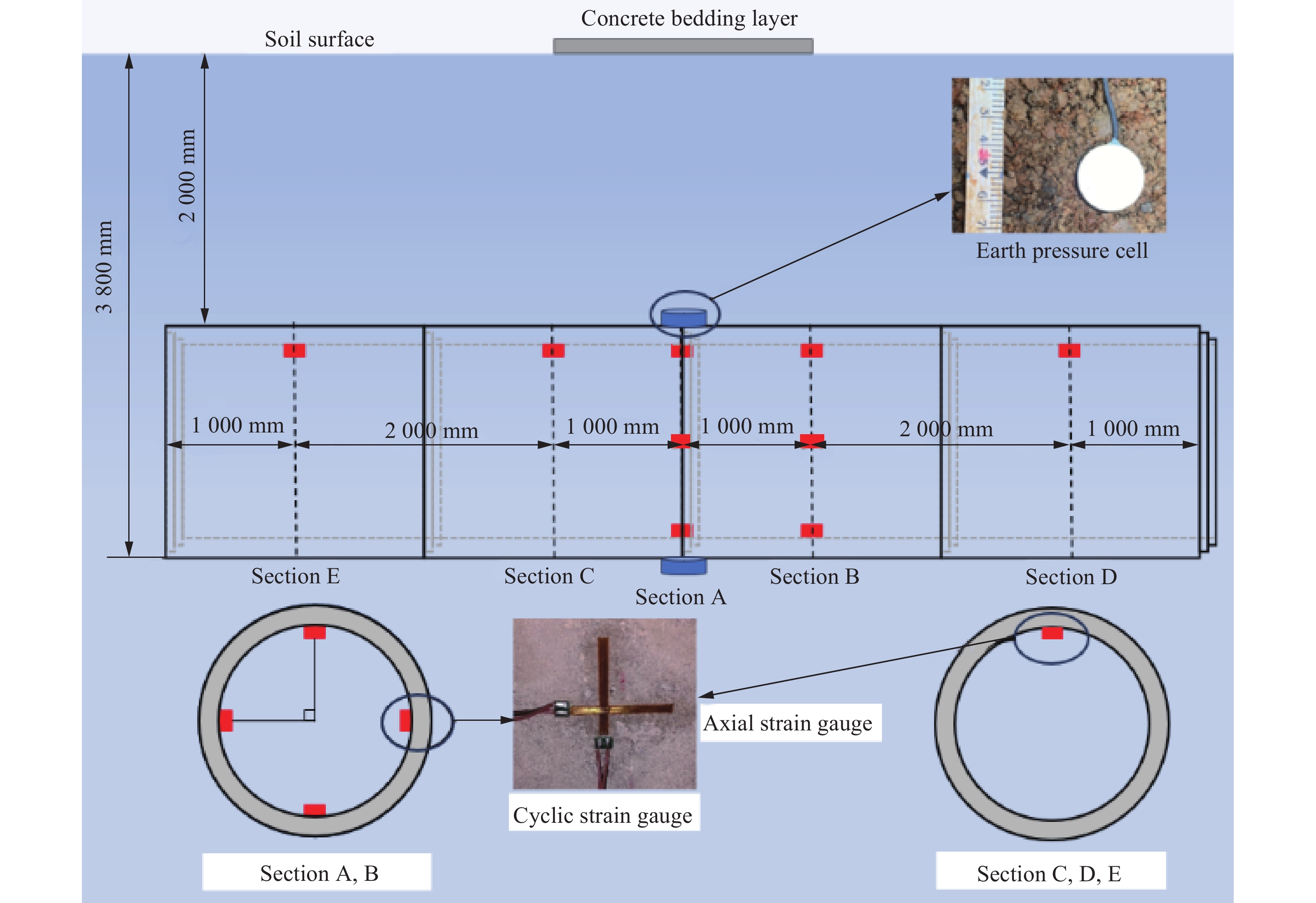 为探究地面混凝土垫层对于用于输水的埋地管道的防护机制,通过全尺寸企口式混凝土管道落石冲击现场试验(埋深2 m)结合DH8302动态应变系统与LS-DYNA数值模拟精细化建模,揭示了管道动应变分布规律及垫层参数的影响机制。研究结果表明:在埋深2 m的工况下,受落石冲击时,管身裂缝失稳扩展更易导致企口式混凝土管道发生泄漏;管身峰值拉应变随垫层厚度与强度增大呈非线性减小,垫层厚度需超过临界值(15 cm)方可显著耗能,且存在强度最优区间(C30~C35),过度提高强度反而会降低防护效能;垫层厚度的防护效能贡献占比达74%,防护设计应遵循“几何优先于材料”原则,建议采用C30~C35强度、厚度不低于0.2 m的混凝土垫层,可大幅降低管道冲击破坏风险。