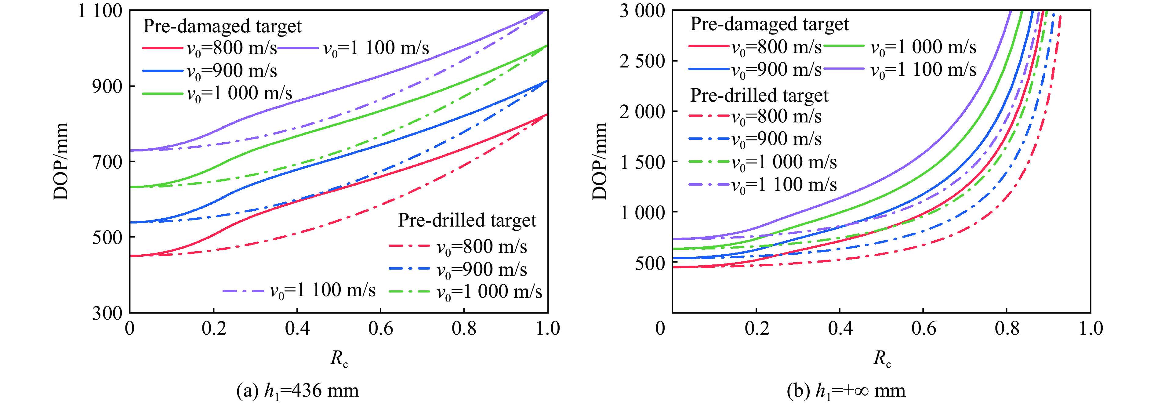 为研究混凝土靶体损伤对弹体侵彻性能的影响效果,基于空腔膨胀理论,完善了弹体侵彻预损伤混凝土半经验模型,采用前级射流、后级动能弹体对混凝土靶进行了连续侵彻试验,获得了影响弹体侵彻预损伤混凝土性能的关键因素,结合预损伤混凝土靶体中混凝土材料强度变化关系,分析了弹靶参数对弹体二次侵彻性能的影响规律。结果表明:靶体预损伤对弹体侵彻深度的增益效果由开坑体积差及混凝土损伤共同影响,且混凝土损伤为主要影响因素;当靶体内存在有限长损伤区,靶体开孔直径是弹体直径的0.3~0.5倍时,靶体损伤对弹体侵彻深度增益最为明显;当靶体内存在贯穿损伤区,靶体开孔直径与弹体直径的比值为0.3时,预损伤靶体与预开孔靶体中弹体侵彻深度差异较为明显,且随着比值进一步增加,两者差异逐渐增加;当靶体损伤状态一定时,减小弹体直径或增大尖卵形弹体头部CRH对增加侵彻深度更为有利。