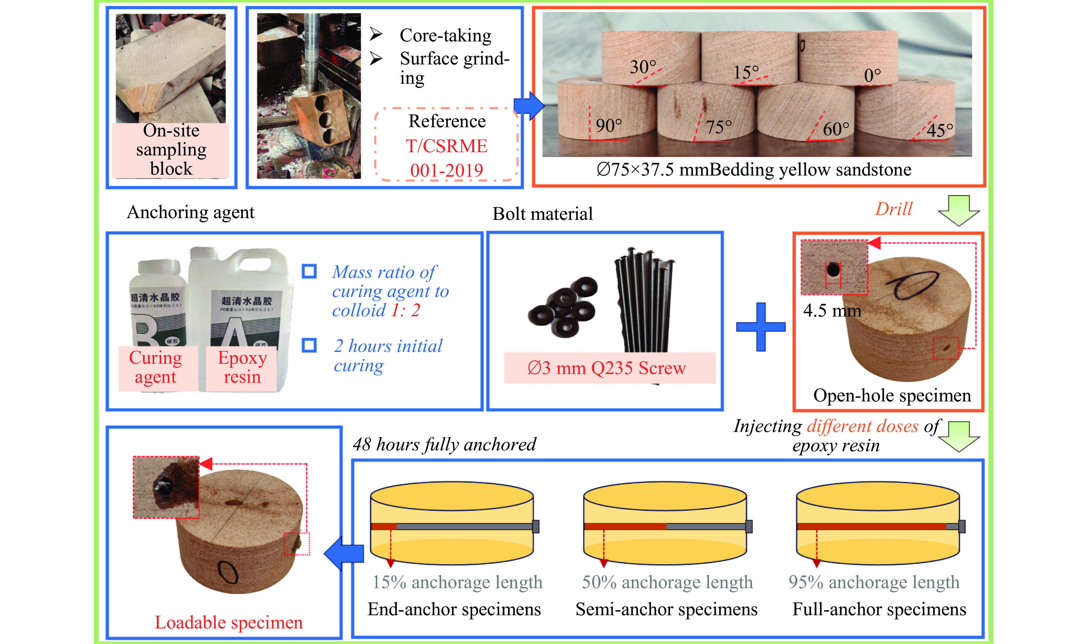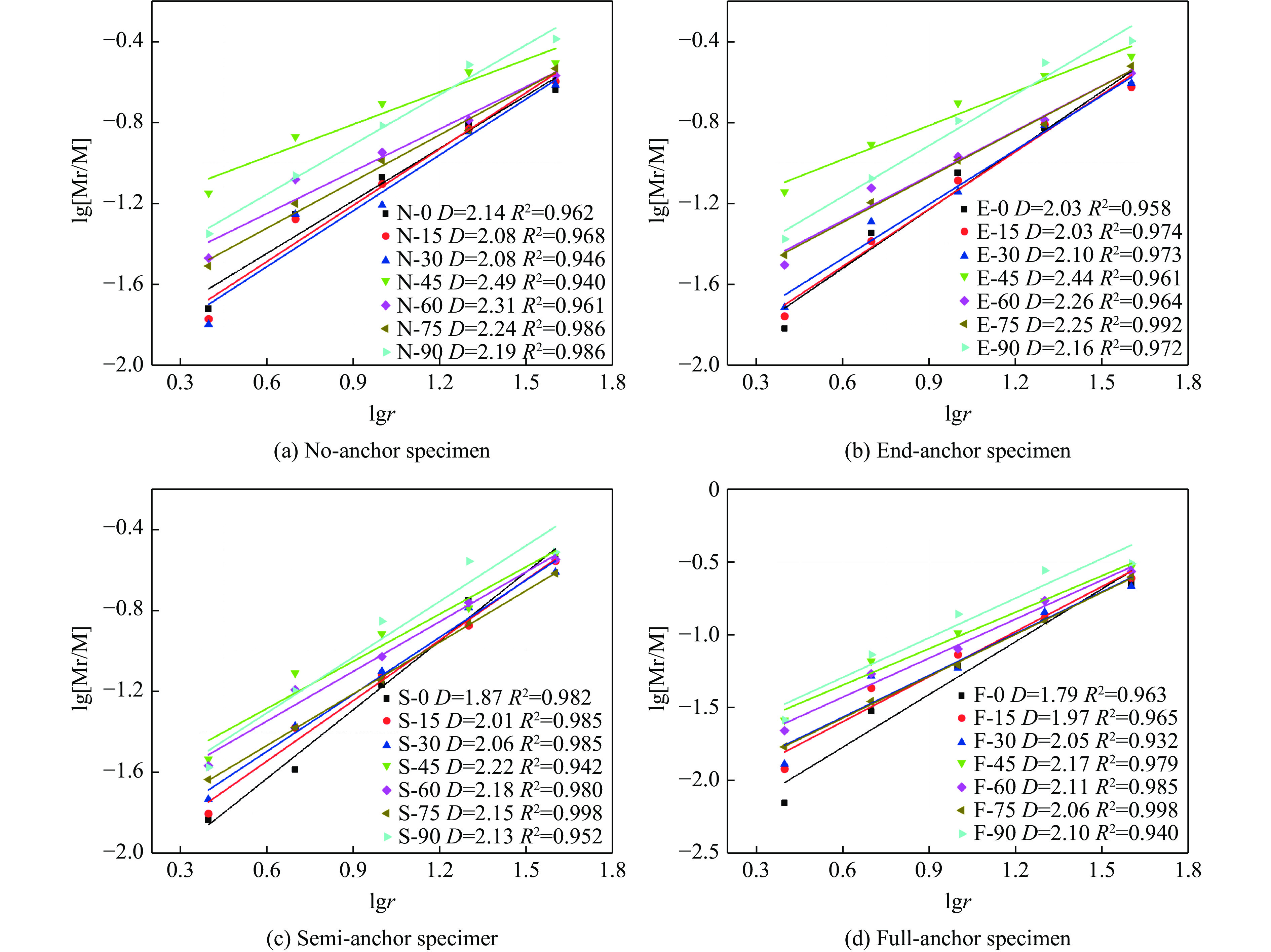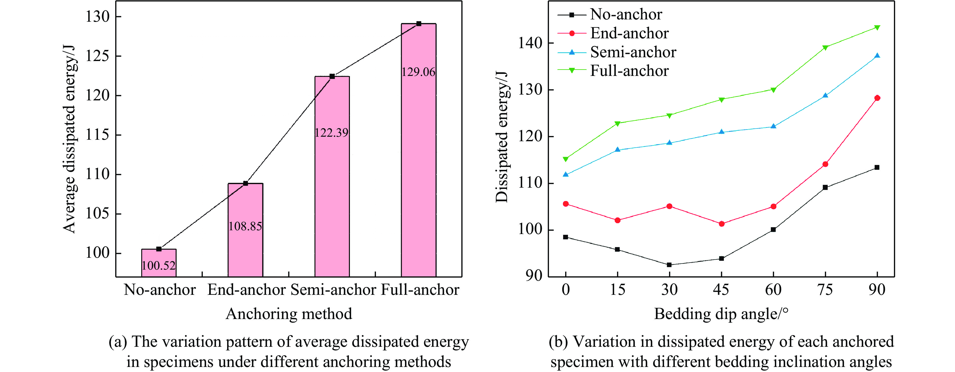 为研究冲击荷载下锚固方式与层理倾角对岩体强度的影响规律,对无锚、端锚、半锚及全锚层理砂岩进行动态冲击试验研究,分析了不同锚固方式对层状砂岩动态力学特性、能量耗散规律及破裂分形特征的影响。研究结果表明:无锚试样强度随层理倾角增大,曲线表现先减小后增大,呈“V”型特征,试样在锚固后,强度得到明显提高,随锚固长度增大,曲线向倒“V”型特征转化;从能量方面来看,四类试样透射能变化规律均与强度变化规律相似,随层理倾角增大,反射能曲线呈倒“V”型特征,透射能逐渐减小,耗散能则逐渐增大,锚固方式仅影响了曲线整体水平;试样破坏后的碎屑具有明显分形特征,分形维数受层理倾角影响曲线均表现为倒“V”型特征,全锚试样破碎程度最小,无锚试样最剧烈,在此基础上计算了单位耗散能指数,曲线则呈现"V"型特征,全锚试样的单位耗散能指数曲线整体水平最高,表明其抗破坏能力最强。研究成果可为层状岩体工程锚固支护提供参考。