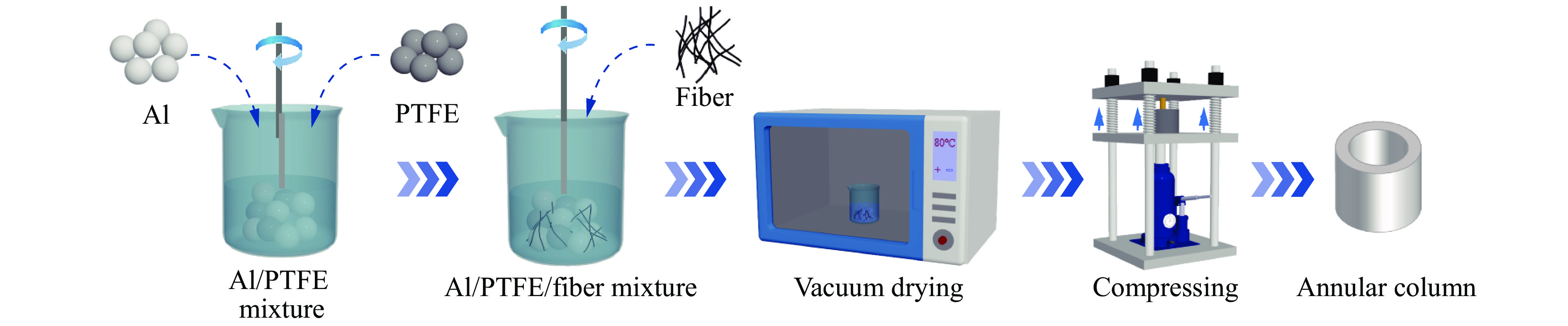 为了提升活性材料的力学和爆轰性能,在短切钛纤维添加到铝-聚四氟乙烯(Al/PTFE)基体中制备出Al/PTFE环状活性材料,并与RDX药柱形成Al/PTFE-RDX组合装药。利用万能材料试验机和分离式霍普金森杆研究了不同钛纤维含量对环状活性材料力学行为的影响;采用自由场爆炸测试系统、球形爆炸容器测试系统并结合比色测温技术,深入研究了短切钛纤维含量对组合装药的准静态压力、冲击波参数和热毁伤效应的影响。力学性能测试结果表明,随着钛纤维质量比的增加,Al/PTFE环状活性材料在静态压缩条件下的弹性模量、屈服强度、抗压强度等参数以及在高速撞击下的屈服强度和抗压强度均呈现先增加后减小的趋势,并且均在短切钛纤维质量比为3%时达到最大值。爆炸性能实验结果表明,短切钛纤维能够显著改善Al/PTFE-RDX组合装药的爆炸性能,当短切钛纤维质量比为3%时,爆炸冲击波超压、正相作用时间和正冲量达到峰值分别为37.68 kPa、695.34 µs和12.34 Pa·s;而当短切钛纤维质量比为5%时后燃效应最显著,其爆炸准静态压力、火球最高平均温度和火球持续时间达到最大值70.50 kPa、2782 K和1668.90 μs。固体爆炸产物分析表明,短切钛纤维通过改善Al/PTFE基体力学强度、延缓Al/PTFE环状活性材料碎裂时间并促进界面反应并参与高温化学反应,产生的协同作用和正反馈效应可以同时增强Al/PTFE活性材料的力学韧性与能量释放效率。