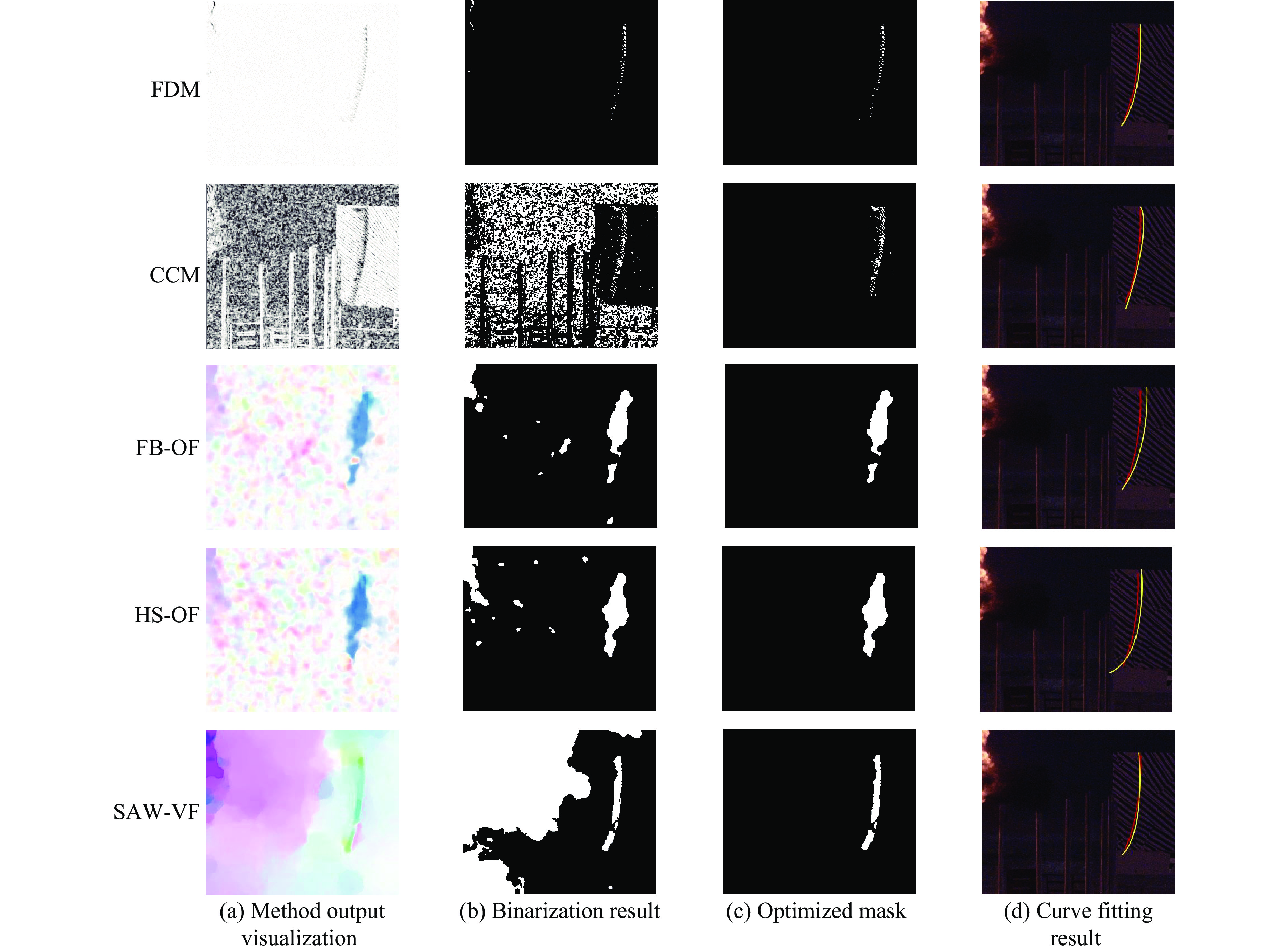 背景纹影(background-oriented schlieren,BOS)技术因其非接触与高时空分辨率的优势,已成为爆炸力学外场试验的重要测量手段,但受强光干扰、产物散射及冲击波信号微弱且形态复杂等因素影响,BOS图像中波阵面的自动精确提取十分困难。为此,提出了一种结构感知加权变分光流方法(structure-aware weighted variational optical flow,SAW-VF),用于对冲击波的高速瞬态位移场进行鲁棒量化,其核心是最小化一个针对性构建的能量泛函:首先,在数据保真项中融合一阶光度与二阶Hessian矩阵不变性约束,从而显著增强对冲击波线状局部几何特征的敏感性;其次,引入由归一化互相关(normalized cross-correlation,NCC)驱动的空间自适应加权机制,能够动态抑制严重畸变区域对估计结果的负面影响;然后,采用受佩罗娜-马利克(perona-malik)扩散启发的各向异性正则项,以有效保护冲击波锋锐的运动边界。为了以应对大位移运动,整个优化过程嵌入由粗至精的高斯金字塔框架中。在此基础上,进一步构建了物理模型驱动的波阵面拟合方法,通过最大内点集优化与冲击波动力学约束精确提取波阵面。最终,通过基于几何标定与时间序列估计冲击波半径及传播速度,结合兰金-雨贡纽(rankine-hugoniot)理论实现非接触式超压定量测量。在TNT爆炸试验中,该方法测量结果与压力传感器数据的相对误差为0.93%~9.85%,验证了其在冲击波非侵入式超压测量中的有效性与准确性。