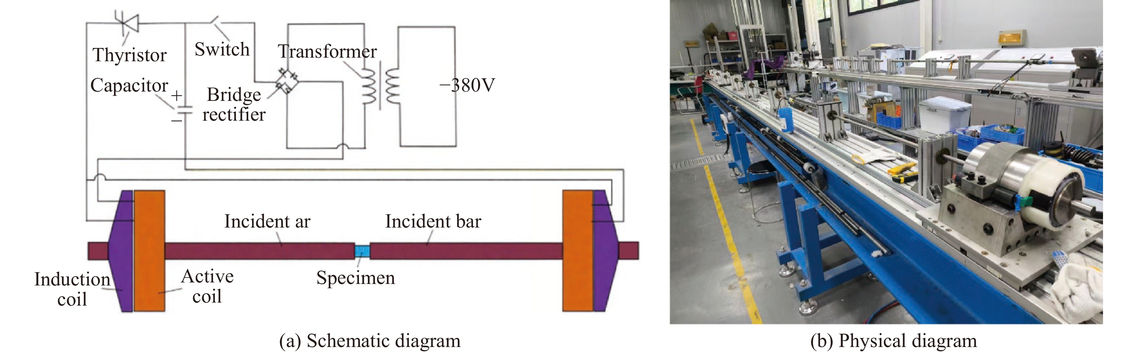 为解决材料动态复合加载过程中实现稳定应力比的难题,基于电磁Hopkinson杆(electromagnetic Hopkinson bar, ESHB)平台开发了一种新型装置,实现了单边同步动态拉/压-扭复合加载。阐述了装置的构型与加载原理,该装置可以独立产生梯形拉伸/压缩应力波和扭转应力波。通过精度达0.1 μs的数字延时发生器确保了加载的同步性,可将不同类型波到达试样的时间差控制在5 μs内,克服了波速不同带来的挑战。此外,还分析了同步控制方法及波的传播历程。为验证该装置,对CoCrFeMnNi高熵合金试样进行了动态拉-扭实验。实验结果证明了该装置的高可靠性和有效性,加载过程中可以实现试样达到约1.7的稳定应力比。更重要的是,实验证明梯形波加载能显著提升动态复合加载中的应力比稳定性,效果远超正弦波加载。该实验方法使研究材料在复杂应力状态(高应变率、多轴加载)下的动态力学响应成为可能,稳定应力比加载的成功实现,为精准表征动态多轴条件下材料的屈服准则与失效机制开辟了新途径。