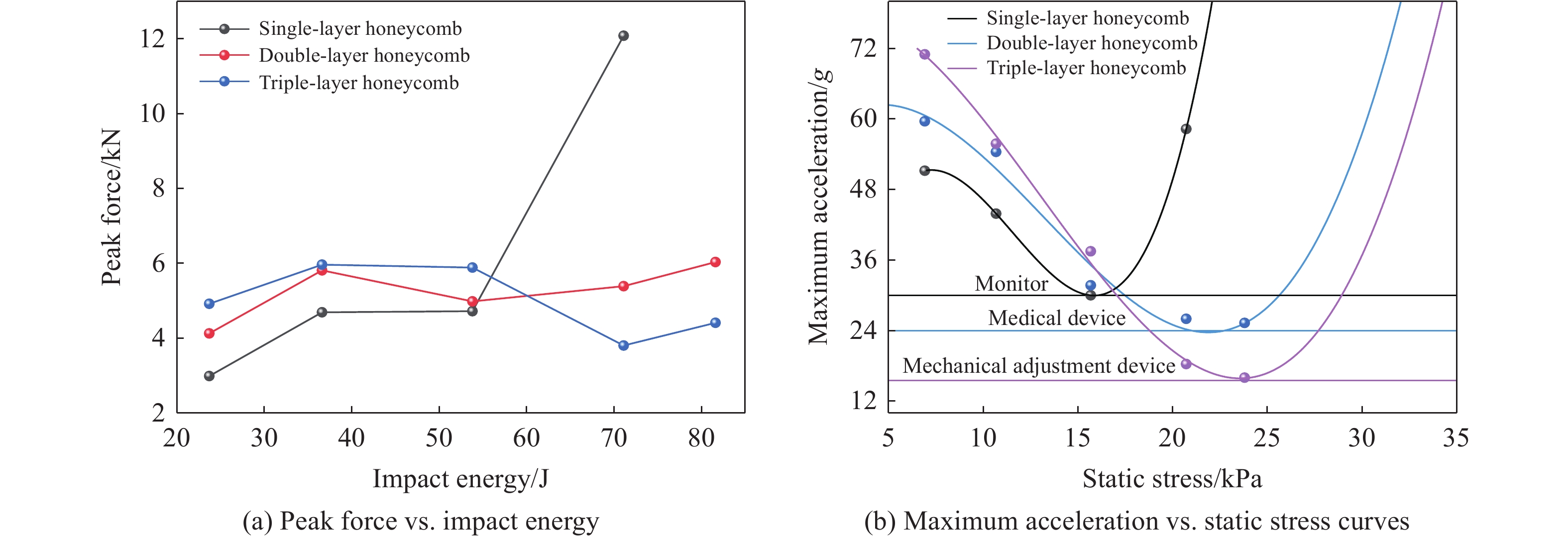 在包装领域中,用于保护产品的蜂窝纸板用量设计大多依赖于经验,易造成浪费。本研究基于多层纸蜂窝结构的缓冲特性,构建了一套等厚约束下,基于脆值理论的包装结构快速设计方法。首先通过静态压缩与动态冲击试验,获取了不同构型蜂窝材料的力-位移曲线与能量吸收特性,同时结合数值模拟方法,揭示了不同构型在加载过程中的变形模式与力学响应机制。并基于试验所得的结构缓冲特性数据,实现多层蜂窝包装结构的快速参数化设计,并通过有限元模型对设计方案的缓冲效果进行了数值验证。结果表明,在静压试验中,三层纸蜂窝有效吸能比单层纸蜂窝结构多吸收65.1%能量,其应力-应变曲线呈现明显的多次平台应力区域,在冲击荷载作用下,三层纸蜂窝在受到小于81.6J能量冲击下,未进入致密段,而单层纸蜂窝结构在受到大于53.8J能量冲击下,出现力值陡增现象,多层纸蜂窝结构在冲击下具备更优的吸能特性。基于脆值与试验所得多层蜂窝结构缓冲特性进行结构包装逆向设计,于有限元模型中进行验证,证明了设计方法的有效性。与现有蜂窝包装结构设计方法相比,该设计方法具备更高效率与准确性,于缓冲包装结构设计与其它冲击领域中具备一定前景。