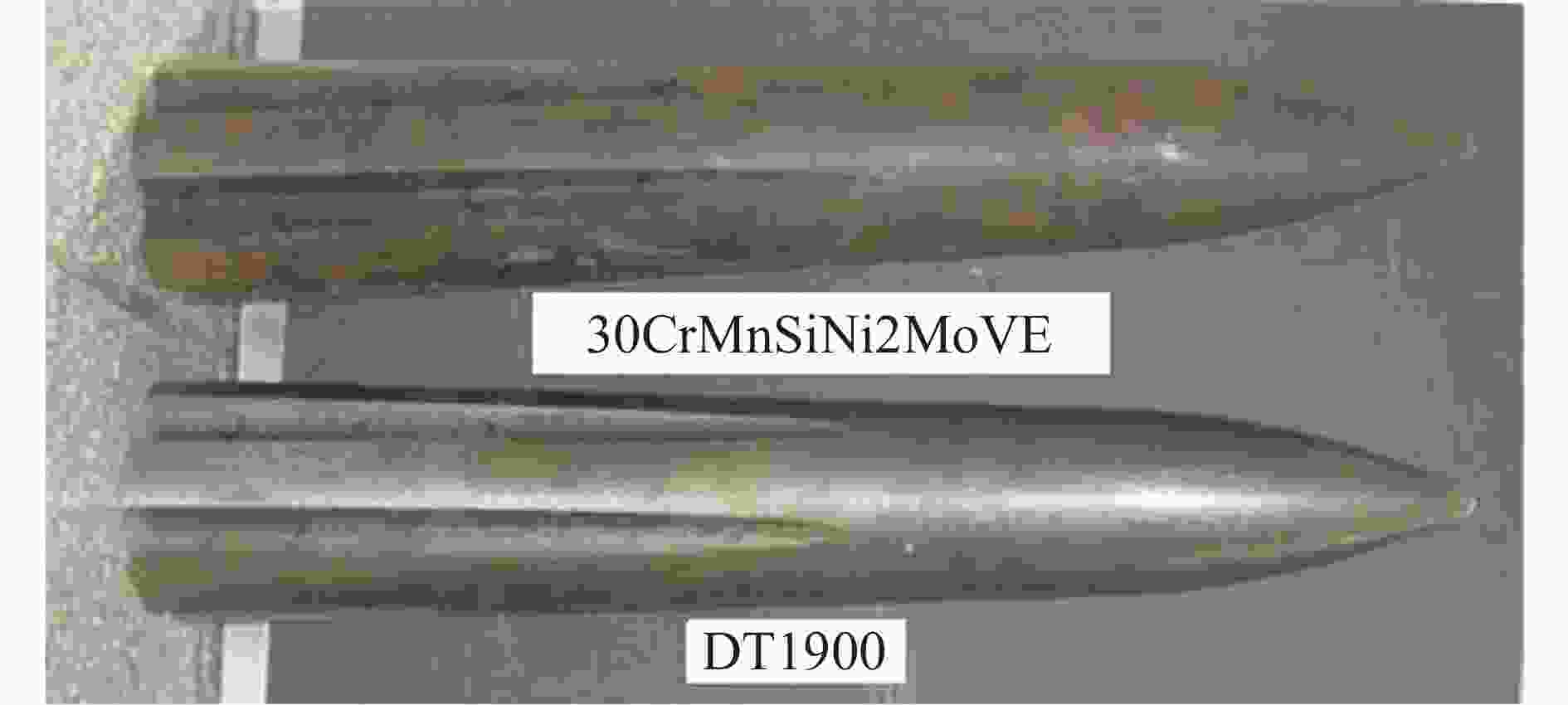 材料 序号 ${\sigma _{0.2}}$/MPa ${\sigma _{\mathrm{b}}}$/MPa δ/% Ψ/% KIC/(MPa·m1/2) HRC 30CrMnSiNi2MoVE 1 1326 1656 12.8 45 110 48.6 2 1356 1680 10.9 45 107 48.5 3 1390 1713 10.5 43 101 48.8 DT1900 1 1770 1960 14.0 64.5 118 52.5 2 1790 1970 14.0 69.0 110 51.6 3 1770 2000 14.0 65.5 103 52.2 表 2 实验结果
