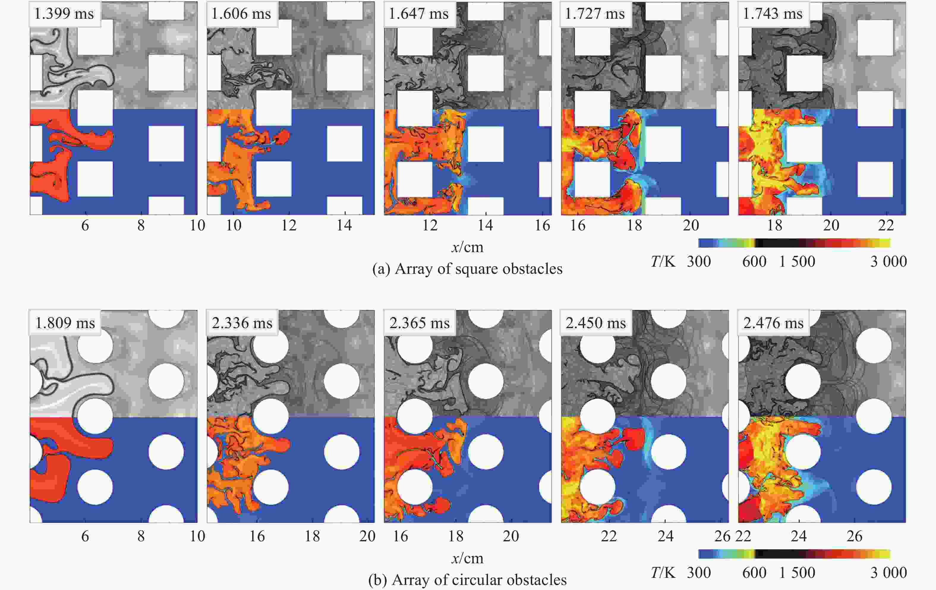 XIAO H H, ORAN E S. Flame acceleration and deflagration-to-detonation transition in hydrogen-air mixture in a channel with an array of obstacles of different shapes [J]. Combustion and Flame, 2020, 220: 378–393. DOI: 10.1016/j.combustflame.2020.07.013.