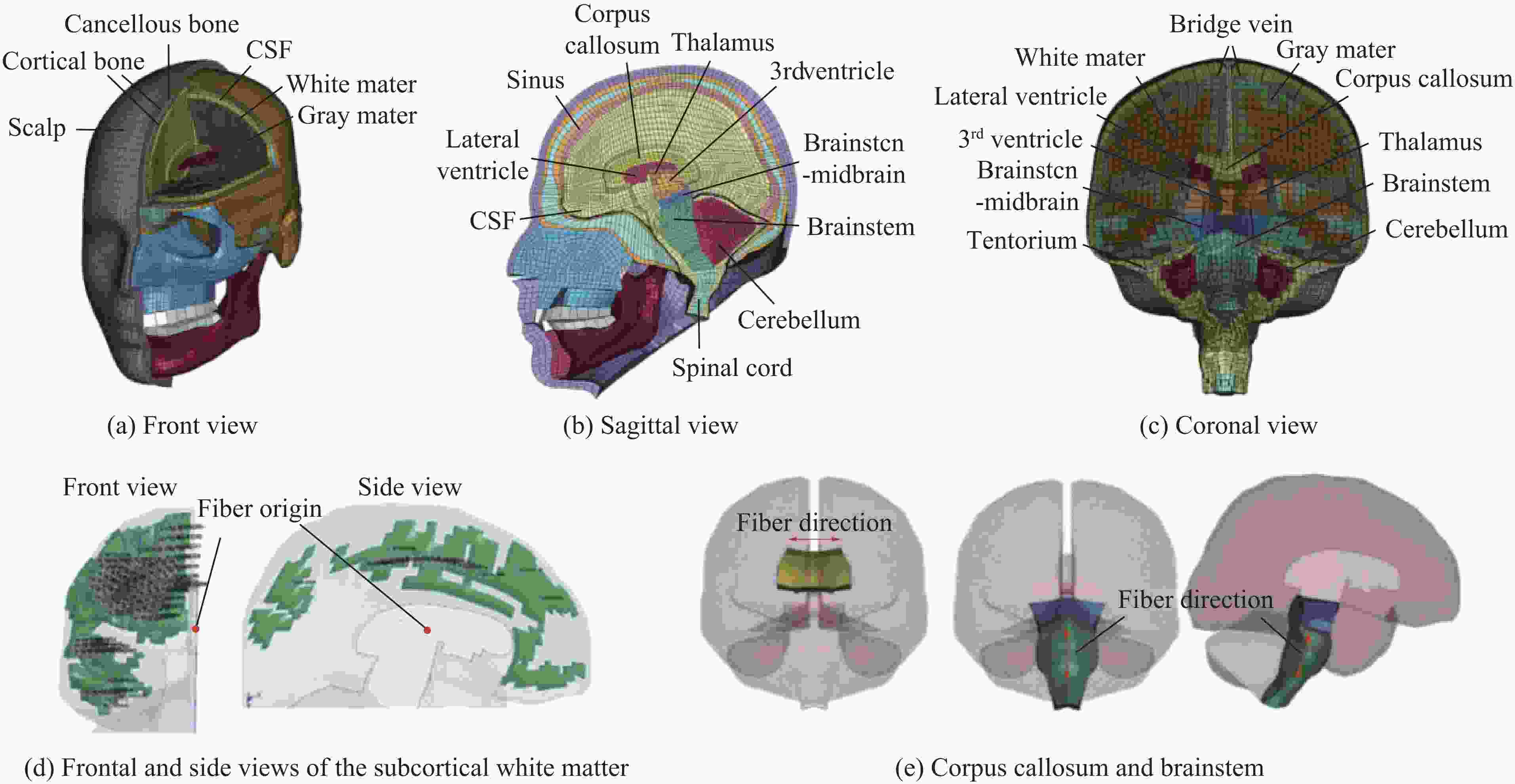 [1] MAAS A I R, MENON D K, MANLEY G T, et al. Traumatic brain injury: progress and challenges in prevention, clinical care, and research [J]. The Lancet Neurology, 2022, 21(11): 1004–1060. DOI: 10.1016/S1474-4422(22)00309-X. [2] WILSON L, STEWART W, DAMS-O’CONNOR K, et al. The chronic and evolving neurological consequences of traumatic brain injury [J]. The Lancet Neurology, 2017, 16(10): 813–825. DOI: 10.1016/S1474-4422(17)30279-X. [3] HOOFIEN D, GILBOA A, VAKIL E, et al. Traumatic brain injury (TBI) 10–20 years later: a comprehensive outcome study of psychiatric symptomatology, cognitive abilities and psychosocial functioning [J]. Brain Injury, 2001, 15(3): 189–209. DOI: 10.1080/026990501300005659. [4] HAWRYLUK G W, MANLEY G T. Classification of traumatic brain injury: past, present, and future [J]. Handbook of clinical neurology, 2015, 127: 15–21. DOI: 10.1016/B978-0-444-52892-6.00002-7. [5] TSE K M, LIM S, TAN V B C, et al. A review of head injury and finite element head models [J]. American Journal of Engineering, Technology and Society, 2014, 1: 28–52. [6] GREVE M W, ZINK B J. Pathophysiology of traumatic brain injury [J]. Mount Sinai Journal of Medicine: A Journal of Translational and Personalized Medicine, 2009, 76(2): 97–104. DOI: 10.1002/msj.20104. [7] ZHAN X H, OEUR A, LIU Y Z, et al. Translational models of mild traumatic brain injury tissue biomechanics [J]. Current Opinion in Biomedical Engineering, 2022, 24: 100422. DOI: 10.1016/j.cobme.2022.100422. [8] SMITH D H, MEANEY D F, SHULL W H. Diffuse axonal injury in head trauma [J]. The Journal of Head Trauma Rehabilitation, 2003, 18(4): 307. DOI: 10.1097/00001199-200307000-00003. [9] GRAHAM N S N, JOLLY A, ZIMMERMAN K, et al. Diffuse axonal injury predicts neurodegeneration after moderate-severe traumatic brain injury [J]. Brain, 2020, 143(12): 3685–3698. DOI: 10.1093/brain/awaa316. [10] HARDY W N, FOSTER C D, MASON M J, et al. Investigation of head injury mechanisms using neutral density technology and high-speed biplanar X-ray [J]. Stapp Car Crash Journal, 2001, 45: 337–368. DOI: 10.4271/2001-22-0016. [11] NAHUM A M, SMITH R, WARD C C. Intracranial pressure dynamics during head impact: SAE Technical Paper 770922 [R]. Warrendale: SAE International, 1977. DOI: 10.4271/770922. [12] ALSHAREEF A, GIUDICE J S, FORMAN J, et al. Biomechanics of the human brain during dynamic rotation of the head [J]. Journal of Neurotrauma, 2020, 37(13): 1546–1555. DOI: 10.1089/neu.2019.6847. [13] ZHOU Z, LI X G, LIU Y Z, et al. Brain strain rate response: addressing computational ambiguity and experimental data for model validation [J]. Brain Multiphysics, 2023, 4: 100073. DOI: 10.1016/j.brain.2023.100073. [14] GUETTLER A J, RAMACHANDRA R, BOLTE J, et al. Kinematics response of the PMHS brain to rotational loading of the head: development of experimental methods and analysis of preliminary data: SAE Technical Paper 2018-01-0547 [R]. SAE Technical Paper, 2018. DOI: 10.4271/2018-01-0547. [15] ZHOU Z, LI X G, KLEIVEN S, et al. Brain strain from motion of sparse markers [C]//Proceedings of the 63rd Stapp Car Crash Conference. SAE, 2020. DOI: 10.4271/2019-22-0001. [16] DIXIT P, LIU G R. A review on recent development of finite element models for head injury simulations [J]. Archives of Computational Methods in Engineering, 2017, 24(4): 979–1031. DOI: 10.1007/s11831-016-9196-x. [17] TAJRAN J, GOSMAN A A. Anatomy, head and neck, scalp [M]. Treasure Island (FL): StatPearls Publishing LLC., 2024. [18] ORR T J, LESHA E, KRAMER A H, et al. Traumatic brain injury: a comprehensive review of biomechanics and molecular pathophysiology [J]. World Neurosurgery, 2024, 185: 74–88. DOI: 10.1016/j.wneu.2024.01.084. [19] RUAN J, PRASAD P. The effects of skull thickness variations on human head dynamic impact responses [J]. Stapp Car Crash Journal, 2001, 45: 395–414. DOI: 10.4271/2001-22-0018. [20] MEANEY D F, OLVEY S, GENNARELLI T. Biomechanical basis of traumatic brain injury [J]. Youmans and Winn Neurological Surgery, 2016, 4: 2755–2764. DOI: 10.1016/b978-1-4160-5316-3.00328-2. [21] KEATING C E, CULLEN D K. Mechanosensation in traumatic brain injury [J]. Neurobiology of Disease, 2021, 148: 105210. DOI: 10.1016/j.nbd.2020.105210. [22] JIN X, YANG K H, KING A I. Mechanical properties of bovine pia-arachnoid complex in shear [J]. Journal of Biomechanics, 2011, 44(3): 467–474. DOI: 10.1016/j.jbiomech.2010.09.035. [23] YANG S C, TANG J S, NIE B B, et al. Assessment of brain injury characterization and influence of modeling approaches [J]. Scientific Reports, 2022, 12(1): 13597. DOI: 10.1038/s41598-022-16713-2. [24] LÜDERS E, STEINMETZ H, JÄNCKE L. Brain size and grey matter volume in the healthy human brain [J]. NeuroReport, 2002, 13(17): 2371. DOI: 10.1097/00001756-200212030-00040. [25] 康越, 马天, 黄献聪, 等. 颅脑爆炸伤数值模拟研究进展: 建模、力学机制及防护 [J]. 爆炸与冲击, 2023, 43(6): 3–38. DOI: 10.11883/bzycj-2022-0521.KANG Y, MA T, HUANG X C, et al. Advances in numerical simulation of blast-induced traumatic brain injury: modeling, mechanical mechanism and protection [J]. Explosion and Shock Waves, 2023, 43(6): 3–38. DOI: 10.11883/bzycj-2022-0521. [26] KLEIVEN S, HARDY W N. Correlation of an FE model of the human head with local brain motion: consequences for injury prediction [J]. Stapp Car Crash Journal, 2002, 46: 123–144. DOI: 10.4271/2002-22-0007. [27] KLEIVEN S. Predictors for traumatic brain injuries evaluated through accident reconstructions [J]. Stapp Car Crash Journal, 2007, 51: 81–114. DOI: 10.4271/2007-22-0003. [28] KING A I, HARDY W N, MASON M J, et al. Comparison of relative motion between the brain and skull of the human cadaver for rotation in the coronal and sagittal planes [C]//Proceedings of the 4th World Congress of Biomechanics. 2002. [29] HO J, KLEIVEN S. Dynamic response of the brain with vasculature: a three-dimensional computational study [J]. Journal of Biomechanics