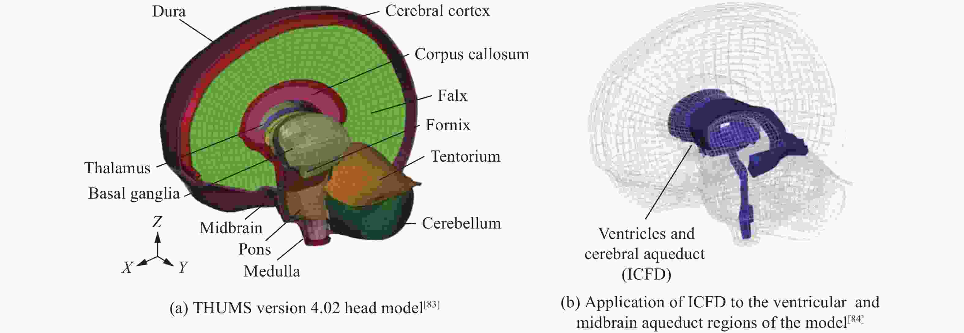 摘要: 创伤性脑损伤(traumatic brain injury, TBI)是发病率、患病率最高的神经系统疾病,为全社会带来了巨大的公共卫生负担。深入研究TBI的生物力学原理有助于提升头部防护效果,发展快速评估技术并采取及时干预,从而降低伤情恶化的风险。人类头部有限元模型(finite element head model, FEHM)作为一种数值分析工具,能够模拟头部在受到冲击时的动态响应,包括脑组织的应力应变时空分布、颅内压的变化等,为理解创伤性脑损伤的力学机制提供了重要依据。本文详细总结了国内外主流的人类头部有限元模型的现状与发展,追溯了模型的发展历程,总结了模型的特点并介绍了基于有限元模型的TBI机制研究进展。对相关研究的总结和梳理将有助于开发新型FEHM,并为创伤性脑损伤的风险评估及防护装备的设计提供理论指导和技术支撑。Abstract: Traumatic brain injury (TBI) is the neurological disorder with the highest incidence and prevalence, and poses a huge public health burden for the whole society. An in-depth study of the biomechanics of TBI can help to improve the effectiveness of head protection, develop rapid assessment techniques and take timely interventions, thus reducing the risk of injury deterioration. As a numerical analysis tool, the finite element head model (FEHM) is able to simulate the dynamic response of the head during impact, including the spatial and temporal distribution of stress-strain in brain tissues, and the change of intracranial pressure, which provides an important basis for understanding the mechanical mechanism of TBI. This paper summarizes in detail the current status and development of mainstream finite element models of the human head at home and abroad, traces the development of the models, summarises the characteristics of the models and introduces the research progress of TBI mechanisms based on finite element models. The summary and sorting out of related research will be helpful for the development of new FEHMs and provide theoretical guidance and technical support for the risk assessment of traumatic brain injury and the design of protective equipment.