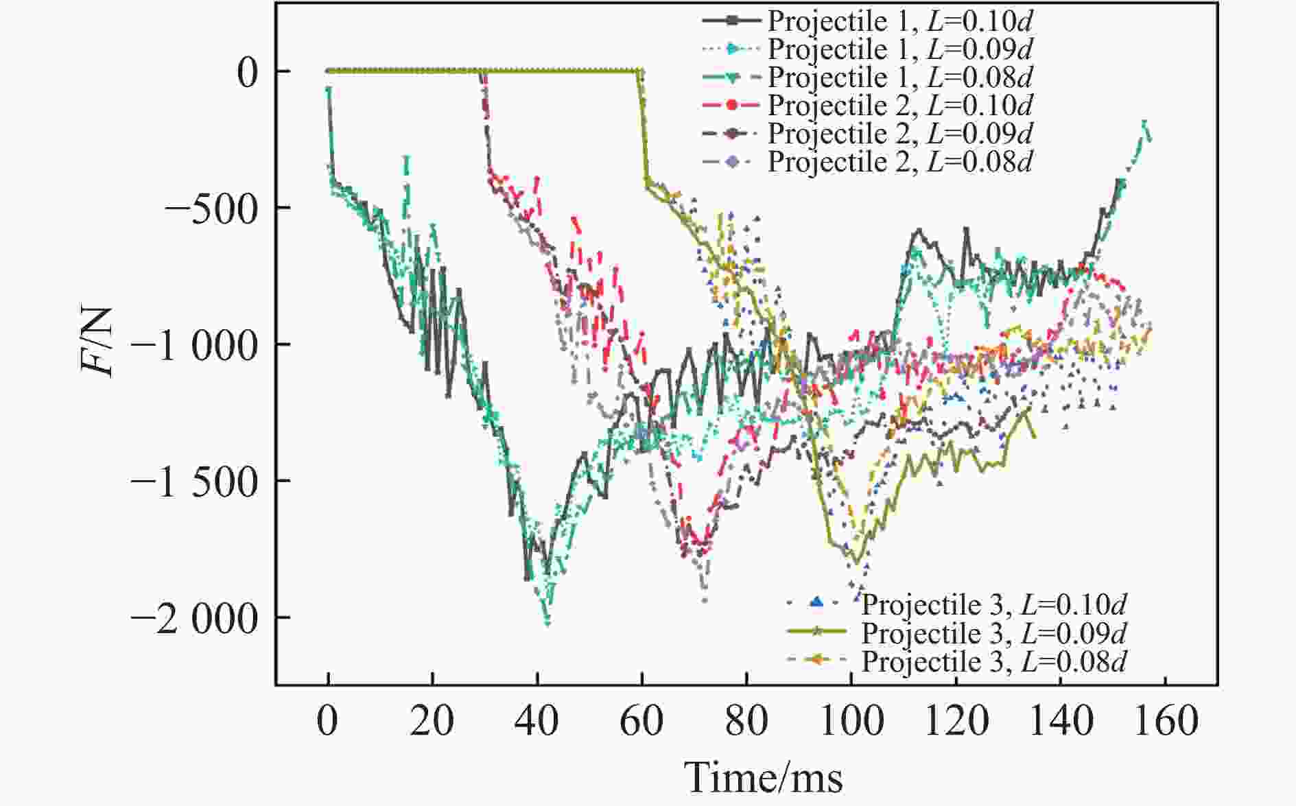 Table 1. Peak value of fluid force on various projectiles
