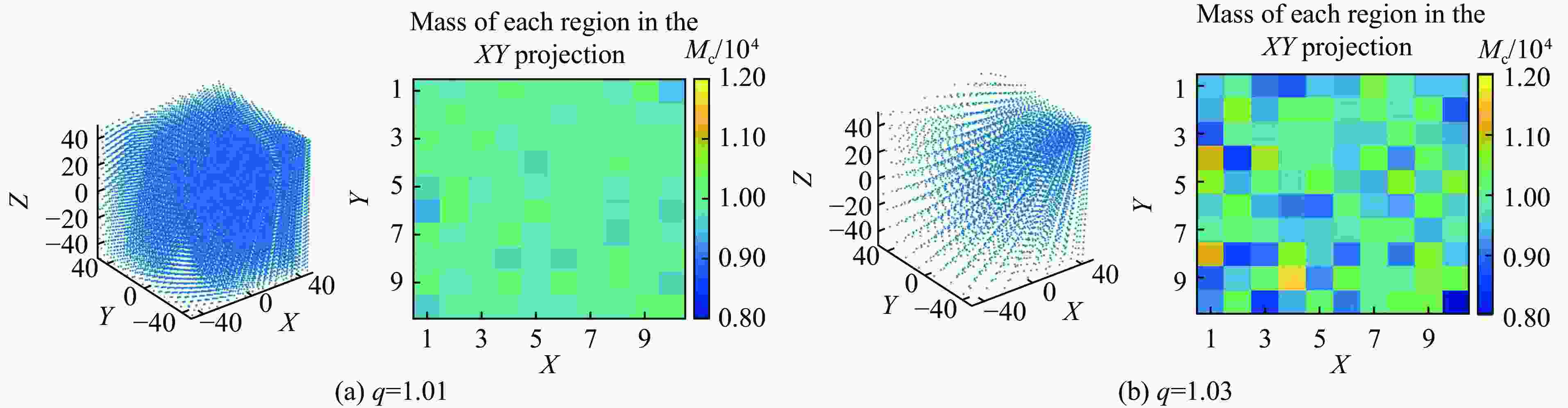 Ares q 总粒子数 总质量 粒子数占比/% 总质量误差/% 1 1.00 1 000 000 1 000 000 100 0 1 1.01 89 859 994 575 8.96 −0.54 1 1.03 10 323 982 158 1.03 −1.78 2 1.00 125 000 1 000 000 100 0 2 1.01 29 714 993 986 23.77 −0.60 2 1.03 5 762 979 872 4.61 −2.01 表 4 相似结果时的不同工况参数
