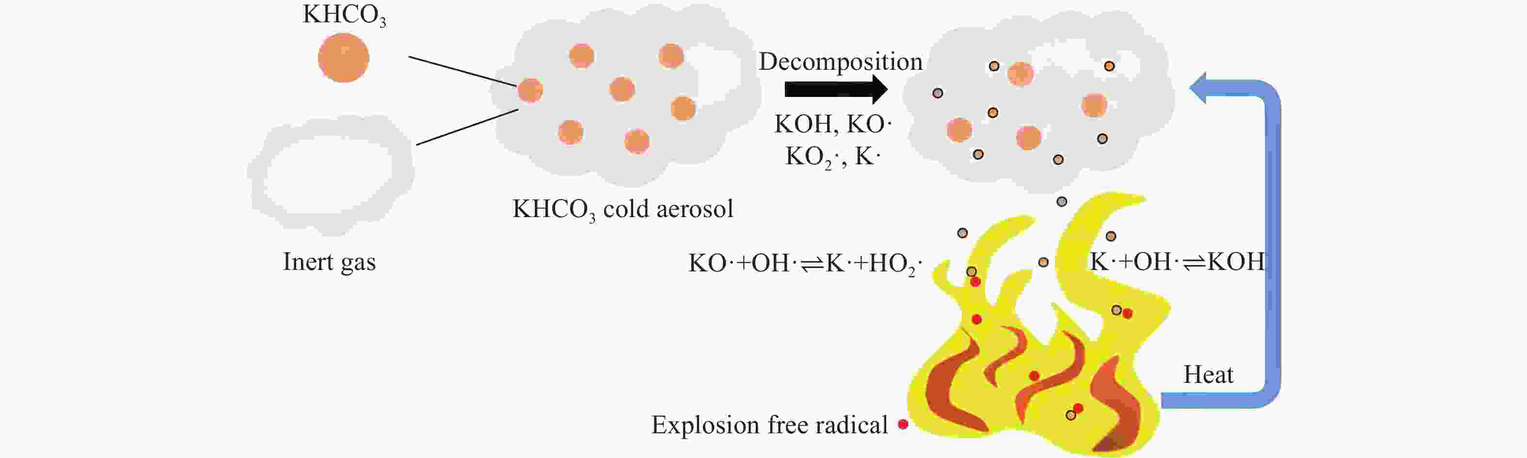 Figure  10.  Mechanism illustration in explosion suppression of KHCO3 cold aerosol driven by inert gas[97]
