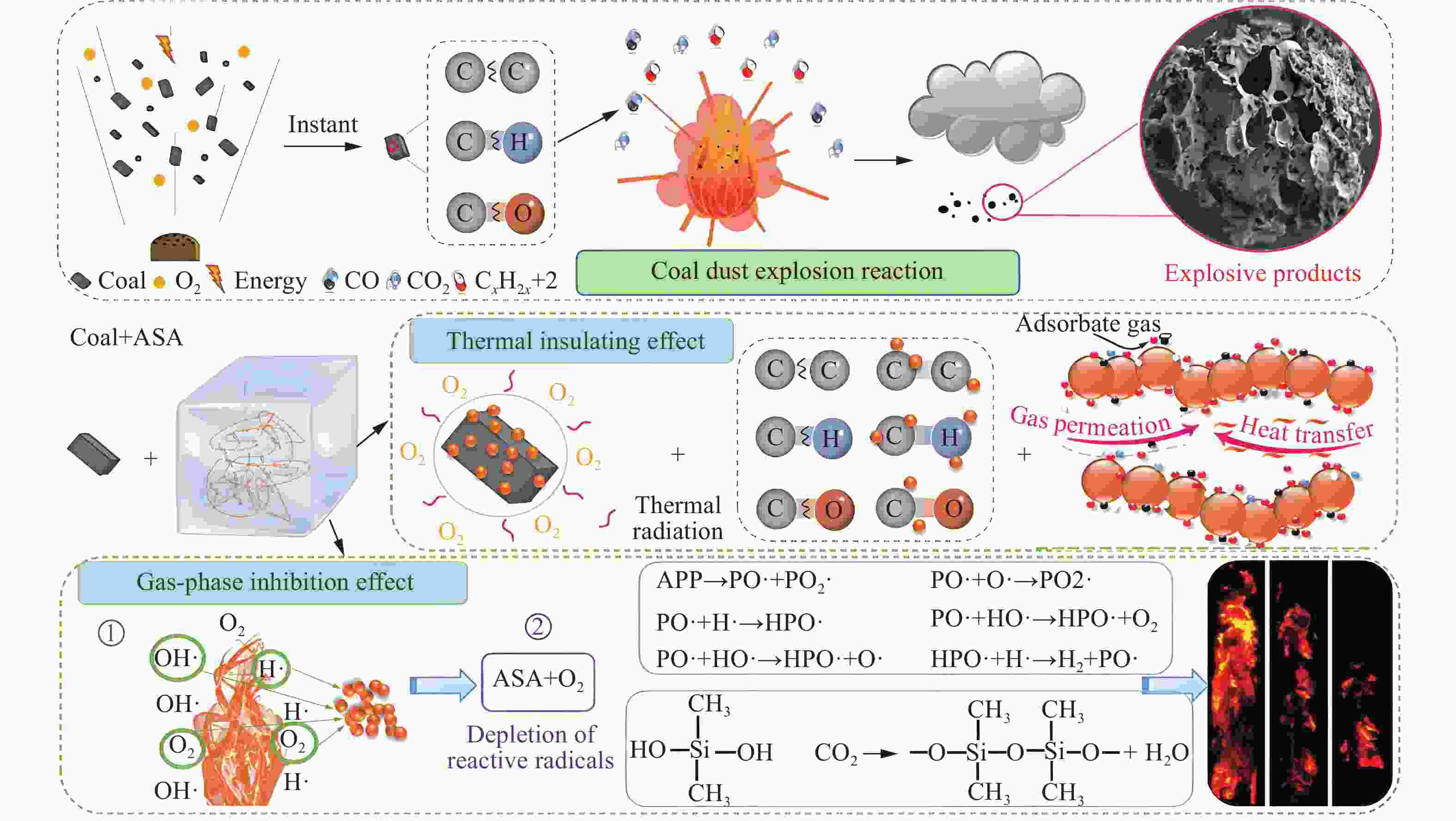 Figure  6.  Mechanism of APP suppressing coal explosion[51]