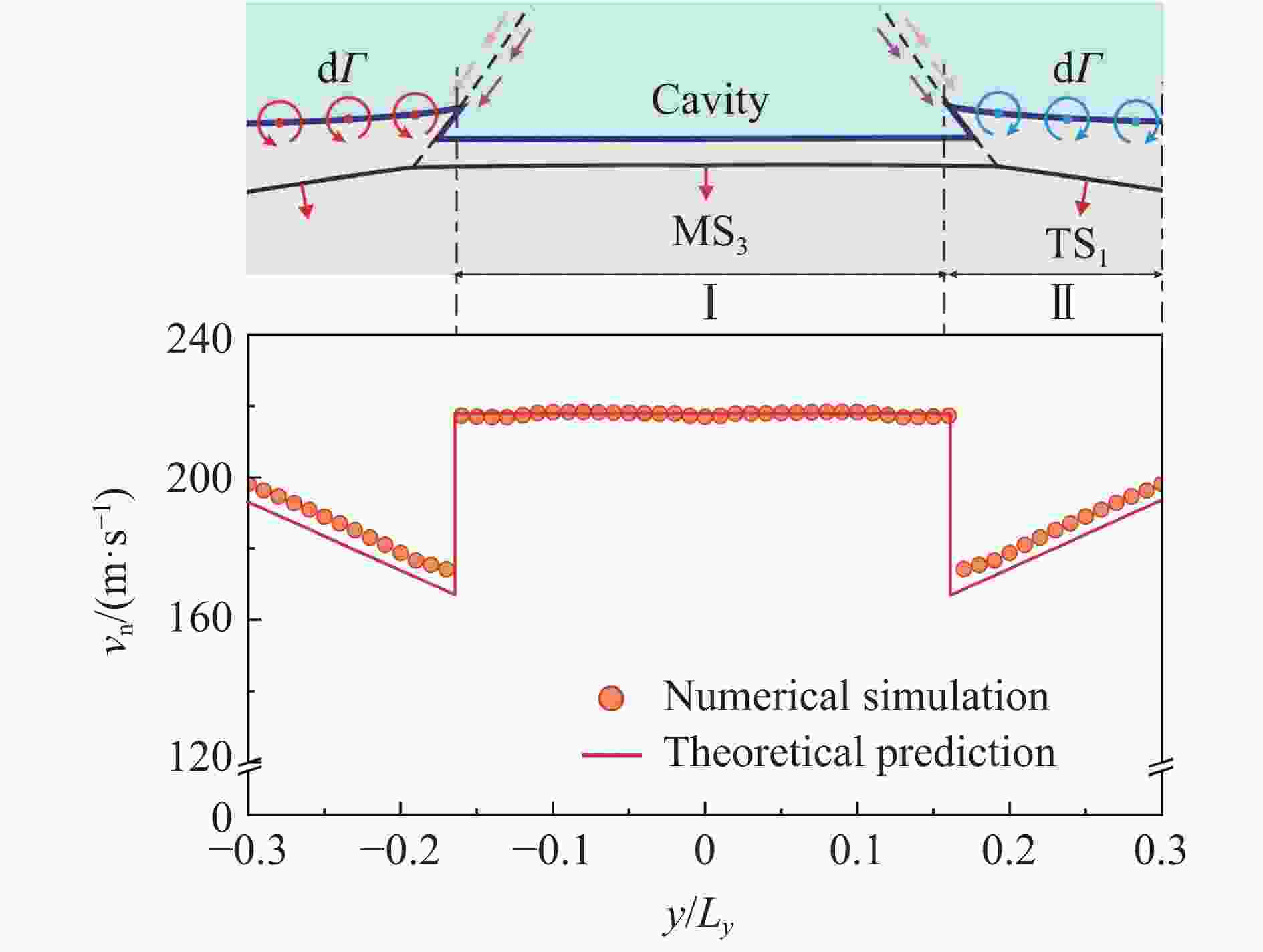 摘要: 采用数值模拟与理论分析相结合的方法,研究了马赫反射波系与平面SF6/N2界面的作用过程,特别关注其中马赫反射波系的入射加载阶段。在入射平面激波马赫数为1.8的情况下,给出了绕刚体圆柱后形成马赫反射波系的数值纹影,定性分析了马赫反射波系入射加载重/轻界面的波系演化过程。运用三激波理论对折射过程进行了分析求解,结果表明,该理论解可以良好预测折射后的激波形态以及界面上的环量沉积和速度扰动。进一步,通过绘制激波极曲线和稀疏波特征线,直观描述了入射加载过程中波系前后的压力变化和气流偏转。理论分析和数值模拟结果均表明,马赫反射波系中激波强度以及入射角的差异诱导了界面上的纵向速度扰动,激波加载带来的切向速度诱导了界面上的环量沉积,速度扰动和环量主导了重/轻界面前期的演化。