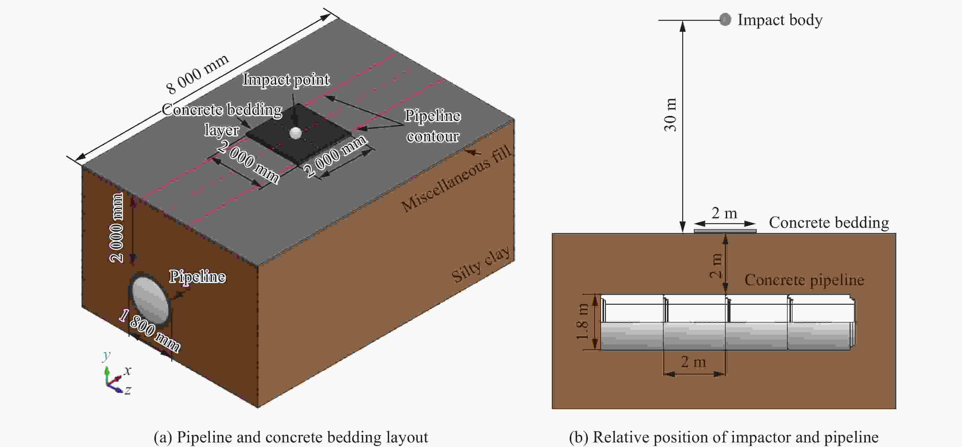 材料 密度/(g·cm−3) 弹性模量/GPa 泊松比 屈服强度/MPa 切线模量/MPa 混凝土 2.5 30 0.2 30 22500 表 6 管道相关材料参数
