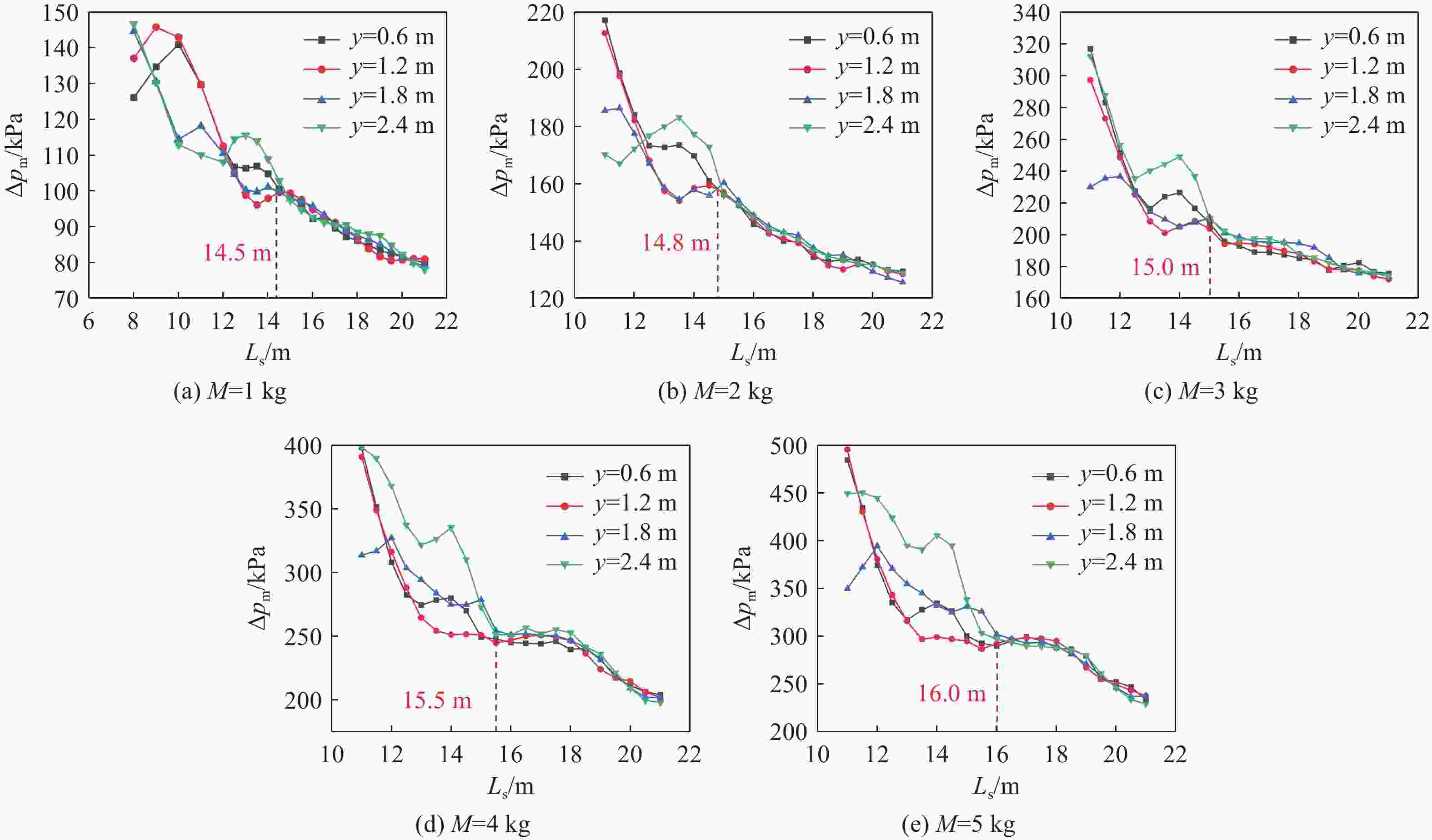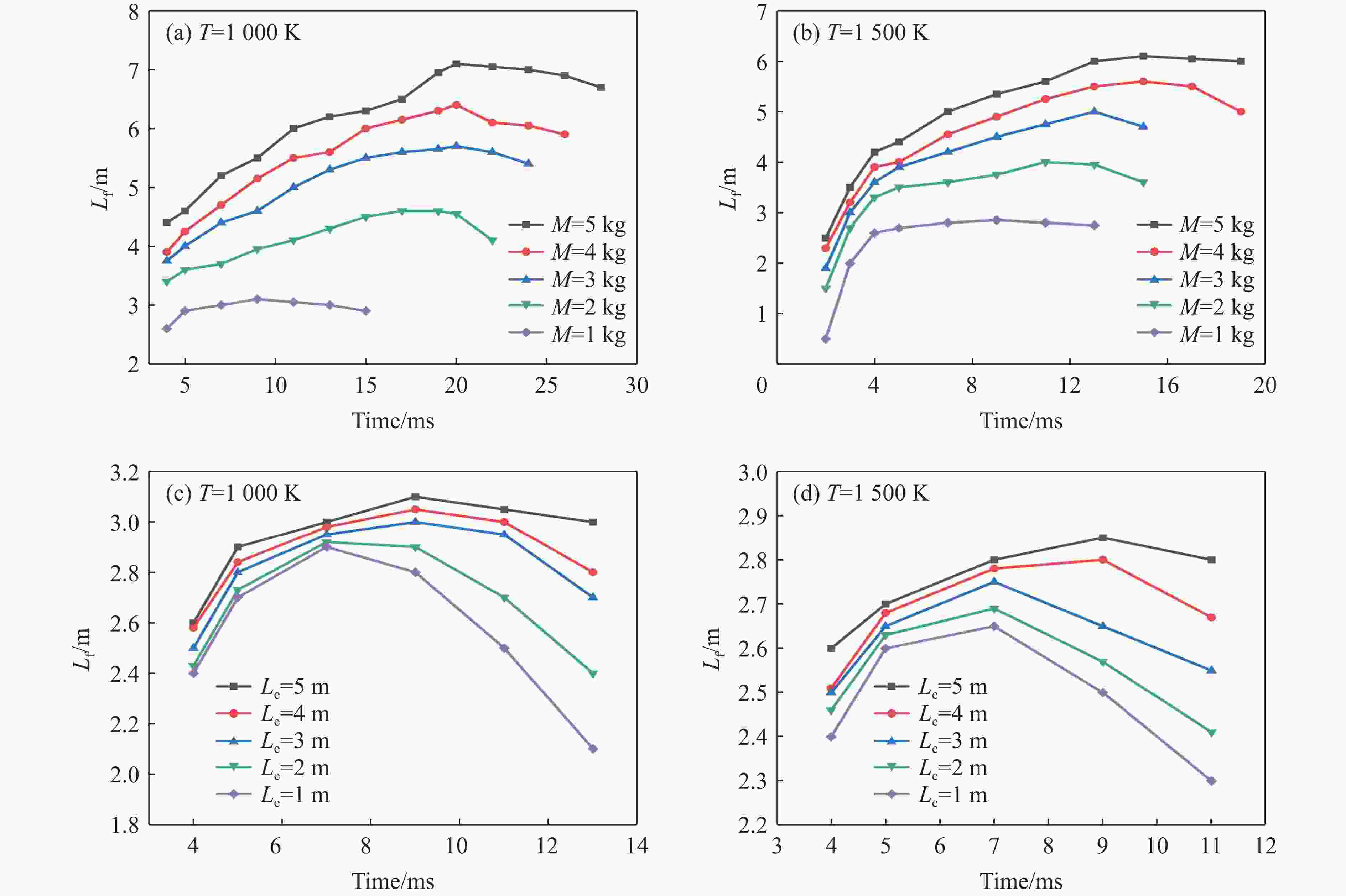 Ls/m Δpm I 试验结果/kPa 计算结果/kPa 误差/% 试验结果/(kPa·ms) 计算结果/(kPa·ms) 误差/% 4 278.8 288.2 3.4 598.7 617.0 3.1 6 200.9 198.1 1.4 619.7 595.4 3.9 8 141.5 137.4 2.9 698.2 712.2 2.0 14 93.2 97.9 5.0 740.8 736.7 0.6 16 92.9 94.8 2.0 704.8 731.9 3.8 20 78.7 80.8 5.3 755.1 746.8 1.1 22 73.1 79.1 8.0 702.4 755.1 7.5 表 3 火团在不同温度下的最大传播距离Lf,max