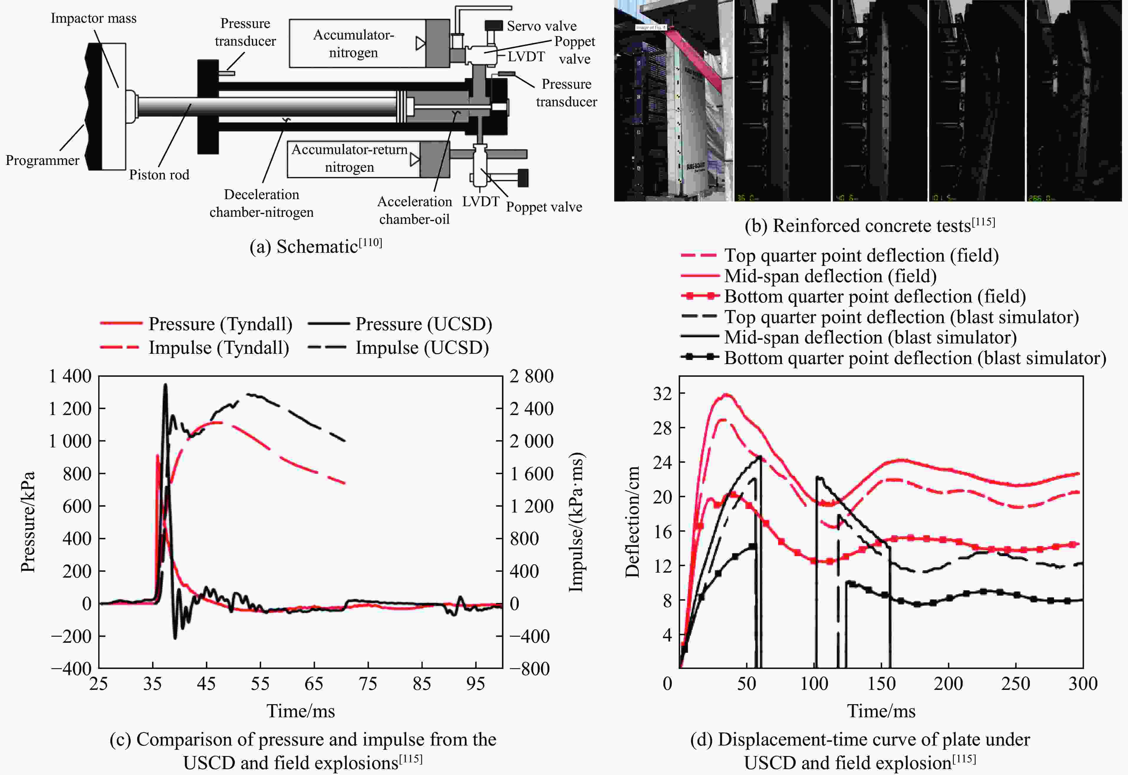 摘要: 随着全球恐怖主义和工业事故的增加,对基础设施在爆炸冲击下的安全性研究变得尤为迫切。试验作为探究材料和结构在爆炸冲击下动力响应和损伤特性的关键手段,它能安全、高效、准确地模拟爆炸冲击加载技术成为了该领域的研究热点与挑战。综述了模拟远场爆炸荷载的等效加载试验技术的研究进展,包括炸药驱动激波管、高压气体驱动激波管、落锤冲击试验机和液压驱动模拟器等。这些技术在模拟爆炸冲击波方面各有优势和局限,但都致力于提供一个安全、可控的试验环境,以复现爆炸产生的高速气流和冲击波。通过对比分析,揭示了各种技术模拟爆炸载荷的准确性、适用性和操作便利性等,并讨论了它们在实际应用中的潜力和挑战。最后,介绍了一种基于液气相变膨胀的新型模拟爆炸加载试验技术并展望了后续研究方向。Abstract: Against the backdrop of rising global terrorism and industrial accidents, research on infrastructure safety under blast impact has become critically urgent. As a pivotal approach for investigating dynamic responses and damage characteristics of materials and structures subjected to explosive loading, the equivalent blast-loading techniques, which show safe, efficient, and accurate, have emerged as both a research frontier and challenge. This review synthesizes advancements in equivalent blast-loading techniques for far-field explosion simulation, encompassing explosive-driven shock tubes, high-pressure gas-driven shock tubes, drop-weight impact testing machines, and hydraulically-actuated simulators. While each technique exhibits distinct advantages and limitations in simulating blast shockwaves, all strive to establish controlled and secure experimental environments that reproduce high-velocity air flow fields and pressure waves generated by explosions. Through comparative assessment, their performance in load replication fidelity, applicability, and operational efficiency are elucidated, alongside discussions on implementation challenges and potential. Finally, a novel blast simulation technique leveraging liquid-gas phase-transition-driven expansion is introduced and the follow-up research directions are prospected.