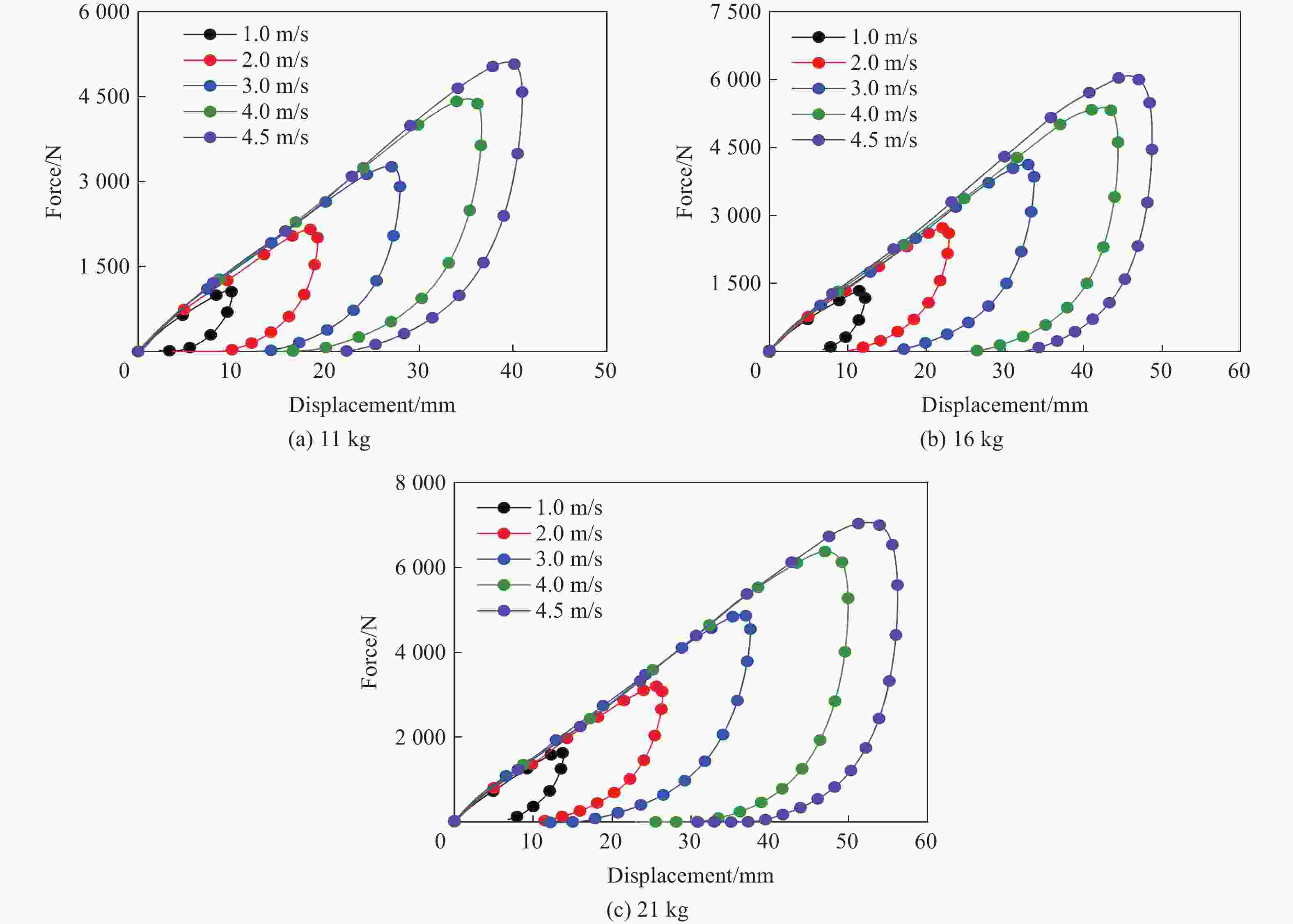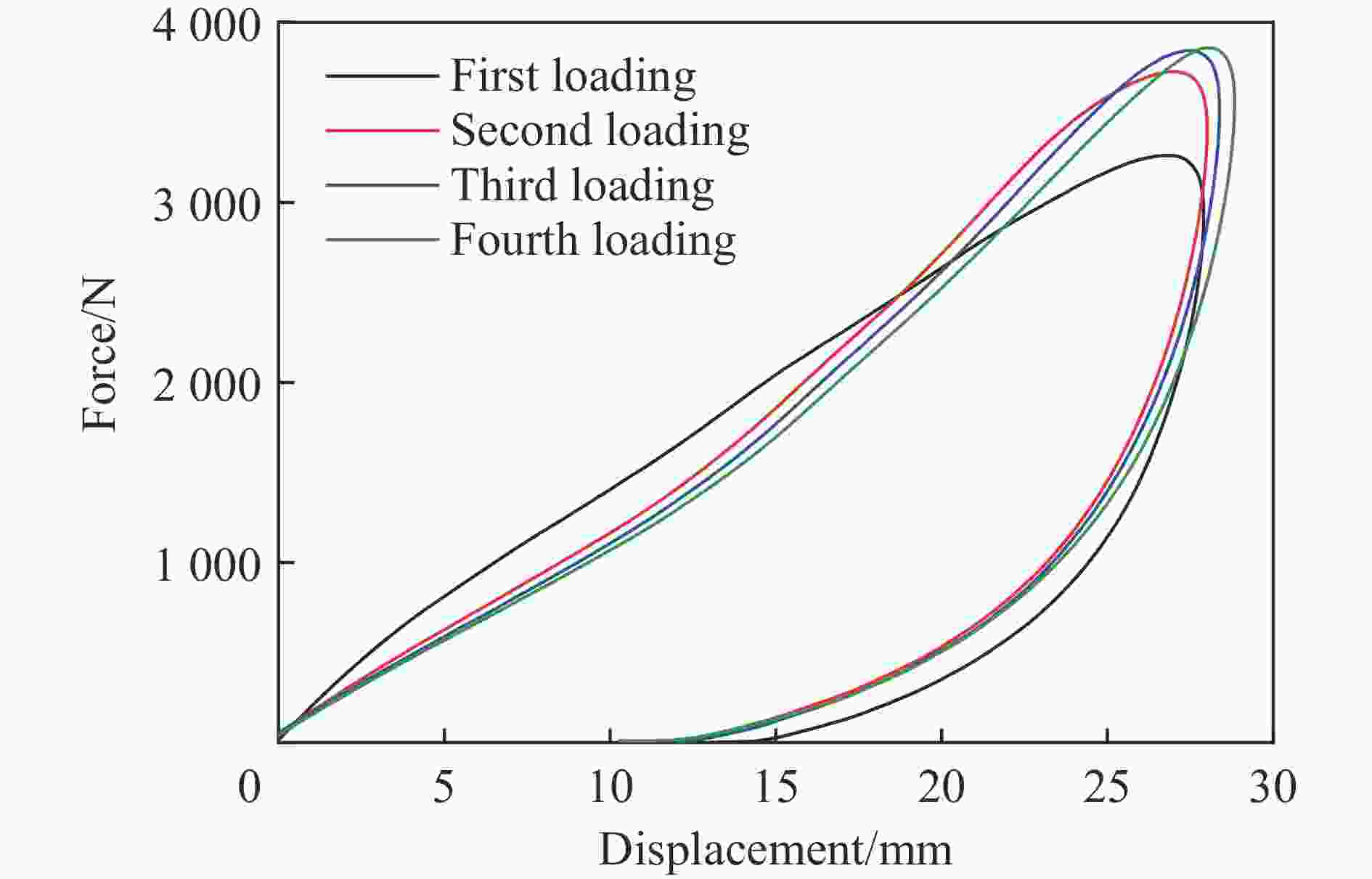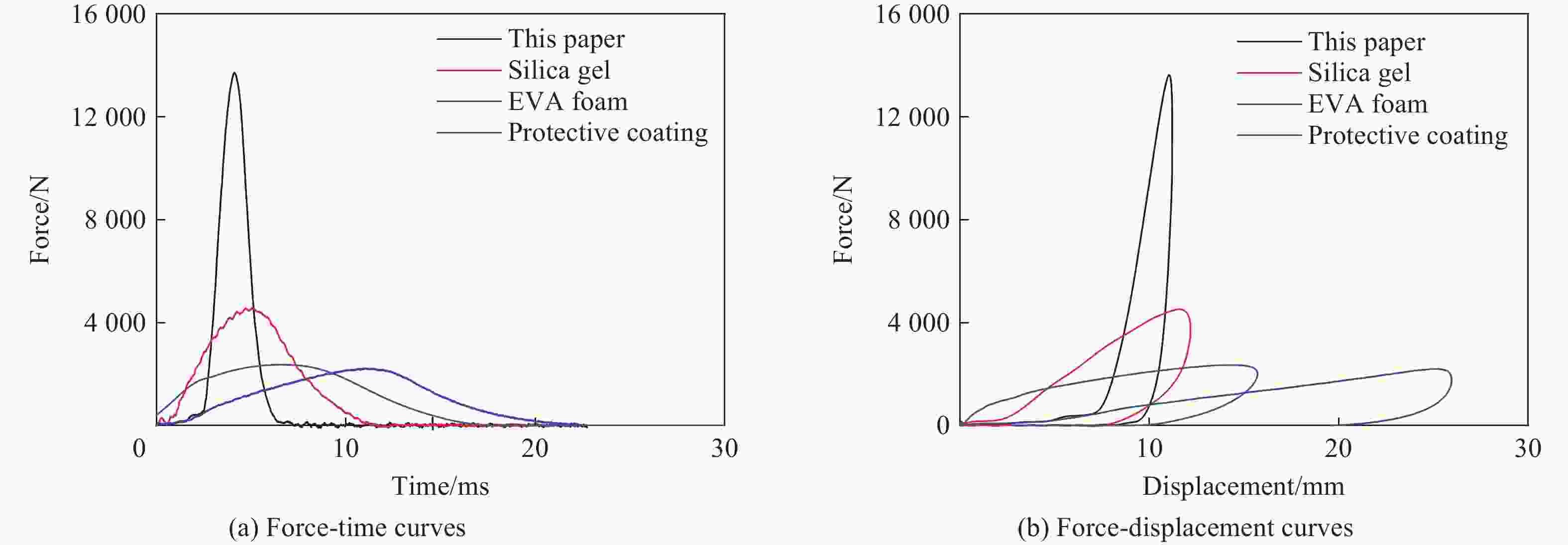 摘要: 针对恶劣海况下动态海缆及其保护套与风机平台摩擦和碰撞导致的断裂问题,以具有高弹性、高缓冲性能的乙烯-醋酸乙烯酯共聚物(ethylene vinyl acetate, EVA)泡沫和橡胶为主体材料,设计了一种抗多次冲击复合防护层。采用万能试验机和落锤开展了不同加载条件下多种相对密度的EVA泡沫材料的力学性能实验,揭示了相对密度、应变率和多次加载对材料能量吸收特性的影响规律。基于EVA泡沫材料单位体积吸能率与待吸收的动态海缆动能之间的匹配关系,讨论并确定最佳的防护层厚度尺寸,进而制作了复合防护层测试样件。随后,通过落锤冲击实验研究了复合防护层在单次冲击和多次冲击条件下的缓冲吸能特性。实验结果表明:在单次冲击下复合防护层的峰值力与最大位移随落锤质量与下落速度呈线性正相关,且能量吸收效率高达85%;在多次冲击下复合防护层的力学性能呈现显著稳定性,第4次冲击的最大位移较首次冲击仅增大了5.5%,且能量吸收值和瞬时回弹率的波动幅度均小于5%。复合防护层的独特力学性能可为动态海缆在恶劣海况下的长期使用提供有效保护。Abstract: To address the fracture problem of dynamic submarine cables and their protective sheaths caused by friction and collision with wind turbine platforms under harsh sea conditions, a multi-impact resistant composite protective layer was designed using ethylene vinyl acetate (EVA) foam and rubber as the main materials, which possess high elasticity and excellent cushioning properties. Mechanical property tests were conducted on EVA foam materials with various relative densities under different loading conditions using a universal testing machine and drop hammer. Energy absorption efficiency, densification strain, plateau stress and maximum specific energy absorption were introduced to characterize the mechanical properties of EVA foam. The effects of relative density, strain rate and repeated loading on the energy absorption characteristics of EVA foam were revealed. Based on the matching relationship between the energy absorption per unit volume of EVA foam and the kinetic energy of dynamic submarine cables to be absorbed, the optimal thickness of the protective layer was determined, and composite protective layer specimens were fabricated. Subsequently, drop hammer impact tests were performed to compare the cushioning and energy absorption characteristics of the composite protective layer with other materials, preliminarily verifying its high energy absorption efficiency. Further drop hammer impact tests were conducted to investigate the effects of impact energy and loading cycles on the cushioning and energy absorption characteristics of the composite protective layer. The experimental results displayed that: (1) under single impact, the peak force and maximum displacement of the composite protective layer showed a linear positive correlation with the drop hammer mass and impact velocity, with energy absorption efficiency reaching 85%; (2) under multiple impacts, the mechanical properties of the composite protective layer exhibited remarkable stability-the maximum displacement in the fourth impact increased by only 5.5% compared with the first impact, with fluctuations in energy absorption value and instantaneous rebound rate remaining below 5%. The composite protective layer demonstrates unique mechanical properties that provide effective long-term protection for dynamic submarine cables under harsh marine conditions.