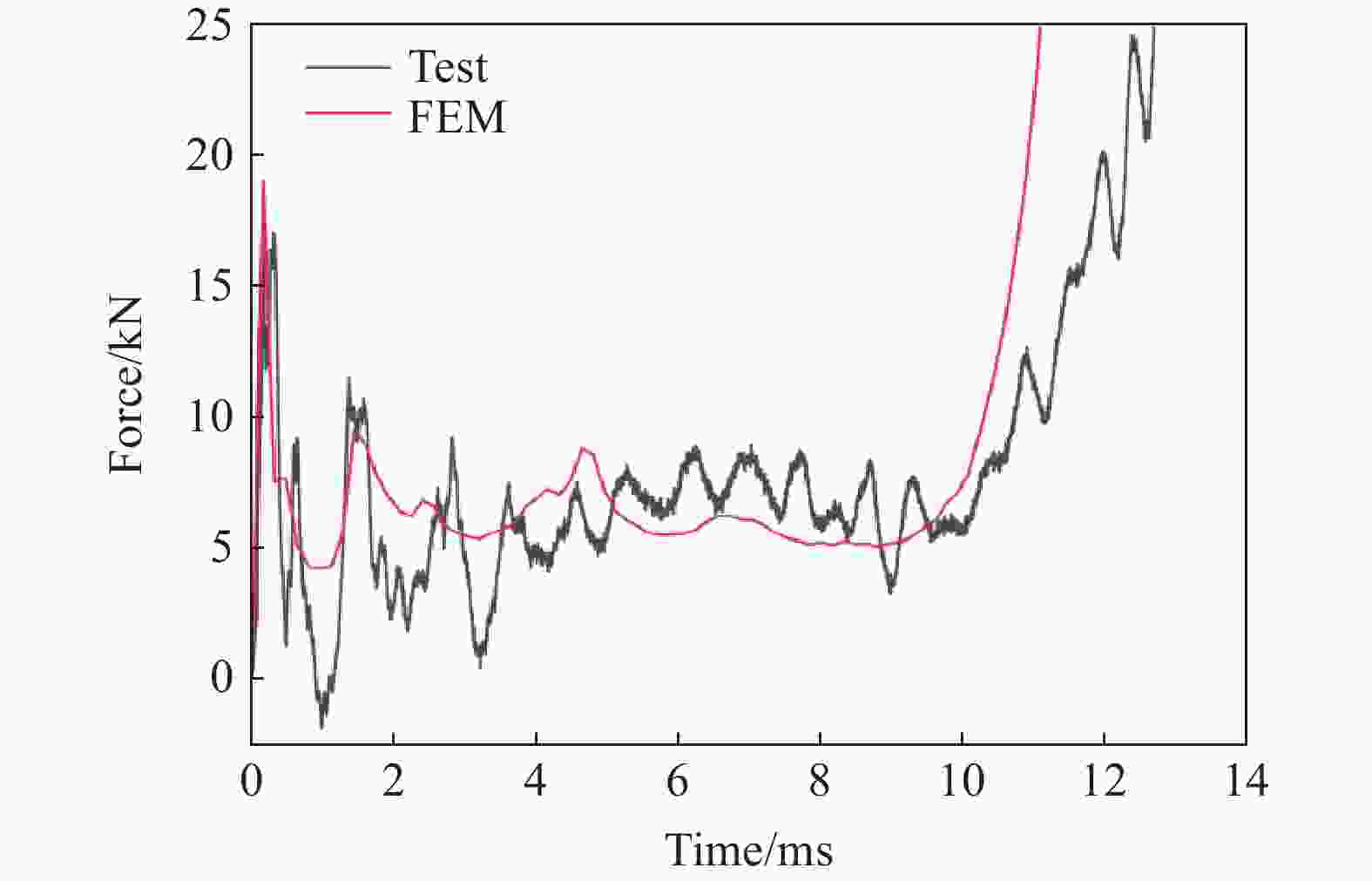Figure  10.  Dynamic response curves of enhanced X-shaped lattice mechanical metamaterial subjected to low-velocity impact (v=7.67 m/s)
