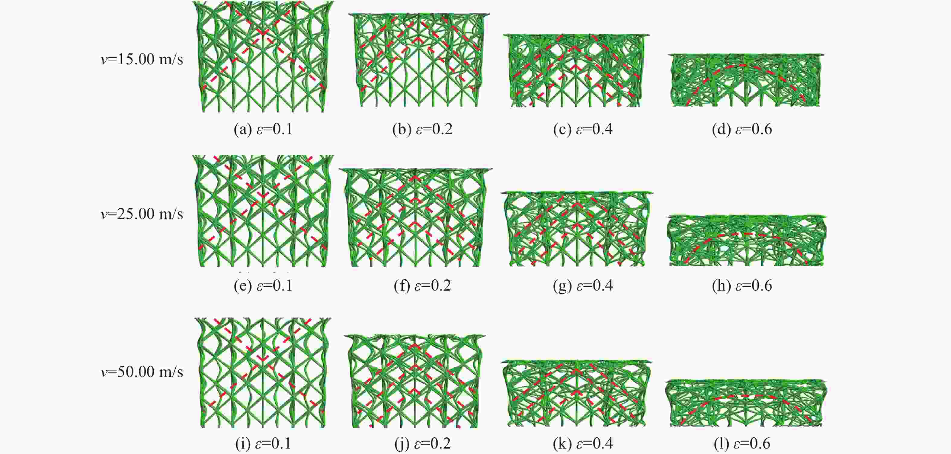 图  15  不同冲击速度下米字形点阵力学超材料的变形模式对比