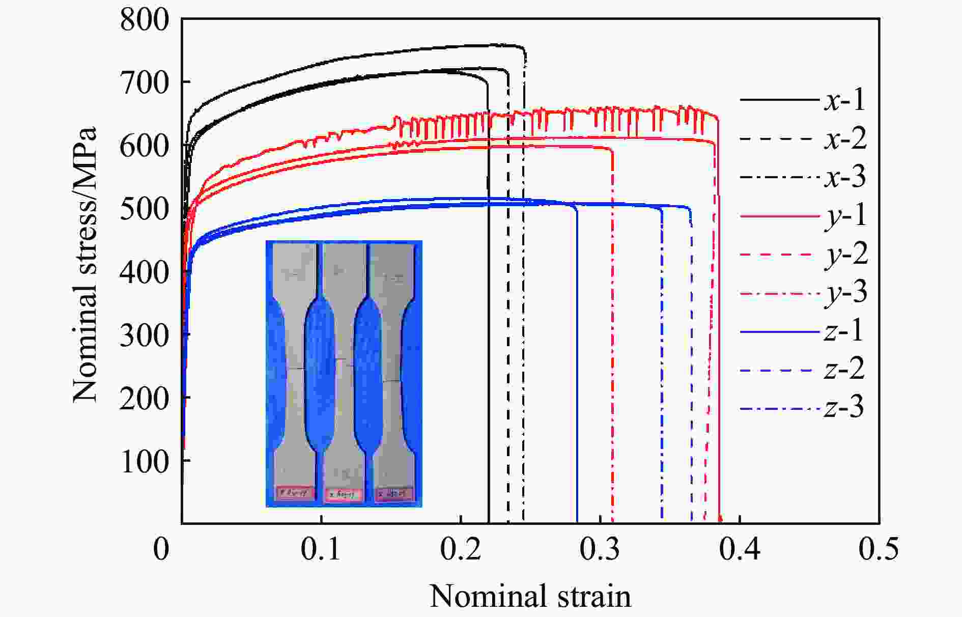 Figure  2.  Nominal stress-strain curves of tensile specimens[21]