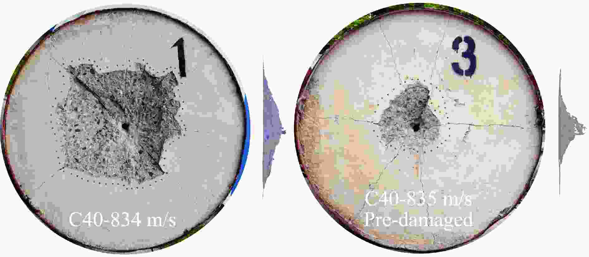 Table 2. Test results of pre-damage concrete penetrated by projectile