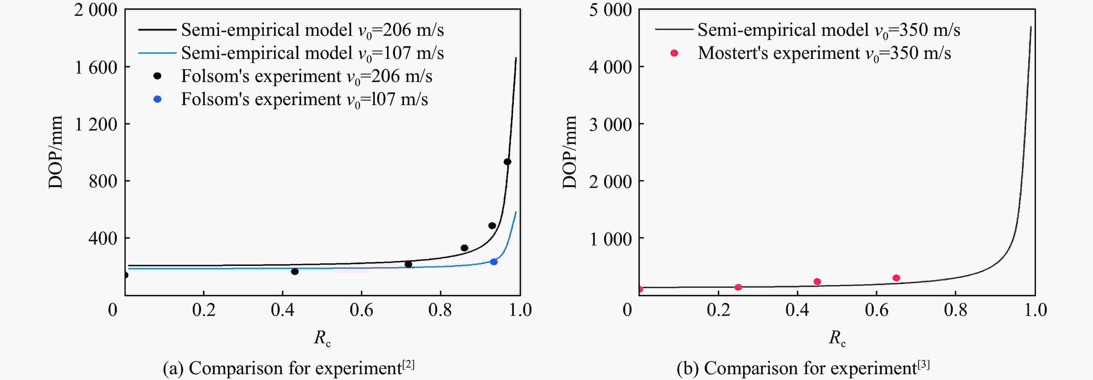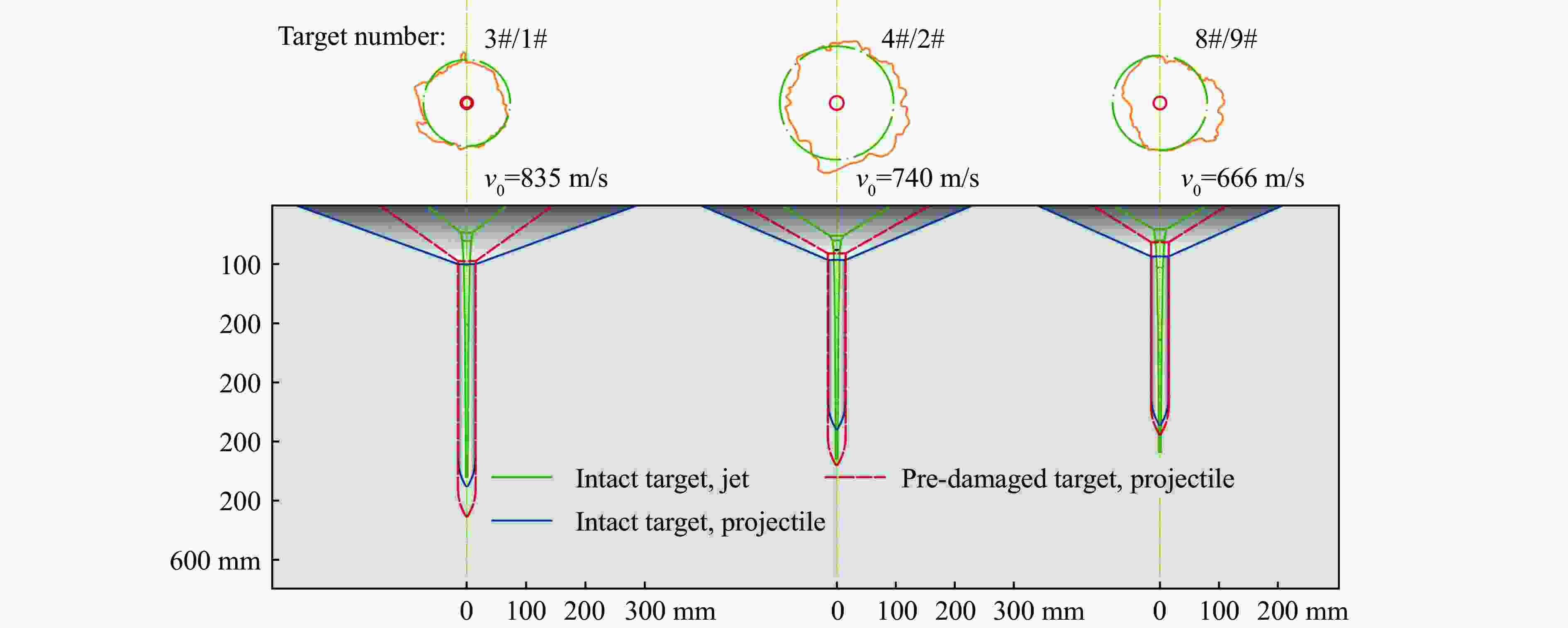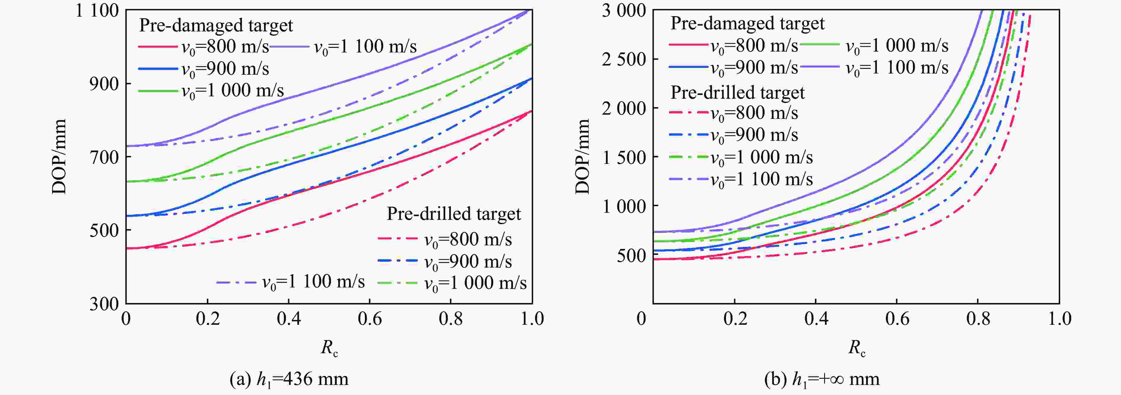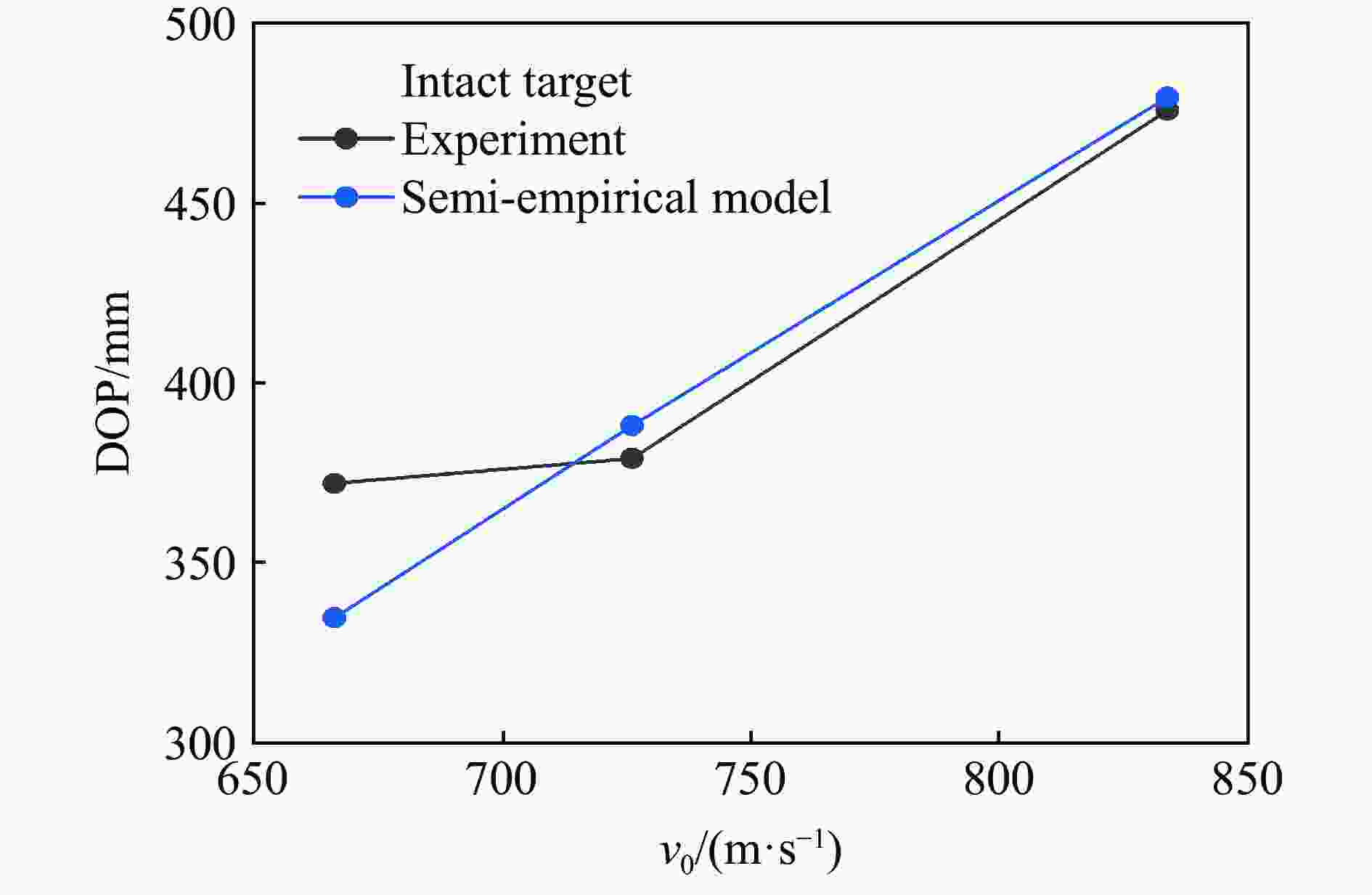 靶体编号 v0/(m·s−1) d/mm h1/mm DOP/mm 开坑容积/L 1# 834 580 100 476 10.56 2# 726 463 93 379 5.11 9# 658 418 87 372 2.42 表 4 混凝土靶体侵彻深度对比