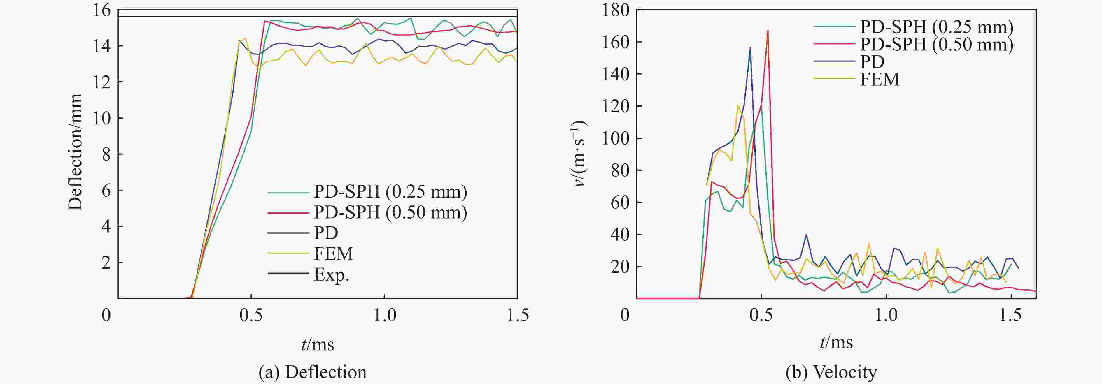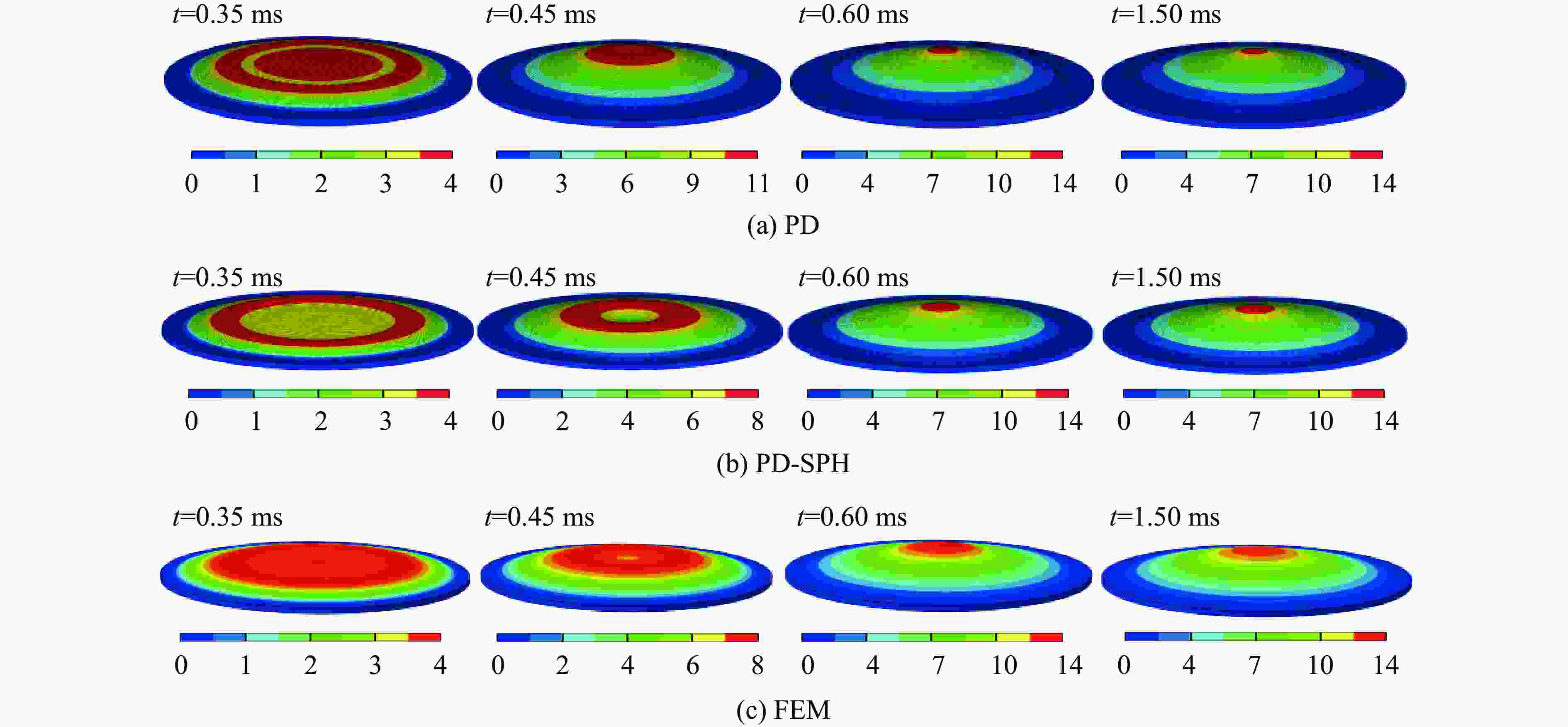 E/GPa ν ρ/(kg·m−3) AJC/MPa BJC/MPa NJC $ {\dot{\varepsilon }}_{\text{0}} $/s−1 73.4 0.33 2800 167 444 0.44 0.00125 CJC Dc Dth T0/K MJC Tm /K D1 0.015 1.0 0.12 293.0 2.31 775 0.013 D2 D3 D4 D5 0.013 −0.5 −0.011 0 表 2 模拟时长0.6 ms的不同CPU/GPU下的计算时间