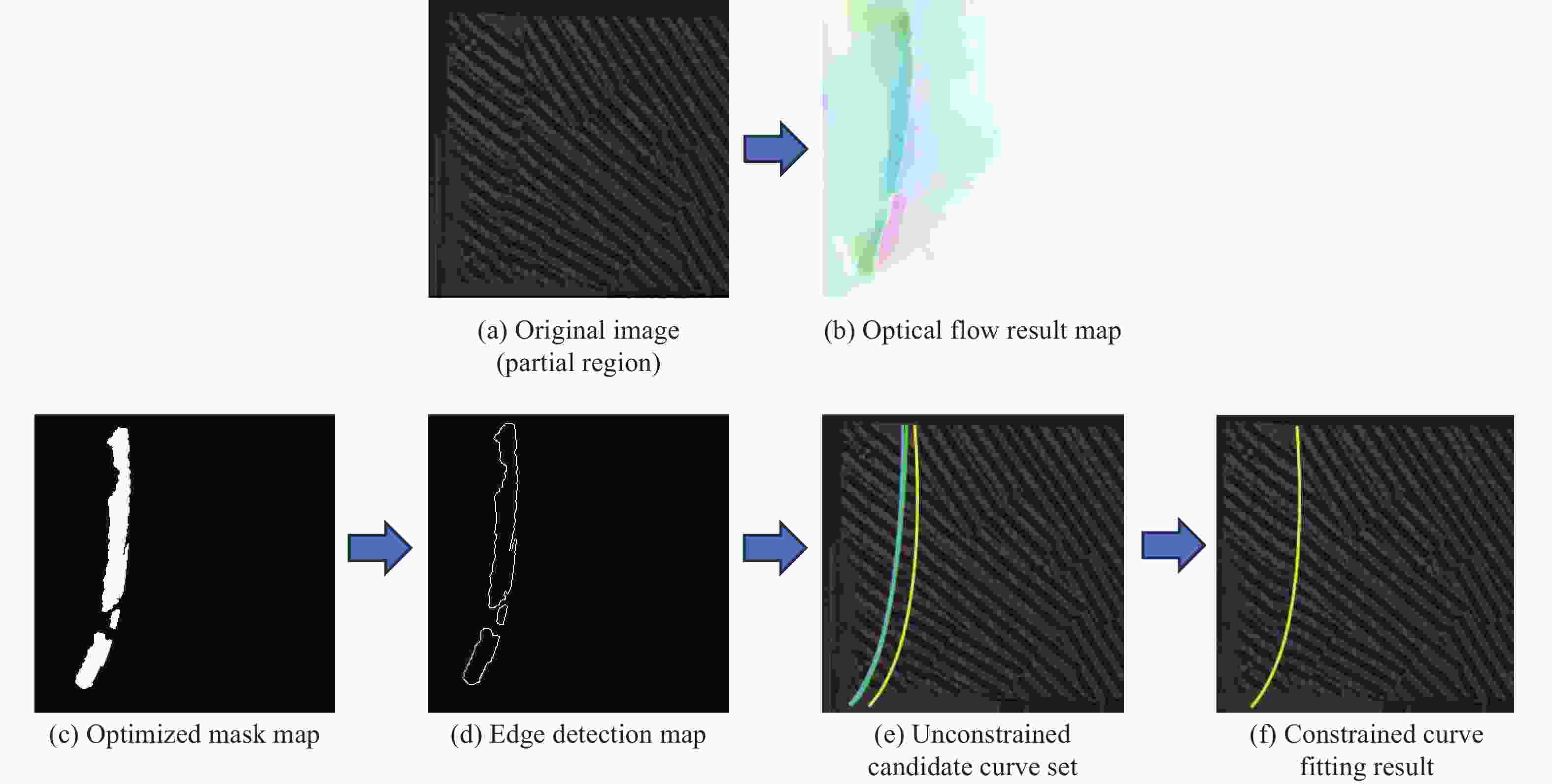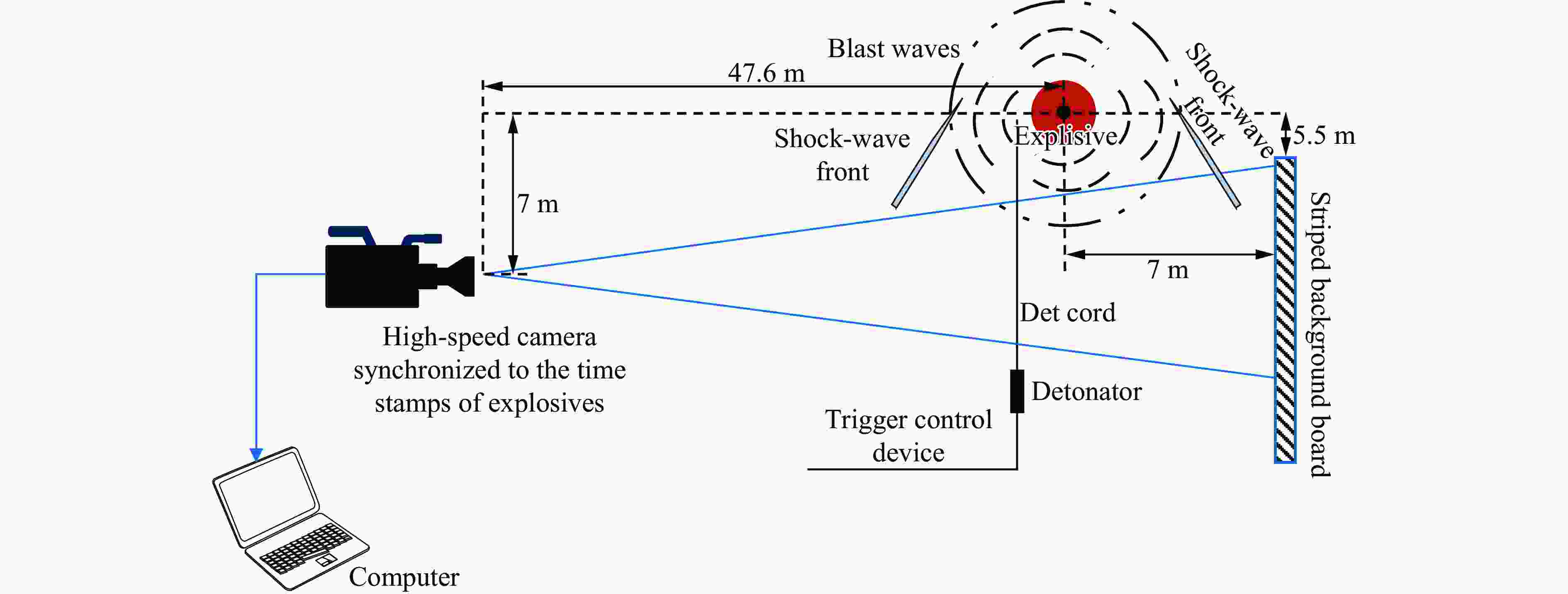 摘要: 背景纹影(background-oriented schlieren,BOS)技术因其非接触与高时空分辨率的优势,已成为爆炸力学外场试验的重要测量手段,但受强光干扰、产物散射及冲击波信号微弱且形态复杂等因素影响,BOS图像中波阵面的自动精确提取十分困难。为此,提出了一种结构感知加权变分光流方法(structure-aware weighted variational optical flow,SAW-VF),用于对冲击波的高速瞬态位移场进行鲁棒量化,其核心是最小化一个针对性构建的能量泛函:首先,在数据保真项中融合一阶光度与二阶Hessian矩阵不变性约束,从而显著增强对冲击波线状局部几何特征的敏感性;其次,引入由归一化互相关(normalized cross-correlation,NCC)驱动的空间自适应加权机制,能够动态抑制严重畸变区域对估计结果的负面影响;然后,采用受佩罗娜-马利克(perona-malik)扩散启发的各向异性正则项,以有效保护冲击波锋锐的运动边界。为了以应对大位移运动,整个优化过程嵌入由粗至精的高斯金字塔框架中。在此基础上,进一步构建了物理模型驱动的波阵面拟合方法,通过最大内点集优化与冲击波动力学约束精确提取波阵面。最终,通过基于几何标定与时间序列估计冲击波半径及传播速度,结合兰金-雨贡纽(rankine-hugoniot)理论实现非接触式超压定量测量。在TNT爆炸试验中,该方法测量结果与压力传感器数据的相对误差为0.93%~9.85%,验证了其在冲击波非侵入式超压测量中的有效性与准确性。Abstract: Background-oriented schlieren (BOS) imaging, owing to its non-contact nature and high spatiotemporal resolution, has become an important measurement technique in field experiments of explosion mechanics. However, due to strong illumination interference, scattering from detonation products, and the inherently weak and morphologically complex shockwave signature, automatic and accurate extraction of the shock front from BOS images remains highly challenging. To address this issue, we propose a structure-aware weighted variational optical flow method (SAW-VF) for robust quantification of the high-speed transient displacement field of shockwaves. The proposed approach minimizes a purpose-designed energy functional. Specifically, the data fidelity term combines a first-order photometric constraint with a second-order Hessian-invariance constraint, substantially enhancing sensitivity to the local line-like geometric features of shock fronts. In addition, a spatially adaptive weighting mechanism driven by normalized cross-correlation (NCC) is introduced to dynamically suppress the adverse influence of severely distorted regions on the estimation. Moreover, an anisotropic regularization term inspired by Perona-Malik diffusion is employed to effectively preserve the sharp motion boundaries of the shock front. To cope with large displacements, the optimization is embedded in a coarse-to-fine Gaussian pyramid framework. Building upon the estimated displacement field, we further develop a physics model–driven shock-front fitting method, in which the shock front is accurately extracted via maximum-inlier-set optimization coupled with shockwave dynamical constraints. Finally, the shock radius and propagation velocity are estimated using geometric calibration and temporal information, and the overpressure is quantitatively determined in a non-contact manner based on the Rankine-Hugoniot theory. In TNT explosion experiments, the proposed method achieves a relative error of 0.93%—9.85% with respect to pressure sensor measurements, demonstrating its effectiveness and accuracy for non-intrusive overpressure measurement of shockwaves.
