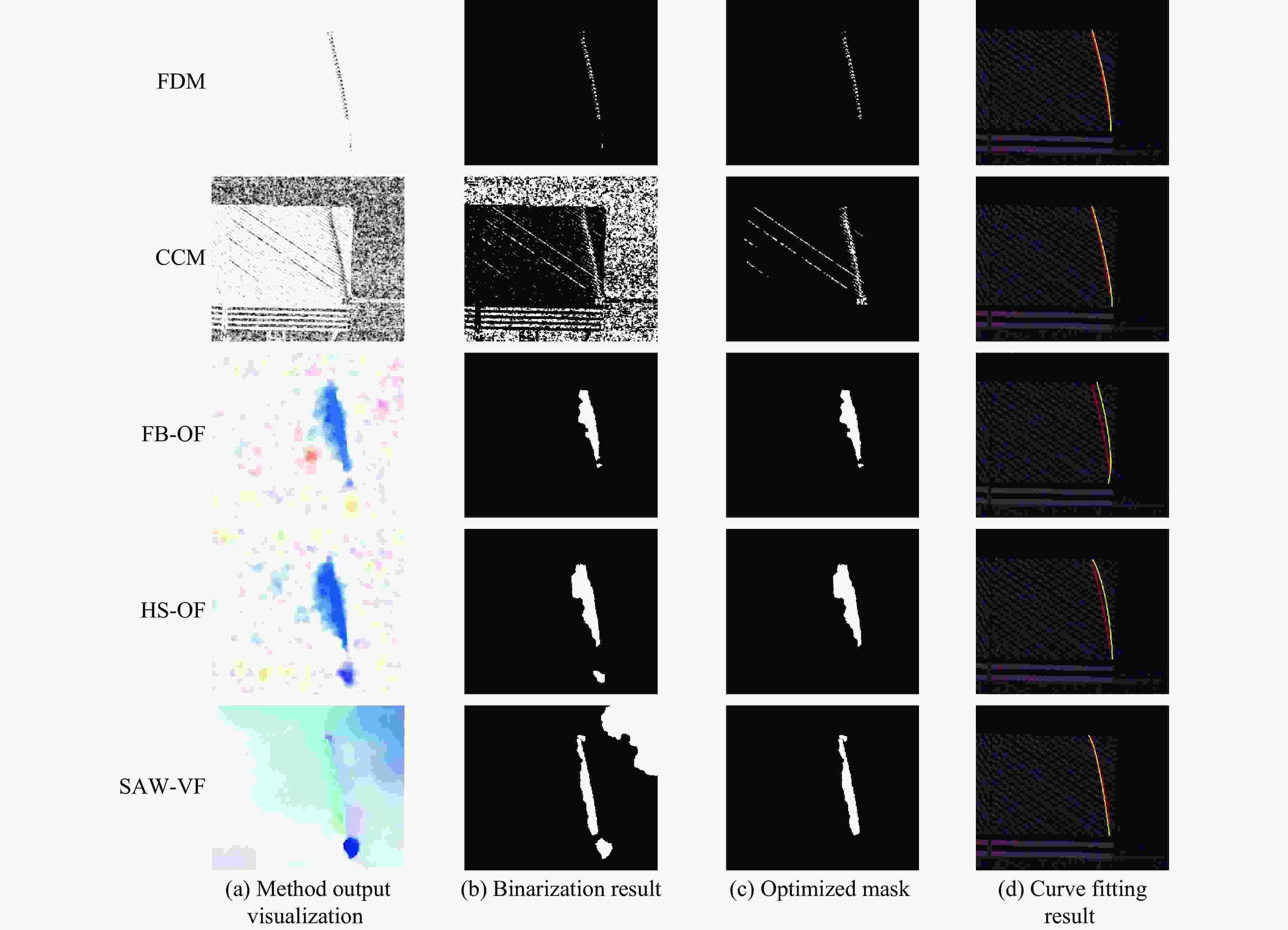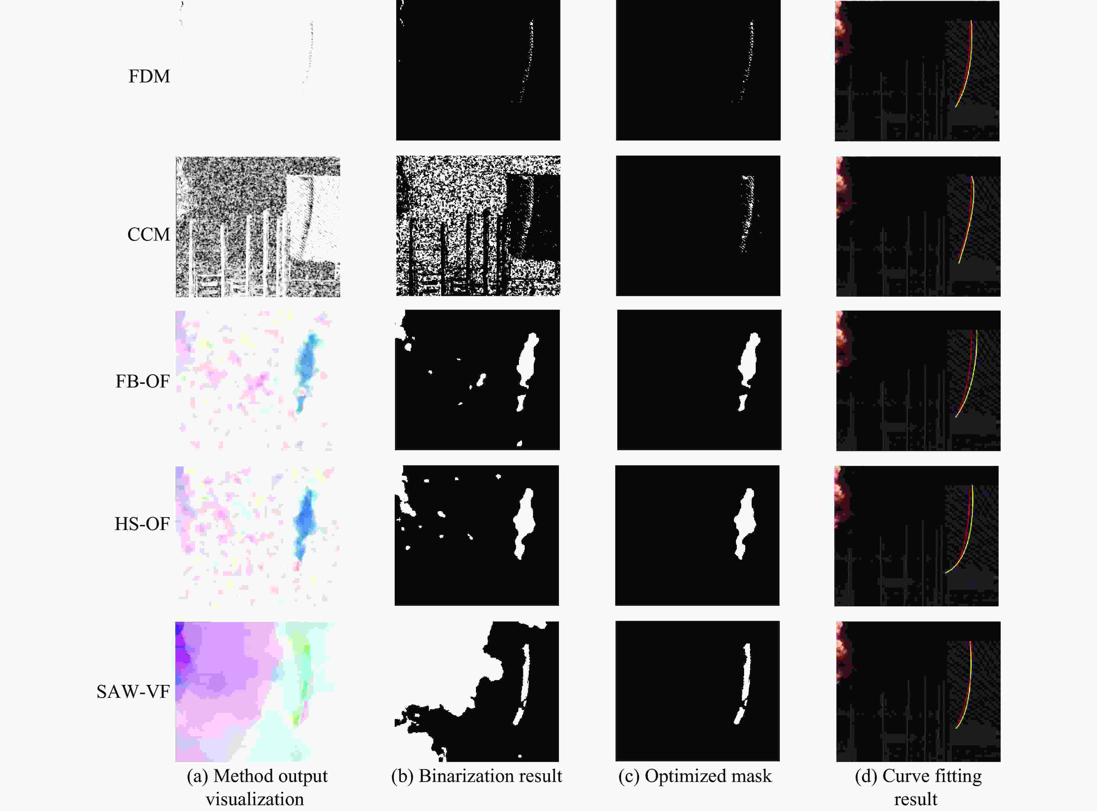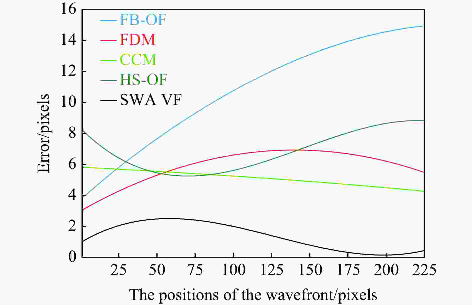 方法 平均绝对误差/pixels 均方误差/pixels FDM 5.8271 35.1475 CCM 4.9899 26.2430 FB-OF 9.3556 104.7900 HS-OF 12.6970 184.1961 SWA-VF 1.5536 4.7066 表 2 不同方法与SWPM-CFA的评价指标对比