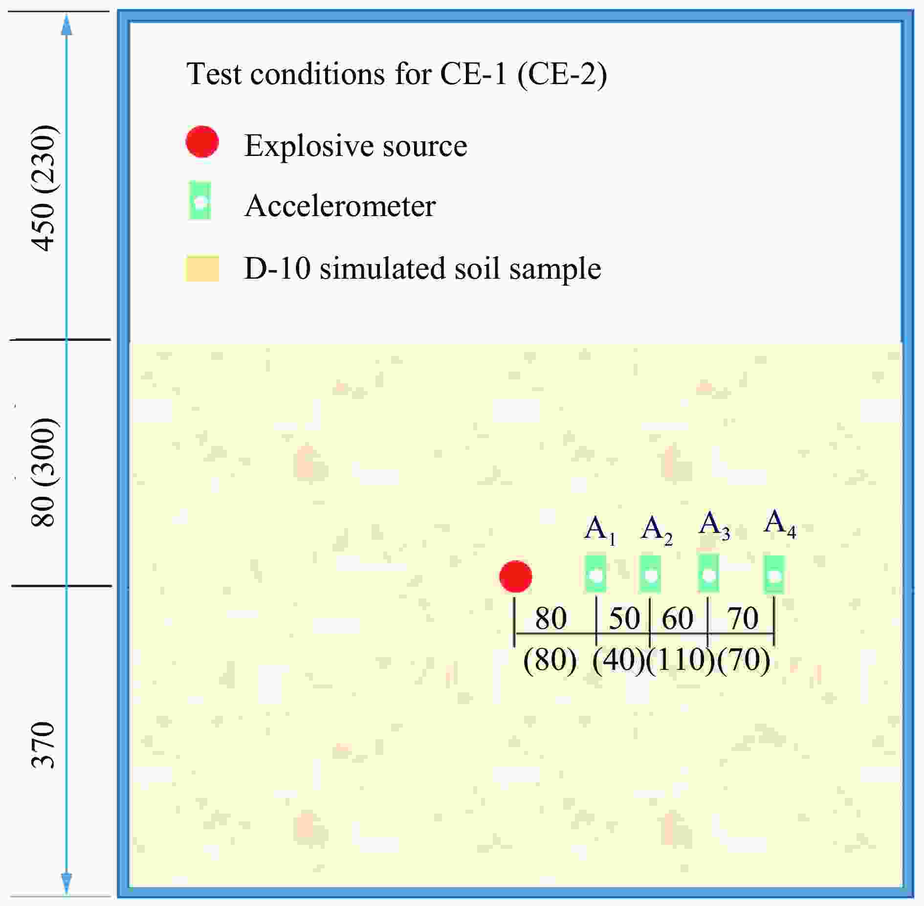 试验 爆源当量/g 爆源埋深/mm 模型高度/mm 加速度 备注 CE-1 1.0 80 450 100g 浅埋 CE-2 1.0 300 670 100g 深埋 -
