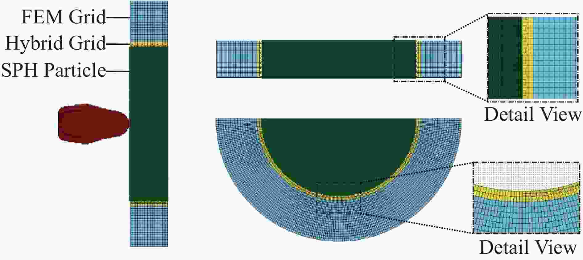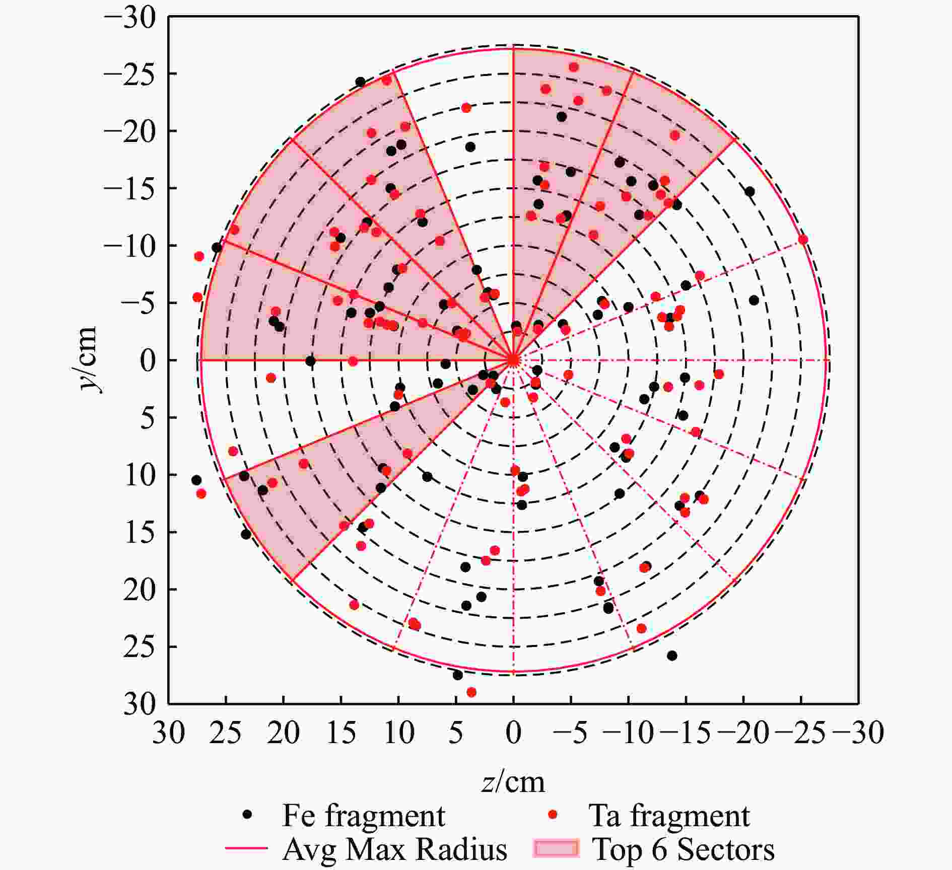 摘要: 为研究钽合金爆炸成型弹丸(explosively-formed projectile,EFP)侵彻靶板产生靶后破片的空间散布,首先开展了钽合金EFP侵彻45钢的X光及破片散布试验;其次,采用经试验验证的FE-SPH(finite element-smoothed particle hydrodynamics)固定耦合方法开展了多种弹、靶条件下EFP垂直侵彻靶板的数值模拟,获得了靶后破片空间散布的数据集;最后,采用基于贝叶斯优化的支持向量回归对靶后破片密集飞散角数据进行训练,得到了基于贝叶斯优化的支持向量回归模型。研究结果表明:从试验结果来看,靶后破片云形貌为典型的截椭球状,由于钽、钢密度差异导致不同材料破片径向膨胀能力不同,钢破片分布在椭球的外表面而钽破片分布在椭球的内表面,靶后破片主要集中在验证靶上中心穿孔处周围的圆形区域;采用FE-SPH固定耦合方法模拟再现了靶后破片的形成过程,得到的靶后破片云形貌与试验结果十分接近,靶后破片平均最大飞散角与试验结果相对误差不超过10%,验证了数值模拟结果的准确性;建立的基于贝叶斯优化的支持向量回归模型能够实现对不同靶板厚度、着靶速度条件下靶后破片的密集飞散角的准确预测,数值模拟结果与模型预测结果最大相对误差均小于10%,在此基础上可以实现对靶后一定距离内验证靶毁伤面积的快速预测。Abstract: To investigate the spatial dispersion characteristics of behind-armor debris (BAD) generated by the penetration of tantalum alloy explosively-formed projectile (EFP) into steel targets, a comprehensive study combining experimental testing, numerical simulation, and machine learning prediction was performed. First, X-ray imaging and fragment-distribution experiments were conducted on 45 steel targets penetrated by tantalum alloy EFP to obtain initial experimental data. Subsequently, the finite element-smoothed particle hydrodynamics (FE-SPH) fixed-coupling method, which had been validated by the experimental data, was employed to simulate the perforation process. These numerical simulations were carried out under a wide range of working conditions, specifically varying the projectile velocity and target thickness. Through this process, a comprehensive dataset describing the spatial dispersion of BAD was generated. Finally, to achieve rapid prediction capabilities, a support vector regression (SVR) model was established. The Bayesian optimization algorithm was utilized to train the model using the dense-fragment dispersion angle data extracted from the simulation dataset, thereby creating a robust predictive model for spatial dispersion of BAD. The experimental results indicate that the morphology of the BAD cloud exhibits a typical truncated-ellipsoidal shape. Due to the density difference between tantalum and steel, fragments composed of different materials display distinct radial expansion behaviors, i.e. steel fragments are distributed along the outer surface of the ellipsoid whereas tantalum fragments are concentrated on the inner surface. Spatially, the debris is primarily concentrated within a circular region surrounding the central perforation area of the witness plate. The FE-SPH fixed-coupling method successfully reproduced the BAD formation process, yielding debris-cloud morphologies that closely match the experimental results. The relative error between the simulated and measured mean maximum fragment dispersion angles is less than 10%, thereby confirming the accuracy of the numerical simulations. Furthermore, the analysis reveals that the Bayesian-optimized SVR model enables accurate prediction of dense-fragment dispersion angles under varying target thicknesses and EFP impact velocities, with maximum relative errors below 10%. Based on these predictions, the damage area on witness plates within a certain distance behind the target can be rapidly estimated.
