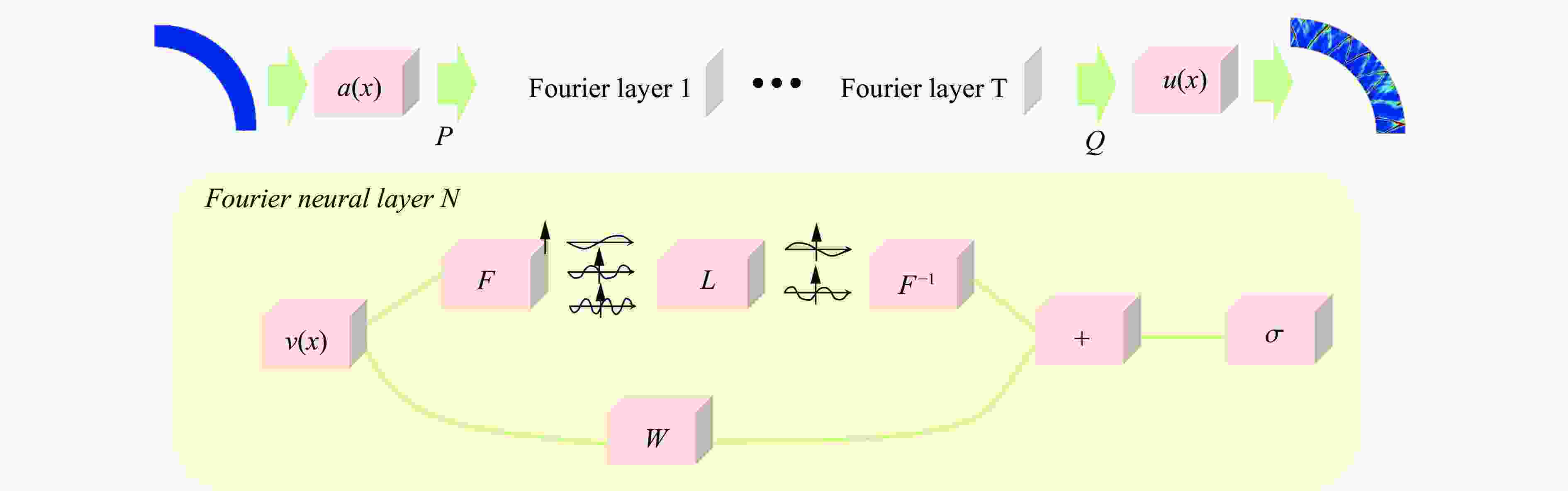 层编号 方程 卷积核 步长 填充 输出形状 输入 2×100×863×15 1 Fc0 1 1 38 2×100×863×38 2 Permute 2×38×100×863 3 Fourier layer 1 2×38×100×863 4 Fourier layer 2 2×38×100×863 5 Fourier layer 3 2×38×100×863 6 Fourier layer 4 2×38×100×863 7 Conv3d 1 1 0 2×38×100×863 ReLU 8 Conv3d 1 1 0 2×38×100×863 ReLU 9 Conv3d 1 1 0 2×38×100×863 ReLU 10 Permute 2×100×863×38 11 Fc1 2×100×863×8 12 GELU 2×100×863×8 13 Fc2 2×100×863×1 14 View 2×100×863×1 -