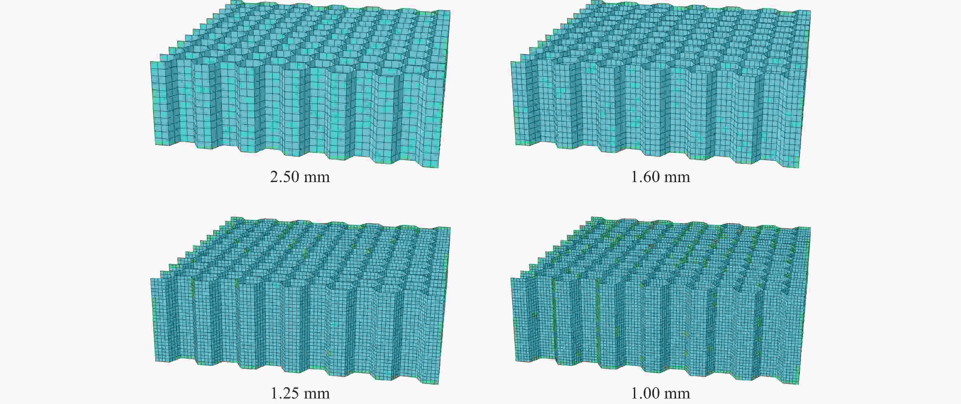MPa蜂窝面纸 695 2.525 0.30 20.3 蜂窝芯纸(0.001 s−1) 520 0.800 0.32 7.3 蜂窝芯纸(50 s−1) 520 0.800 0.32 21.4 钢板 7 890 210.000 0.31 220.0 表 5 模拟与试验的结果对比