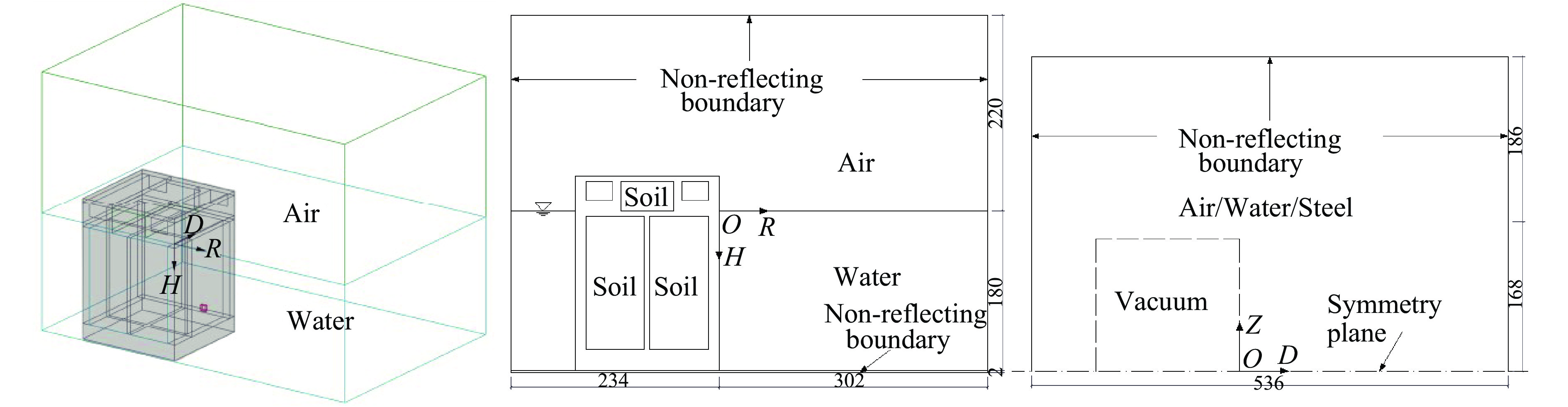 为探究水下接触和近场爆炸下沉箱码头的毁伤机理和荷载特性,基于沉箱码头缩尺模型试验,采用有限元数值模拟开展对比研究,分析了沉箱码头内冲击波荷载的传播、衰减规律以及沉箱码头的破坏过程和毁伤机理。研究结果表明:水下接触和近场爆炸下,沉箱码头的毁伤区域和破坏特征基本一致,码头迎爆外墙和面板为主要破坏区域,迎爆外墙呈爆坑、破口的破坏现象,面板呈现管沟连接处横向通长裂缝、纵向裂缝并掀飞的破坏现象,沉箱码头侧墙和仓格内纵横隔墙毁伤相对轻微。水下接触和近场爆炸下,沉箱码头内冲击波在仓格的隔墙和填砂界面发生反射和透射现象,码头迎爆外墙、侧墙、板均受到冲击载荷,冲击波荷载在沉箱内的衰减速度由陡至缓,沉箱码头的毁伤特征在水下爆炸冲击波阶段基本形成,毁伤形成时间略大于2倍的冲击波在沉箱码头内的传播时长。