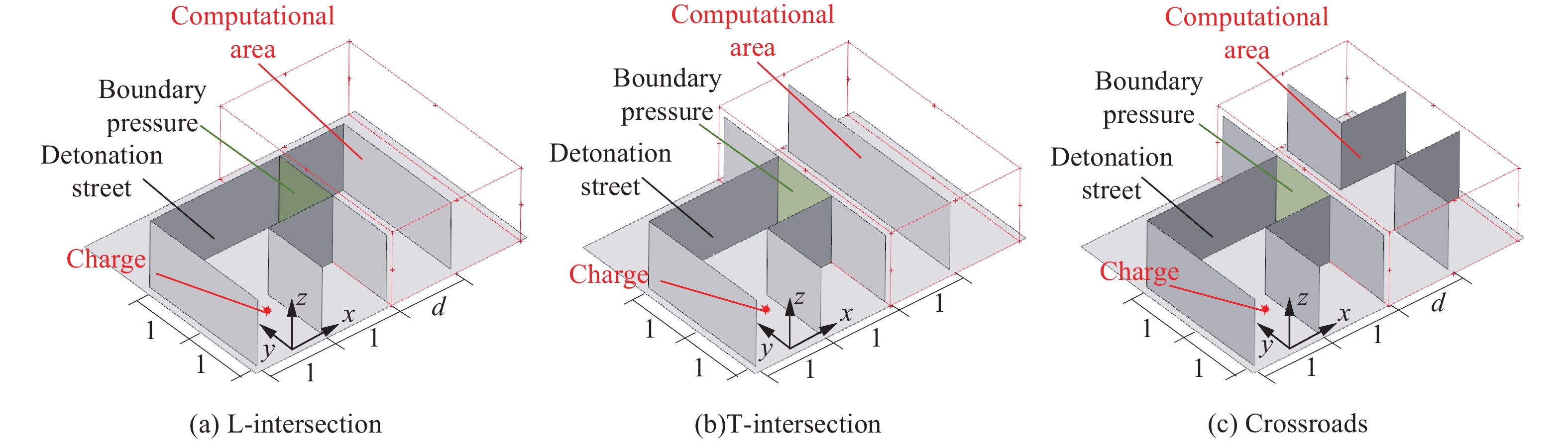 为研究温压炸药在密闭空间内爆炸时冲击波与温度的耦合增强效应,以100~400 g温压炸药为研究对象,在密闭建筑空间内开展爆炸试验研究,利用压力传感器和热电偶获得了密闭空间内不同位置处的爆炸压力和温度数据,揭示了温压炸药爆炸产生的冲击波与温度场演变特征及传播规律。结果表明:温压炸药内爆炸产生的温度场具有显著的二次升温和长持时特征;建立了基于比例爆距的初始温度峰值衰减模型。温压炸药内爆炸冲击波超压峰值的TNT等效当量系数随比例爆距的增大呈下凹双曲线变化趋势,在比例爆距为1.7 m/kg1/3时,冲击波超压的TNT等效当量系数达到最小值1.43,该位置是有氧后燃反应能量对冲击波超压峰值产生显著作用的转折点。建立了冲击波超压峰值的两阶段预测模型,分别描述了非理想爆轰与铝粉有氧后燃效应在不同区域对冲击波超压的贡献。基于爆炸产物膨胀和后燃升温引起的压力上升,建立了温压炸药内爆炸准静态压力预测模型,以100 g装药的准静态压力为基准,200、300、400 g装药质量下的准静态压力分别增至基准值的2.27、3.21、4.18倍,准静态压力在爆轰产物和后燃升温的耦合作用下呈非线性增长。