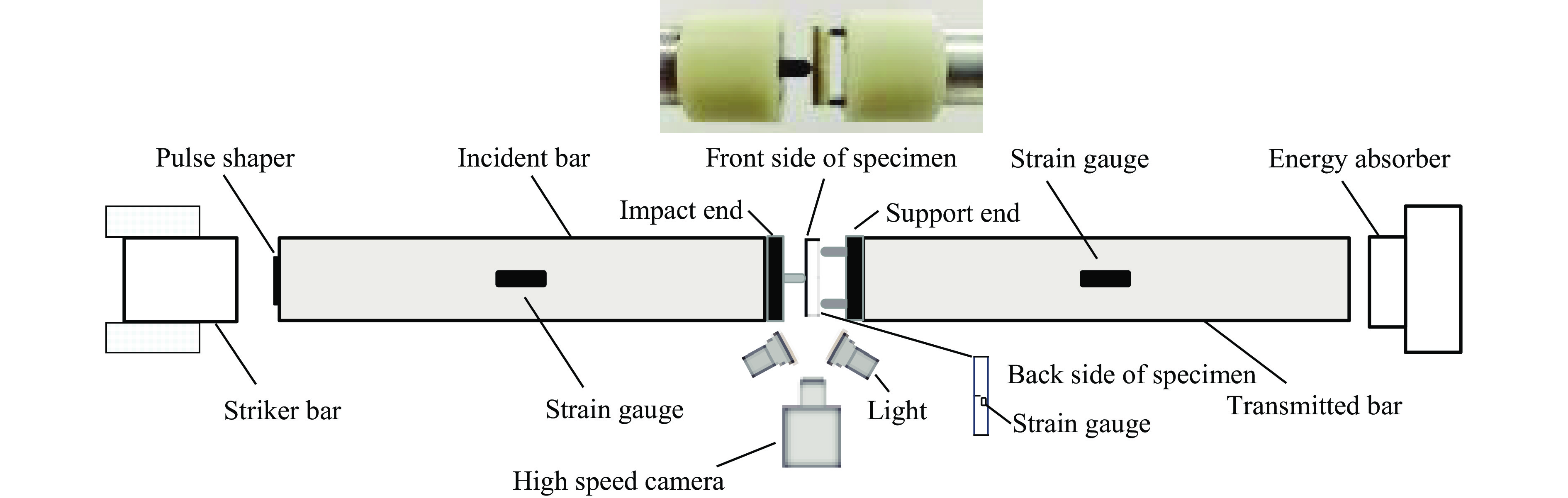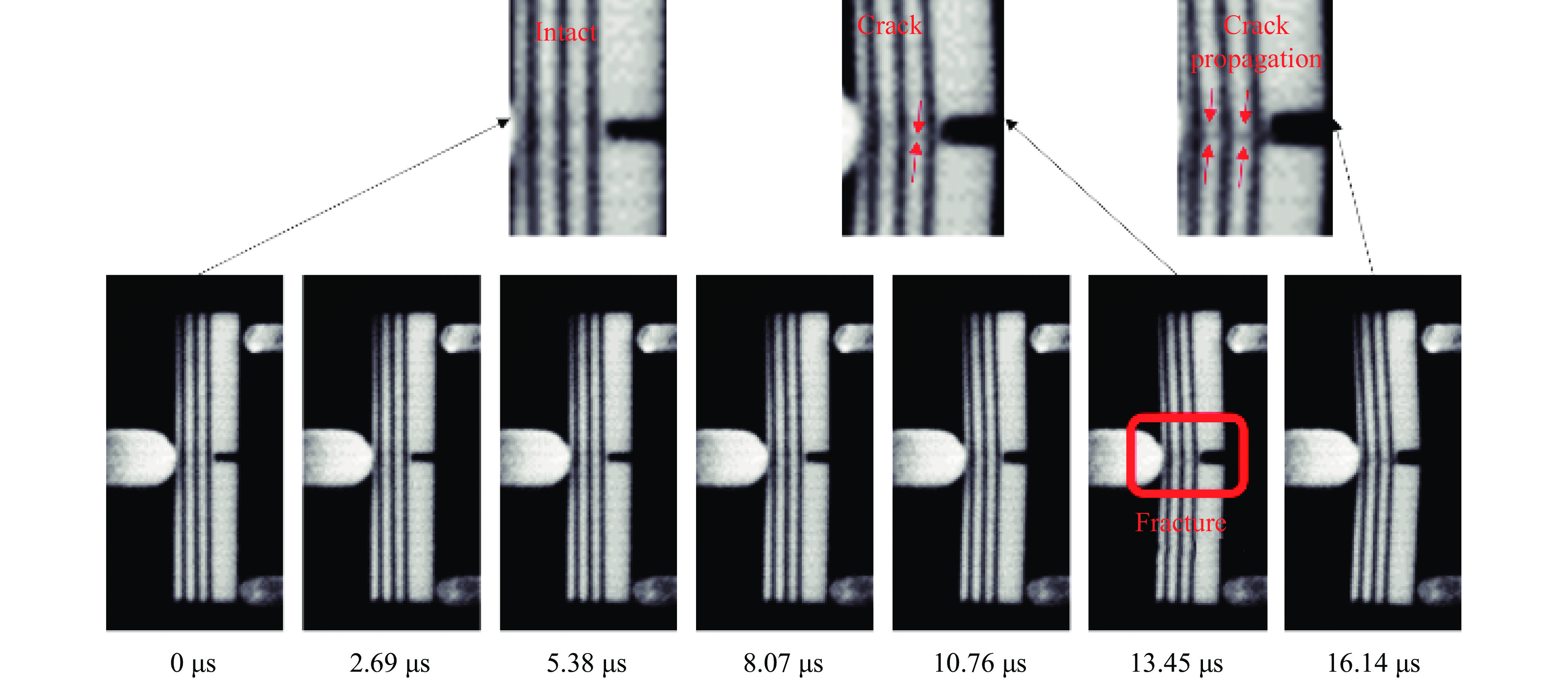 To address the longstanding challenge of accurately evaluating the dynamic fracture toughness of ceramic materials, a new mode I dynamic fracture testing method was developed based on the conventional split-Hopkinson pressure bar (SHPB) technique. This approach introduced a miniature fracture specimen specifically designed to ensure pure mode I loading, along with a custom fixture system that enabled stable and repeatable dynamic fracture experiments on alumina ceramics with varying loading rates. The combined experimental-numerical method was used to obtain the variation of the mode I dynamic stress intensity factor at the crack tip under different loading rates. Fracture initiation time was obtained with high precision using the strain gauge method, allowing for the determination of mode I dynamic fracture toughness. To further validate the accuracy of the measured fracture initiation time, high-speed photography was employed to capture the entire failure process in real time and corroborate the onset of fracture of the tested specimens. The results show that as the applied loading rate increases from 0.45 TPa·m1/2·s−1 to 1.83 TPa·m1/2·s−1, the dynamic fracture toughness of alumina ceramics rises significantly from 8.39 MPa·m1/2 to 15.76 MPa·m1/2, indicating a pronounced strengthening effect induced by higher loading rates. Meanwhile, the crack initiation time decreases notably with increasing loading rate. Fractographic analysis using scanning electron microscopy reveals a clear fracture mode transition behavior. Under lower loading rates, the fracture of alumina ceramics predominantly exhibits intergranular fracture features. Under higher loading rates, the fracture shows a mixed-mode fracture involving both intergranular and transgranular features. This transition is attributed to the activation and propagation of more micro-defects under higher rates, resulting in increased microcracking. The emergence of this mixed fracture mode is associated with greater energy dissipation, which fundamentally contributes to the increase in mode I dynamic fracture toughness. The proposed method offers a robust framework for accurately assessing the mode I dynamic fracture properties of ceramic materials.