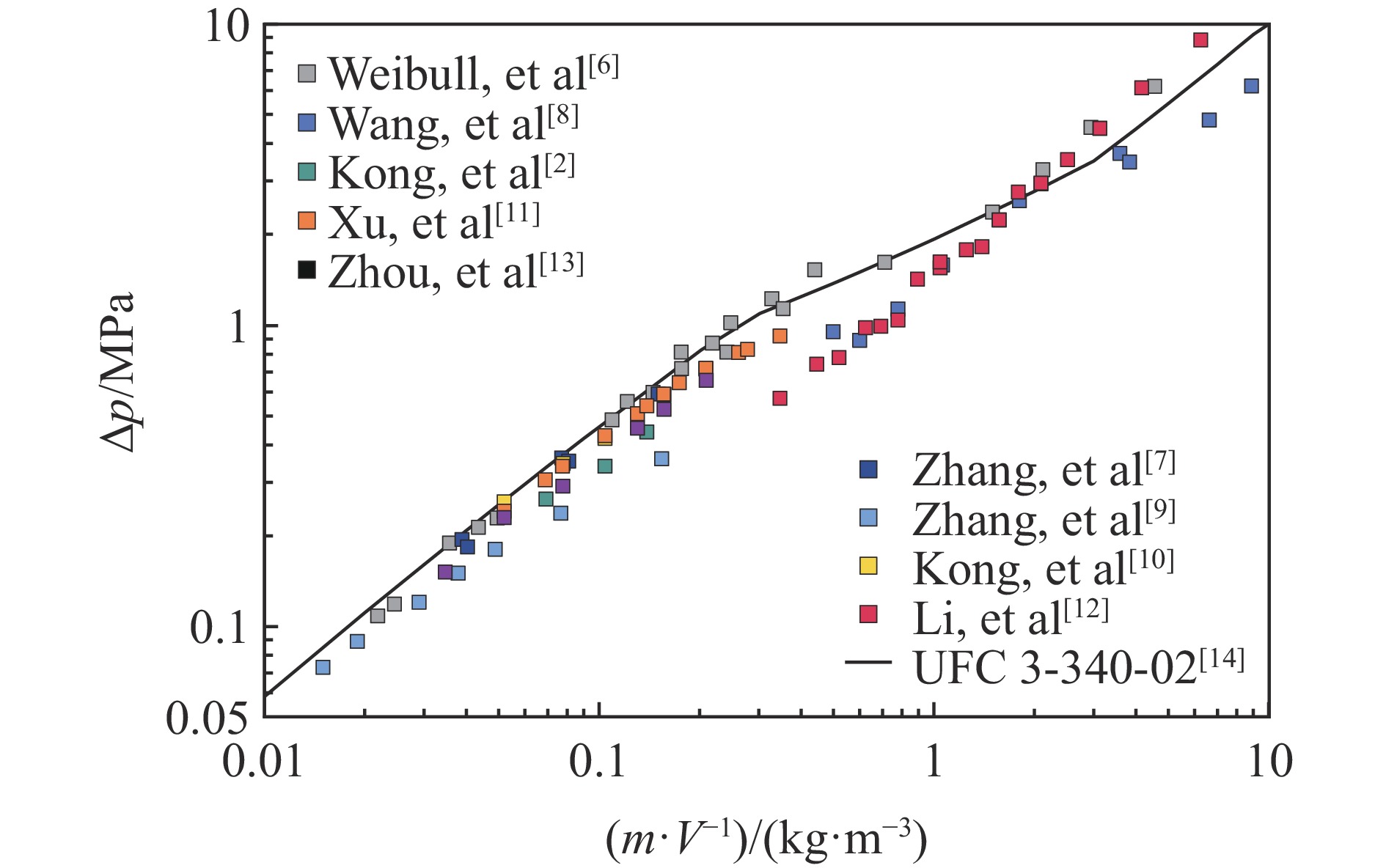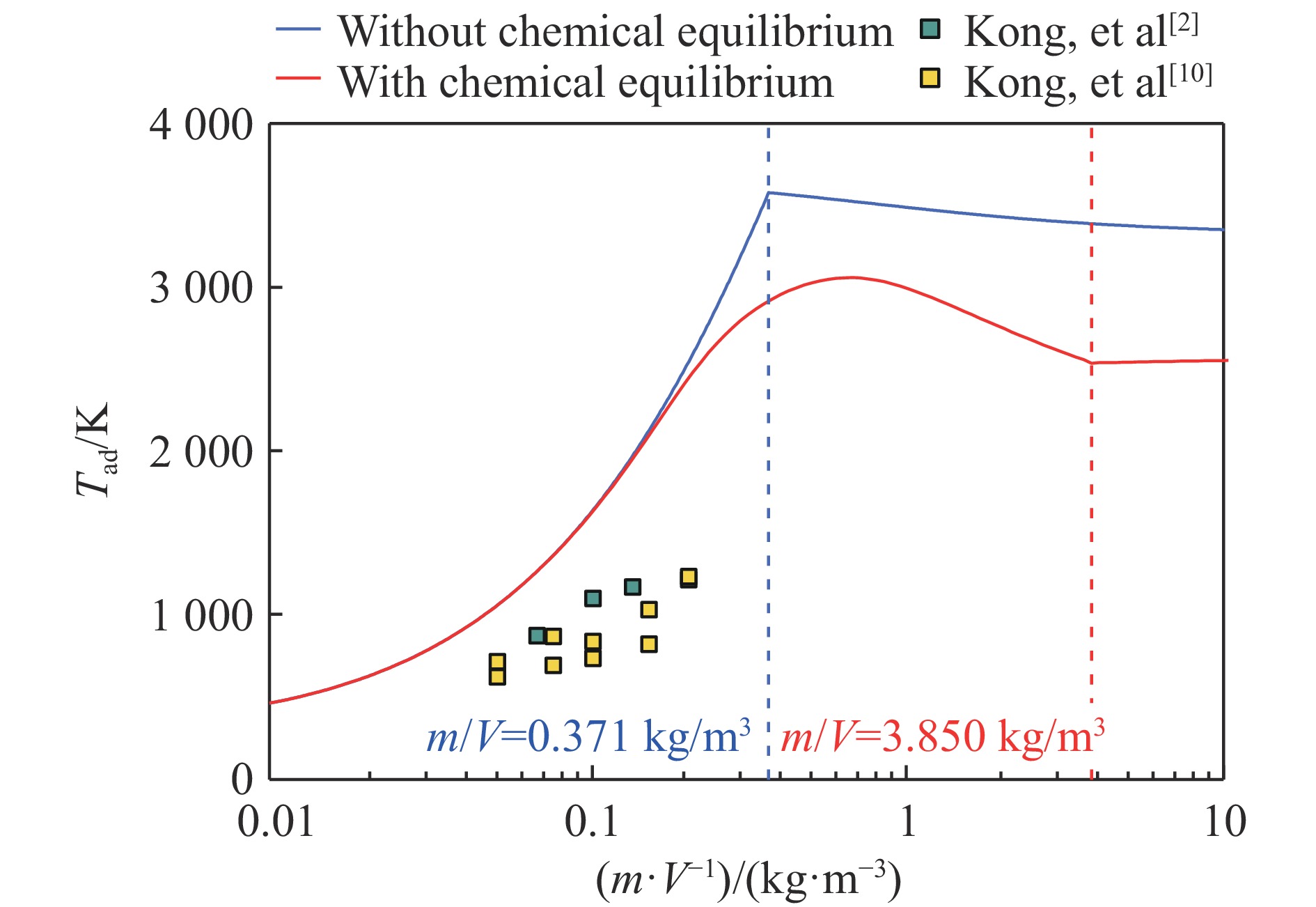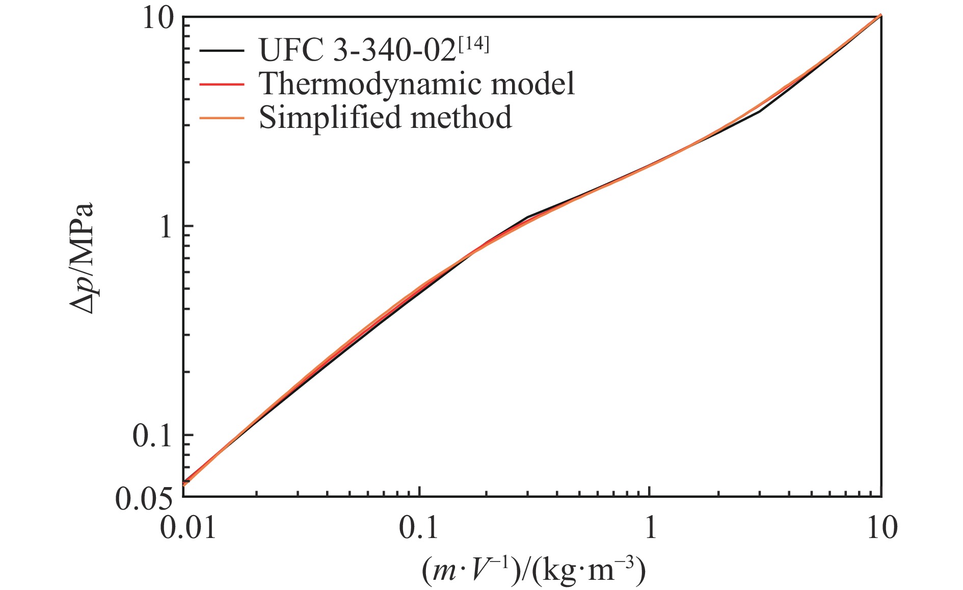 The quasi-static pressure thermodynamic model for confined explosions provides an effective characterization of pressure evolution with mass-to-volume ratio m/V, and derivation of physical quantities such as gas adiabatic index from products and temperature. However, the thermodynamic model based on detonation and combustion equations that neglects reaction equilibrium demonstrates growing deviations from the quasi-static pressure curve in UFC 3-340-02 blast-resistant design standard after carbon precipitates in detonation products, and existing research inadequately addresses the necessity of incorporating reaction equilibrium for various physical quantities in TNT confined explosion thermodynamic models. In order to investigate the influence of reaction equilibrium on thermodynamic calculation results, the model neglecting reaction equilibrium was modified based on the energy conservation equation of isochoric processes and the solid carbon precipitation phenomenon. The modified model has a consistency with the UFC curve for m/V≥0.371 kg/m3. Then, a comparative analysis was conducted on the results of thermodynamic models considering and not considering the reaction equilibrium based on the unified solution framework. The results indicate that incorporating chemical equilibrium into quasi-static pressure calculation introduces a maximum relative deviation below 20%, and critical thresholds alters, i.e., the m/V for carbon precipitation shifts from 0.371 to 3.850 kg/m3, and peak temperature transitions from 0.371 to 0.680 kg/m3. Significant divergence in mole numbers of product composition emerges progressively when m/V exceeds 0.1 kg/m3. Therefore, the reaction equilibrium-based thermodynamic model is a more rational choice for calculating quantities related to components and temperature in TNT confined explosions with m/V>0.1 kg/m3. Finally, a simplified calculation method for products, temperature, and pressure during the quasi-static phase of TNT confined explosions considering reaction equilibrium is proposed based on symbolic regression algorithm. The research contributes to a theoretical understanding of equilibrium effects on thermodynamic model results and the practical implementation of rapid parameter estimation in TNT confined explosion scenarios.