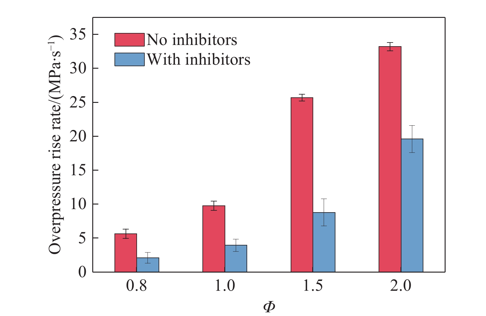 Hydrogen is a renewable, carbon-free energy carrier and an important chemical feedstock. However, its high burning velocity and low ignition energy render it more hazardous than conventional fuels. To effectively control the explosion intensity of hydrogen-air mixtures in confined spaces and elucidate the suppression mechanism of micron-sized water mist containing dimethyl methylphosphonate (O=P(CH3)(OCH3)2), a rectangular constant-volume combustion chamber was first constructed, and a schlieren optical system was employed to capture fine flame structures under the addition of the suppressant. Secondly, based on the kinetic models proposed by Jayaweera et al. and Jing et al., a coupled chemical kinetic mechanism for O=P(CH3)(OCH3)2 was developed and validated for accuracy. Lastly, the influence of O=P(CH3)(OCH3)2-containing fine water mist on flame instability structures, mean flame speed, explosion overpressure, and mean pressure rise rate was then investigated under different equivalence ratios, together with the chemical kinetic mechanism and pathways governing hydrogen-air deflagration suppression. Results indicate that water mist containing O=P(CH3)(OCH3)2 promotes the formation of cellular structures on the flame front, thereby inducing flame instability. At equivalence ratios of 0.8, 1.0, and 1.5, the O=P(CH3)(OCH3)2-laden water mist effectively reduces the average flame speed (with reductions ranging from 24.2% to 47.2%) and suppresses the formation of tulip flames, which are replaced by wrinkled flame structures. The mist suppresses the pressure rise rate by reducing the laminar flame speed, but simultaneously enhances flame instability, which tends to increase the pressure rise rate. The overall suppression performance (with pressure reduction ranging from 41.0% to 65.8%) results from the coupling of these two opposing effects. Additionally, the O=P(CH3)(OCH3)2-laden mist achieves effective explosion suppression by reducing the concentrations of H∙, O∙, and OH∙ radicals, with reductions exceeding 80%. The physical suppression arises from pre-flame cooling and dilution effects of the water mist, while the chemical suppression is attributed to the decomposition of O=P(CH3)(OCH3)2 into phosphorus-containing radicals such as HOPO∙, HOPO2∙, HPO2∙, PO(OH)2∙, and PO(H)(OH)∙. These species scavenge reactive H∙ and OH∙ radicals, promoting the formation of stable products like H2 and H2O, thereby interrupting the chain reactions in hydrogen-air explosions.