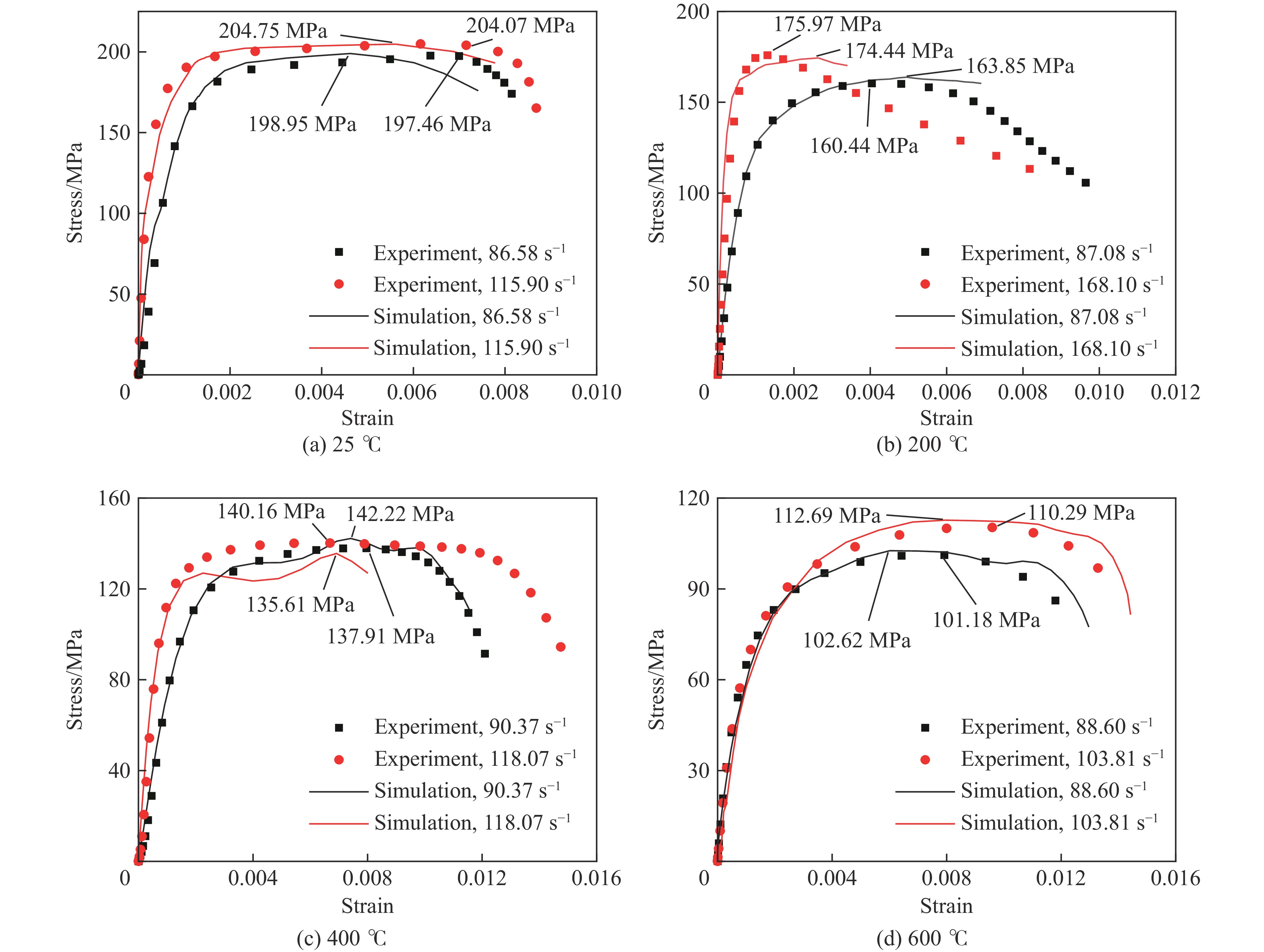 In order to investigate the dynamic mechanical properties of ultra-high performance concrete (UHPC) under coupled high-temperature and explosive impact effects, a 75 mm-diameter high-temperature split Hopkinson pressure bar (SHPB) apparatus was employed. Uniaxial compression tests were conducted on C140 UHPC specimens in the temperatures ranging from 25 ℃ to 600 ℃ and the strain rate ranging from 90 s−1 to 200 s−1. A systematic analysis was performed on the strength, strain, toughness, stress-strain relationship, and failure modes of the material under the combined condition of high temperature and impact loading. The influence of temperature and strain rate on the dynamic mechanical properties was revealed, and the yield surface of the Holmquist-Johnson-Cook (HJC) constitutive model was modified by incorporating thermal effects. The results indicate that UHPC exhibits a significant strain rate strengthening effect under high-temperature dynamic compression, while elevated temperatures simultaneously degrade its mechanical properties. The evolution of material strain capacity and toughness stems from the synergistic interaction between thermal and strain rate effects. At identical temperatures, increased strain rates exacerbate the damage of UHPC. When temperatures exceed 400 ℃, matrix degradation and steel fiber oxidation cause the material to exhibit overall brittle failure characteristics; however, its local core region remains integrity and retains notable residual load-bearing capacity. The modified HJC yield surface is suitable for describing the dynamic mechanical behavior of this material under coupled high-temperature and impact conditions. These findings provide theoretical foundations and data support for the safety design and evaluation of military and civil protective engineering.