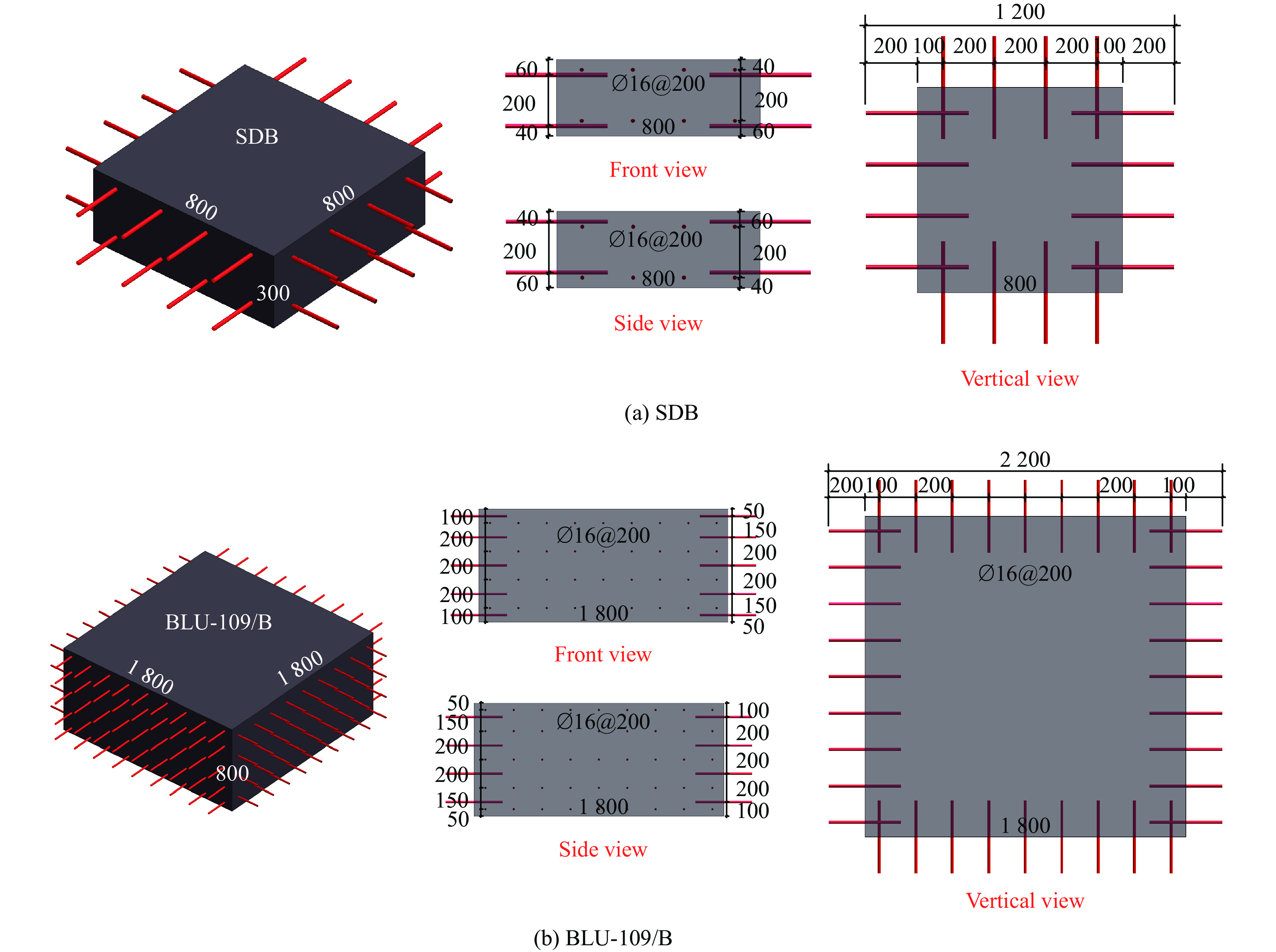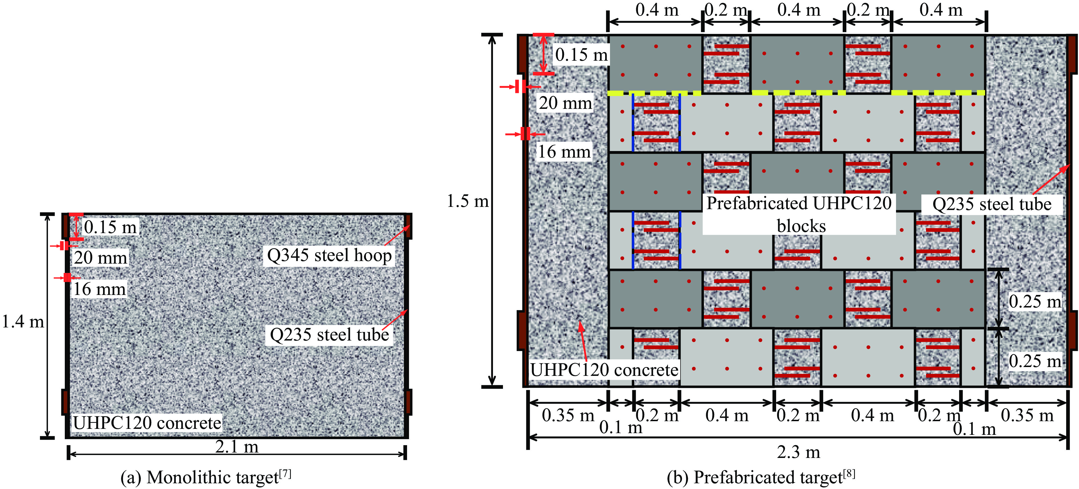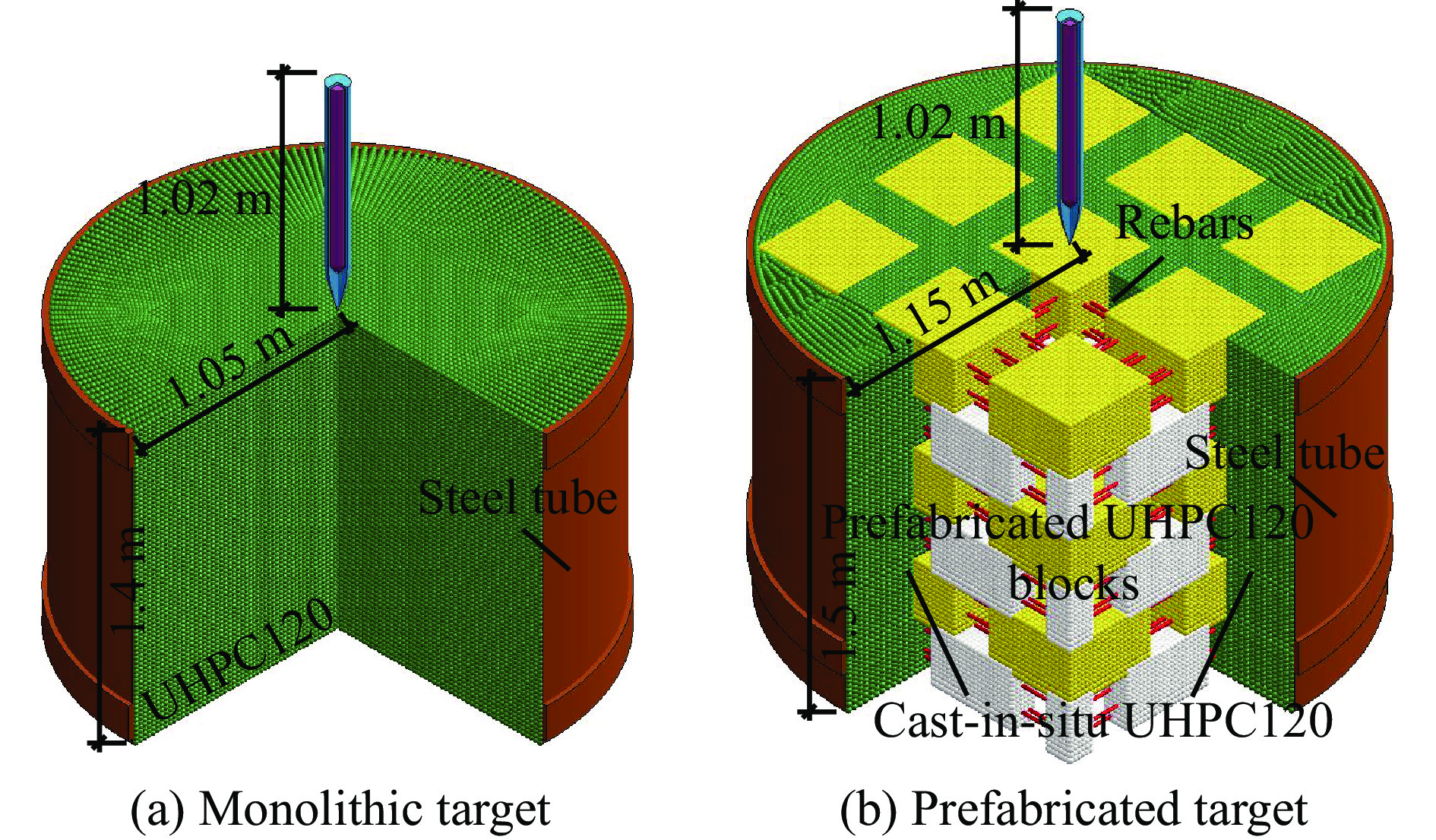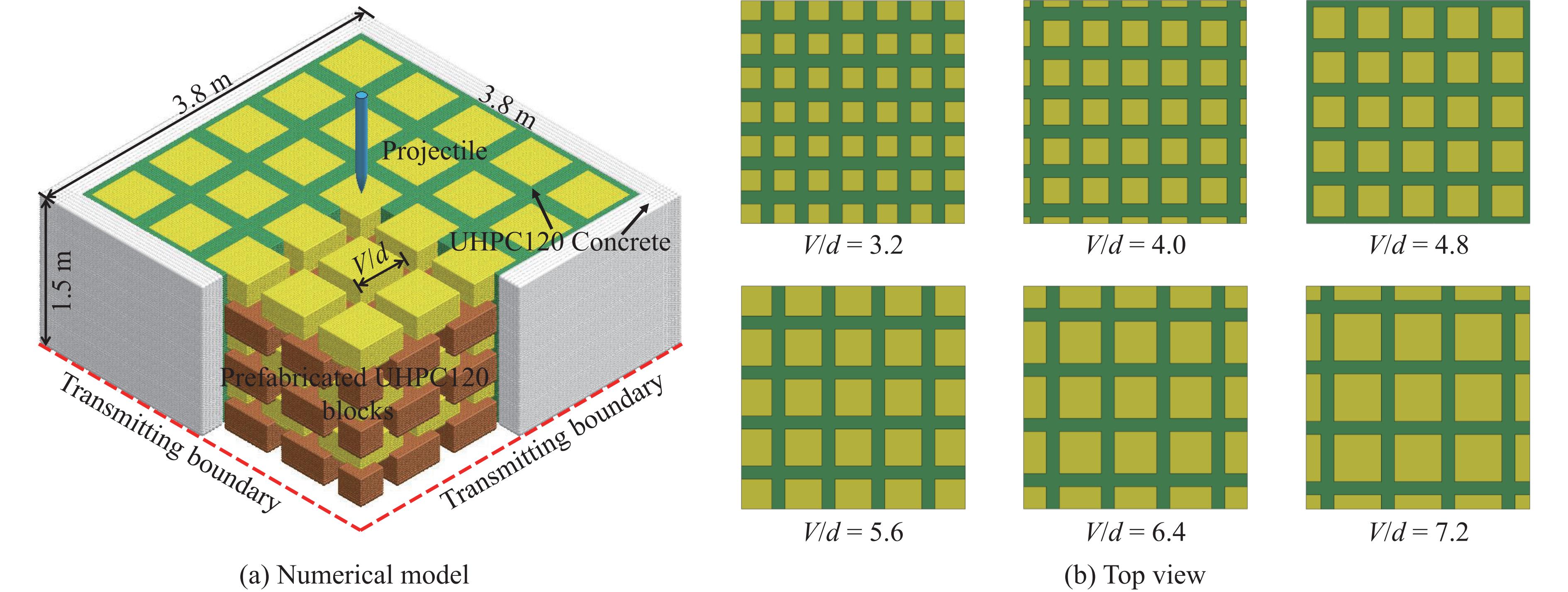 Prefabricated concrete bursting layer has a very important application prospect in the field of protective engineering attributed to its technical advantages including high construction efficiency and construction quality. However, compared with the monolithic cast-in-situ concrete bursting layer, the impact resistance of the prefabricated concrete bursting layer may be significantly reduced because of the interfaces between the prefabricated blocks and the cast-in-situ part. Therefore, it is important for engineers to reasonably design the prefabricated concrete bursting layer to make its penetration resistance comparable to the monolithic one. To this end, a kind of prefabricated bursting layer connected by wet joints and rebars was proposed in our previous study. In order to apply the prefabricated bursting layer in protective engineering, a series of numerical models were developed to further study its penetration resistance. Firstly, based on the Kong-Fang model and smoothed particle Galerkin (SPG) method, the numerical models were developed and validated against the experimental data of projectile penetrating monolithic and prefabricated targets. Then, the validated numerical models were further used to investigate the influences of prefabricated block size, wet joint width and anchorage length, spacing and diameter of rebars on the penetration resistance of prefabricated targets. Numerical results indicate that increasing the width of wet joints, reducing the spacing between rebars, and extending the anchorage length of rebars can significantly enhance the penetration resistance of prefabricated targets. After clarifying the influences of these parameters, an engineering design method for a prefabricated concrete bursting layer was proposed. Finally, based on this method, two prefabricated high performance concrete targets subjected to two typical types of warhead penetration were designed. Numerical results show that the penetration resistances of two prefabricated targets were comparable to monolithic targets. The proposed engineering design method can provide a reference for engineering applications of prefabricated concrete bursting layers connected by the wet joints and rebars.