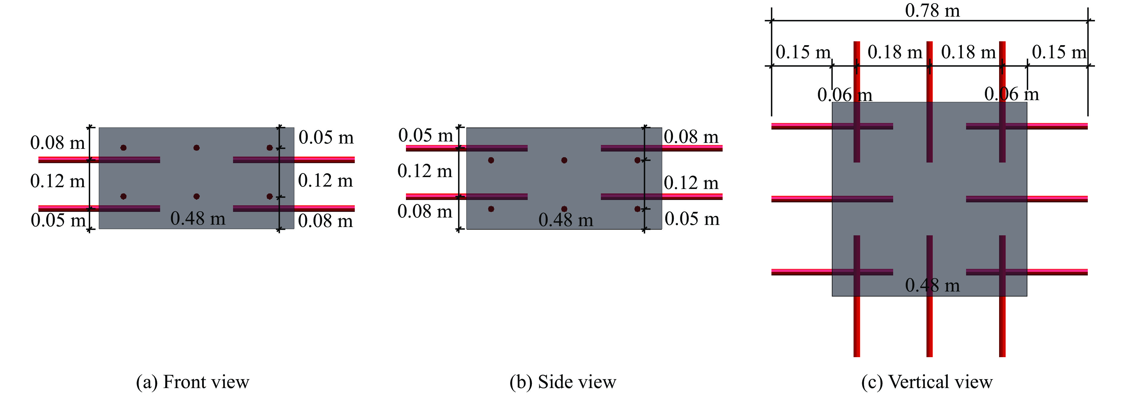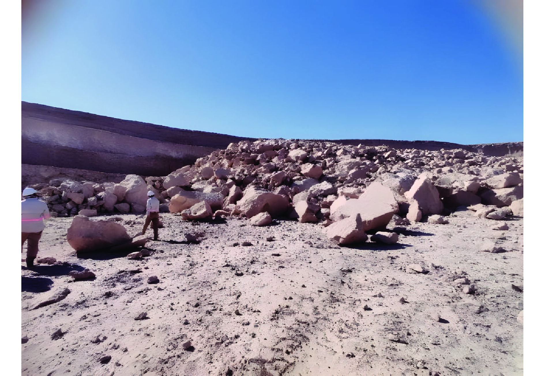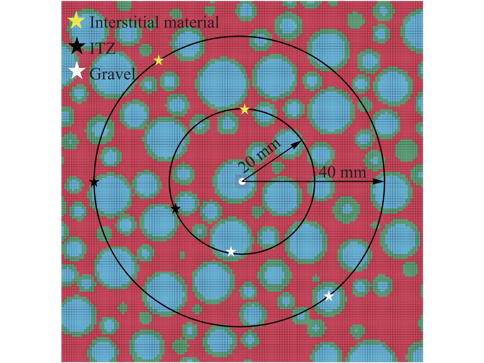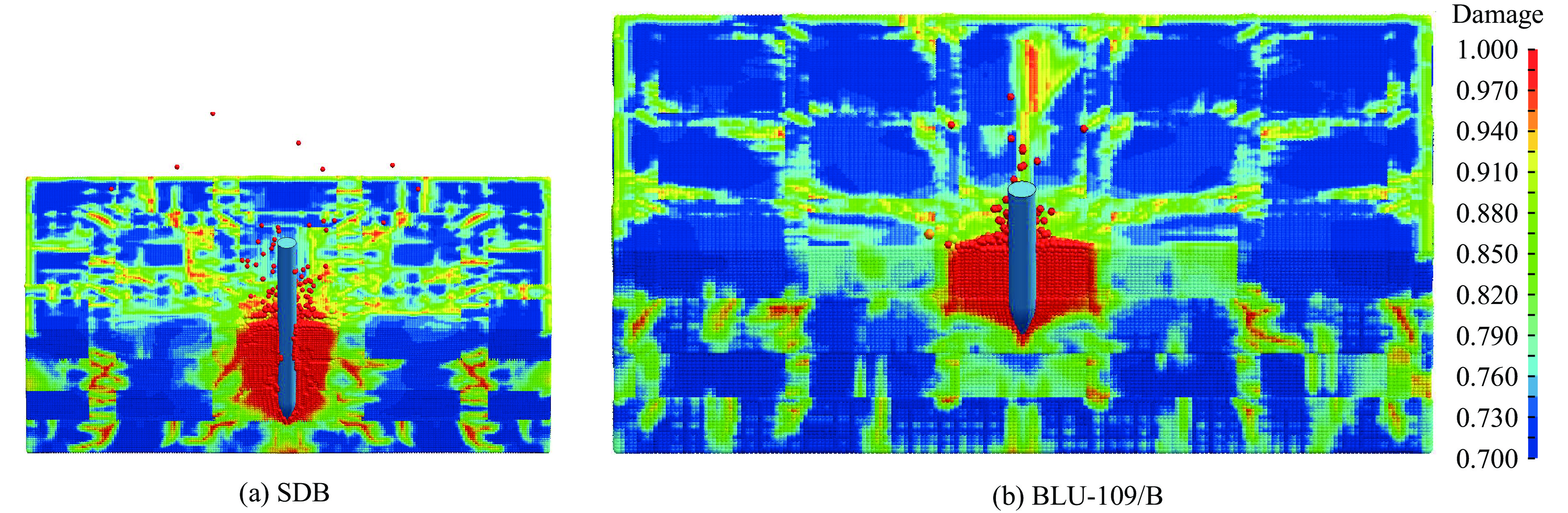 To study the damage law of calcareous conglomerate under blasting, firstly, the damage fracture process and mechanism of calcareous conglomerate under blasting load were revealed based on the theory of damage fracture mechanics. A meso-scale model of conglomerate, including filler, conglomerate and interfacial transition zone (ITZ), was established by using LS-DYNA and Fortran programming, and the propagation law of explosive stress wave and its damage characteristics were analyzed. The damage fracture process of calcareous conglomerate under blasting can be divided into four stages, namely: compression damage in both gravel and fill; tensile damage in gravel and compression damage in fill; tensile damage in both gravel and fill; and tensile damage at the intersection of gravel and fill. Numerical results show that under blasting loads, the gravel has higher equivalent stresses, the fill has the lowest, stress concentration is evident at the ITZ, and the stress gap between the gravel and the fill decreases as the distance increases. The conglomerate sustains relatively minor damage, with a notable phenomenon of damage occurring around it. However, the filler experiences significant damage. The expansion of blasting crack in calcareous conglomerate forms mainly along the direction of stress wave propagation. Cracks tend to develop along the filler with lower physical and mechanical properties, as well as along the junction surfaces. The damage to the gravel is comparatively less severe. Blasting blockiness is mainly manifested as the filler wrapping gravel, and the distribution of blasting blockiness is affected by the bonding force at the intersection surface and the distribution of gravel.