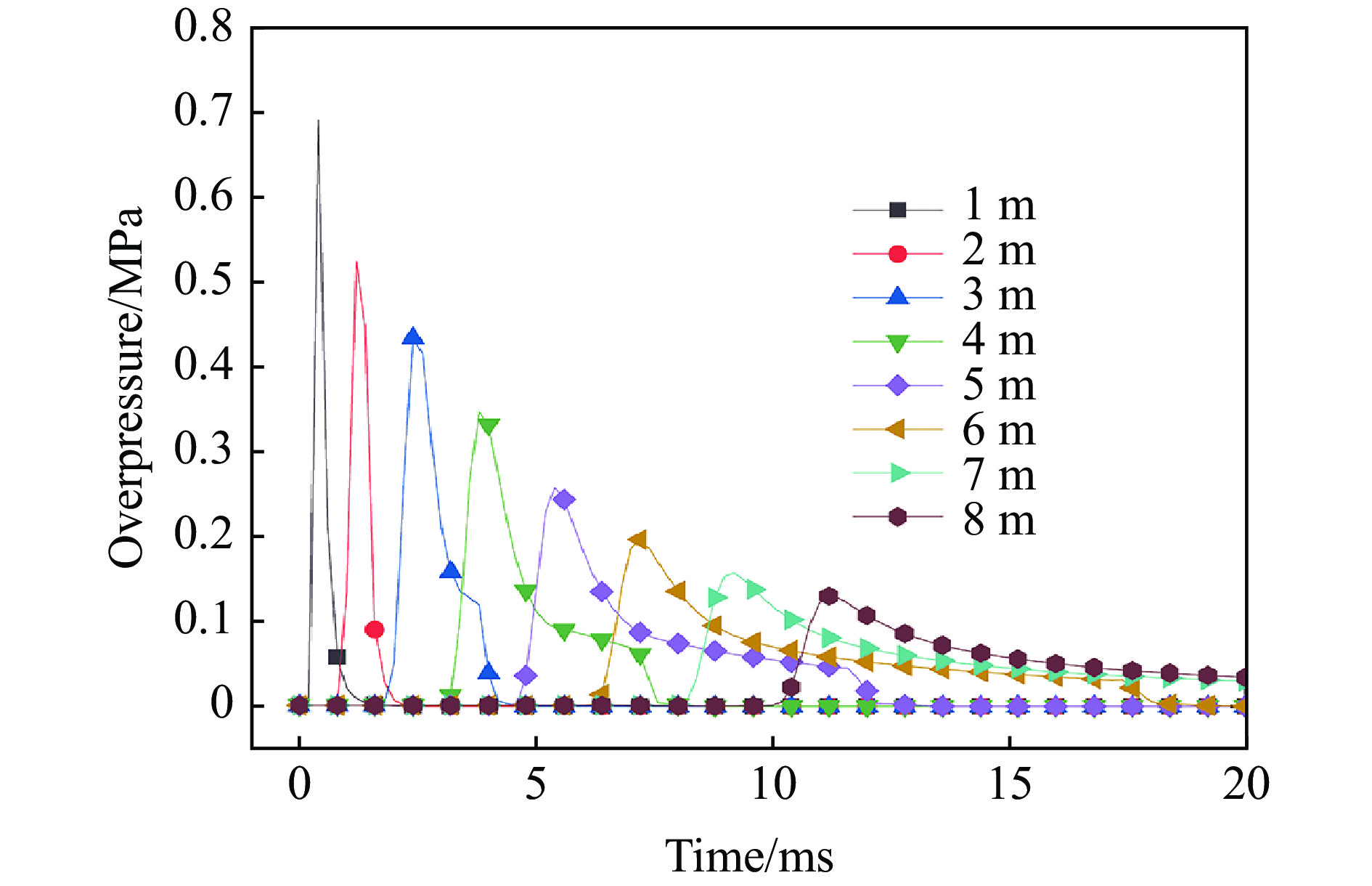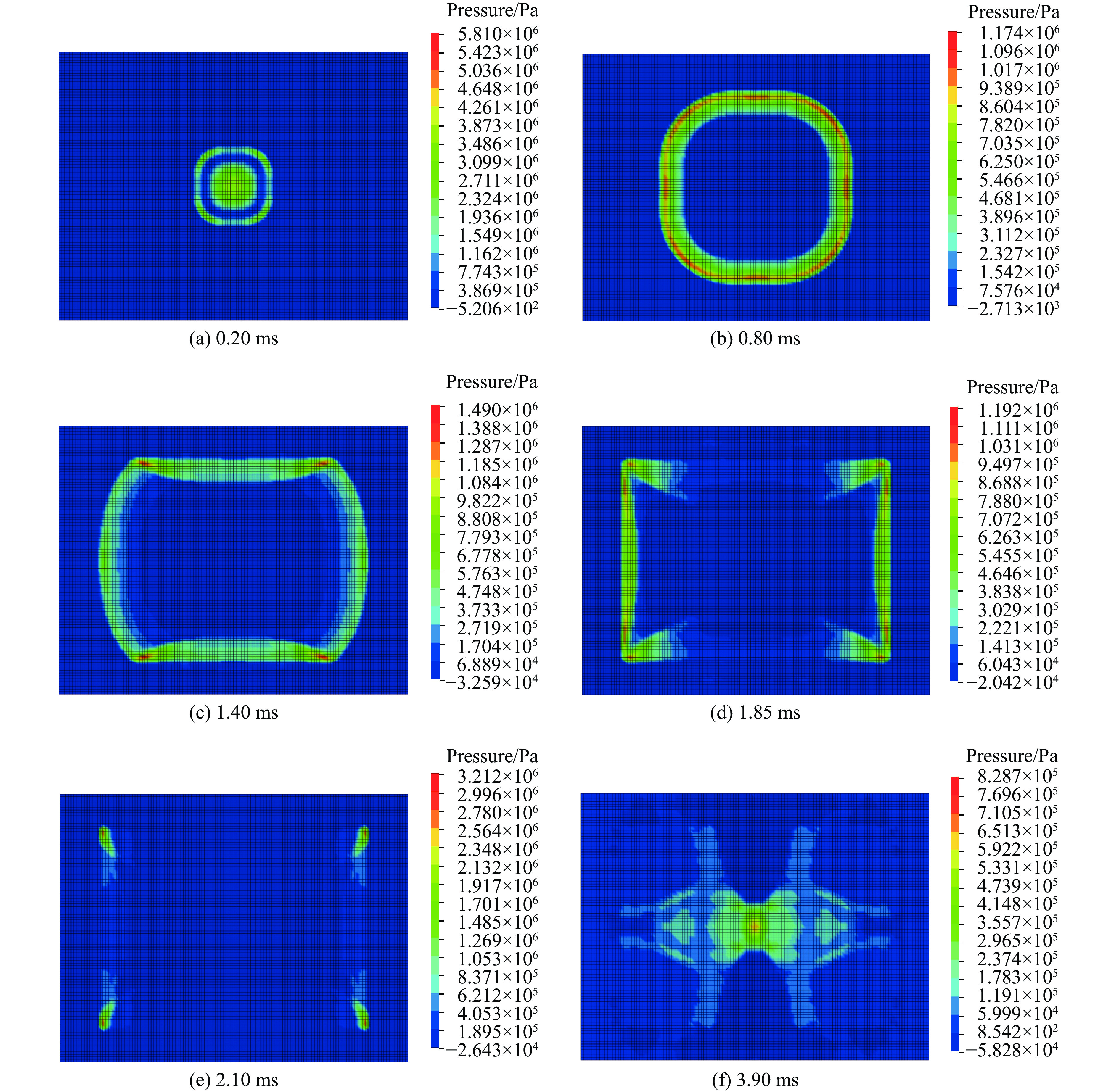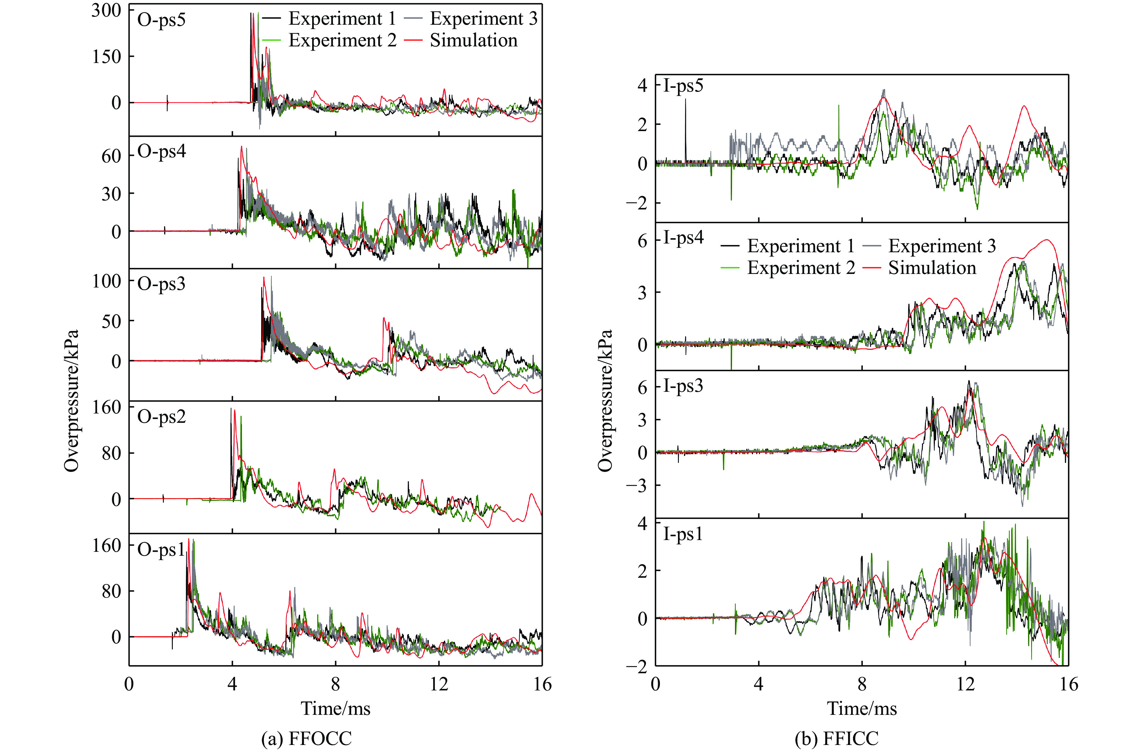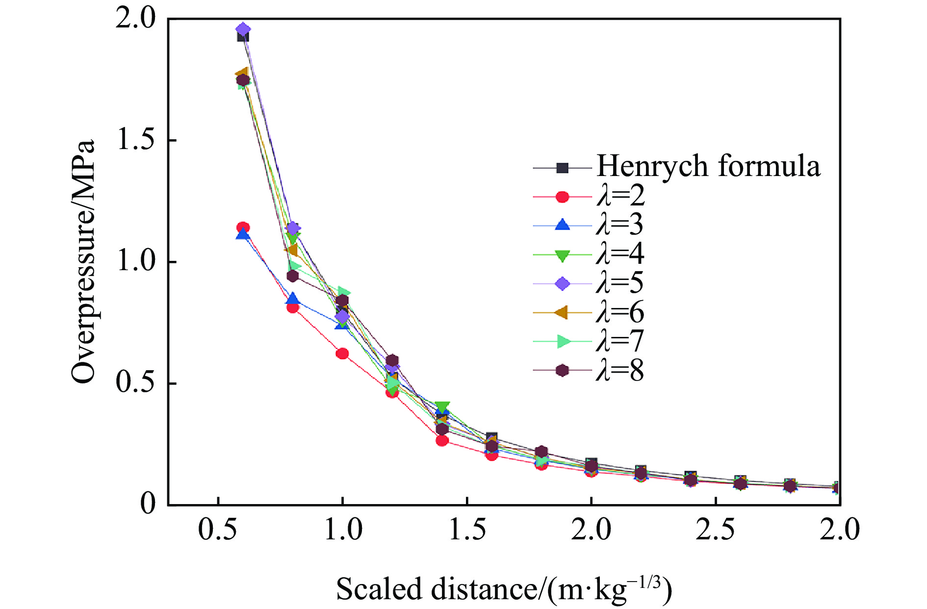 A Closed-Space Model was constructed using steel plates to examine the influence of afterburning energy load generated by explosive detonation products on the damage characteristics of confined space. Additionally, the quasi-static pressure in the confined space was simplified by applying the energy conservation law. Relying on the adiabatic index of the mixture of detonation products and air, as well as the complete afterburning degree of detonation products, a simulation method for the afterburning effect was proposed. This method was used to calculate the afterburning energy of detonation products and determine the beginning and ending times of the afterburning effect. The numerical simulation of implosion damage in a confined space was carried out by this method. The implosion simulation considering the afterburning energy load was performed by employing two simulation methods: constant reaction rate and linearly increasing reaction rate. The results were compared with the implosion simulation results without considering the afterburning effect. The influence and degree of change of the afterburning effect on the implosion damage characteristics were analyzed. It is found that the afterburning effect with different reaction rates has a significant influence on the detonation damage characteristics, except for the temperature, in confined spaces. Moreover, the enhancement effect of the constant reaction rate is the most significant. It increased the velocity and acceleration loads under implosion in the confined space by 42.67% and 71.21%, respectively. The overpressure and quasi-static pressure were increased by 74.42% and 74.95%, respectively, and the kinetic energy was increased by approximately 212%. The proposed simulation method for the afterburning effect can better simulate the dynamic response of implosion ruin in confined spaces and provides a more accurate simulation method of the afterburning effect for the design and evaluation of explosion-proof structures.