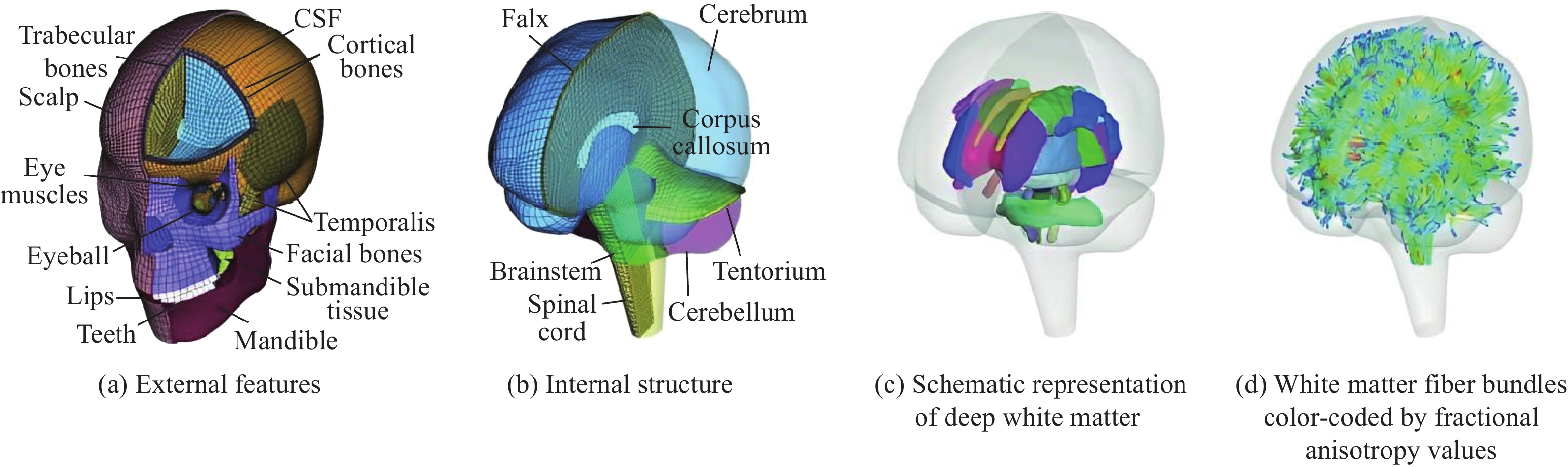 Traumatic brain injury (TBI) is the neurological disorder with the highest incidence and prevalence, and poses a huge public health burden for the whole society. An in-depth study of the biomechanics of TBI can help to improve the effectiveness of head protection, develop rapid assessment techniques and take timely interventions, thus reducing the risk of injury deterioration. As a numerical analysis tool, the finite element head model (FEHM) is able to simulate the dynamic response of the head during impact, including the spatial and temporal distribution of stress-strain in brain tissues, and the change of intracranial pressure, which provides an important basis for understanding the mechanical mechanism of TBI. This paper summarizes in detail the current status and development of mainstream finite element models of the human head at home and abroad, traces the development of the models, summarises the characteristics of the models and introduces the research progress of TBI mechanisms based on finite element models. The summary and sorting out of related research will be helpful for the development of new FEHMs and provide theoretical guidance and technical support for the risk assessment of traumatic brain injury and the design of protective equipment.